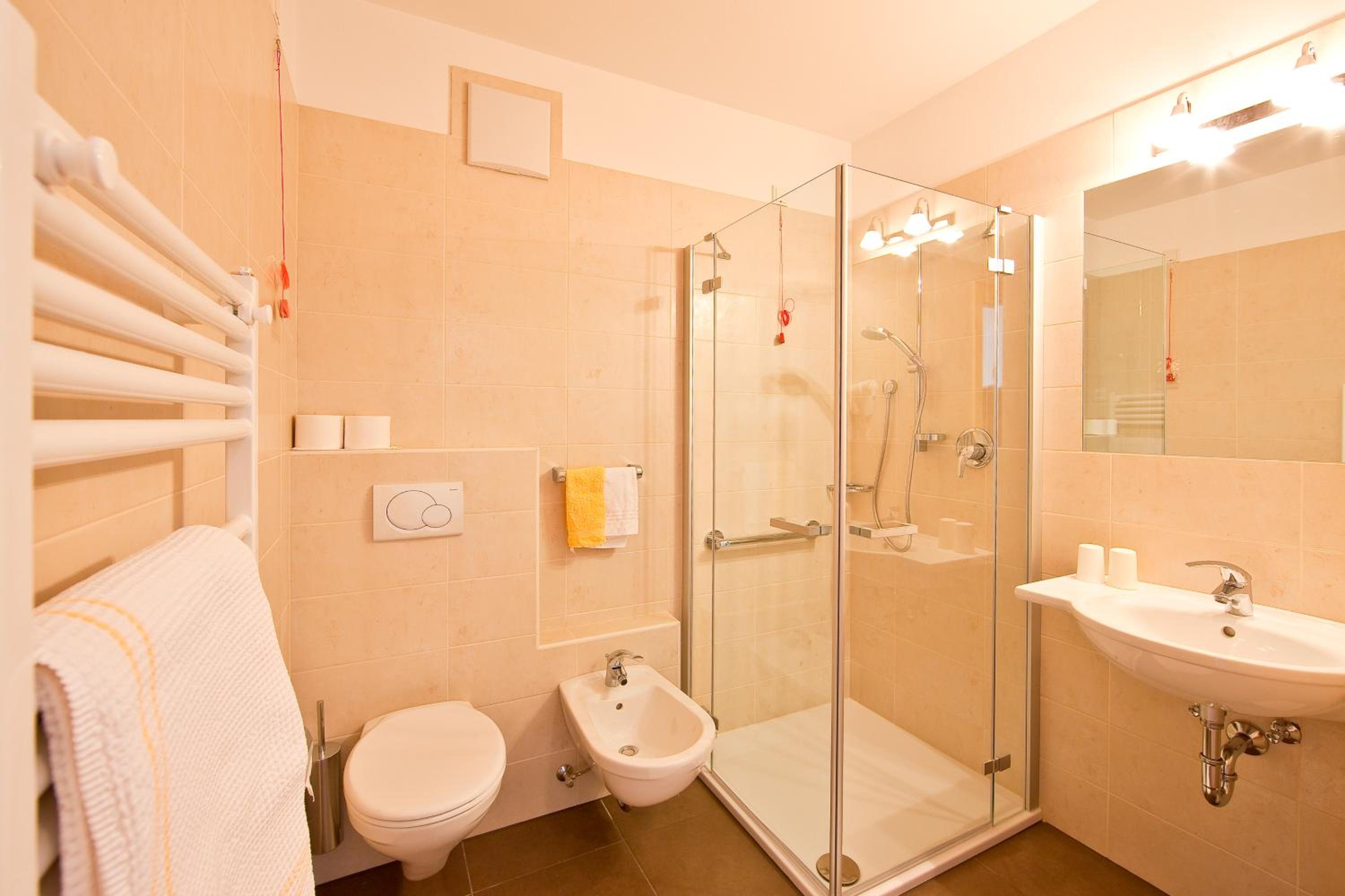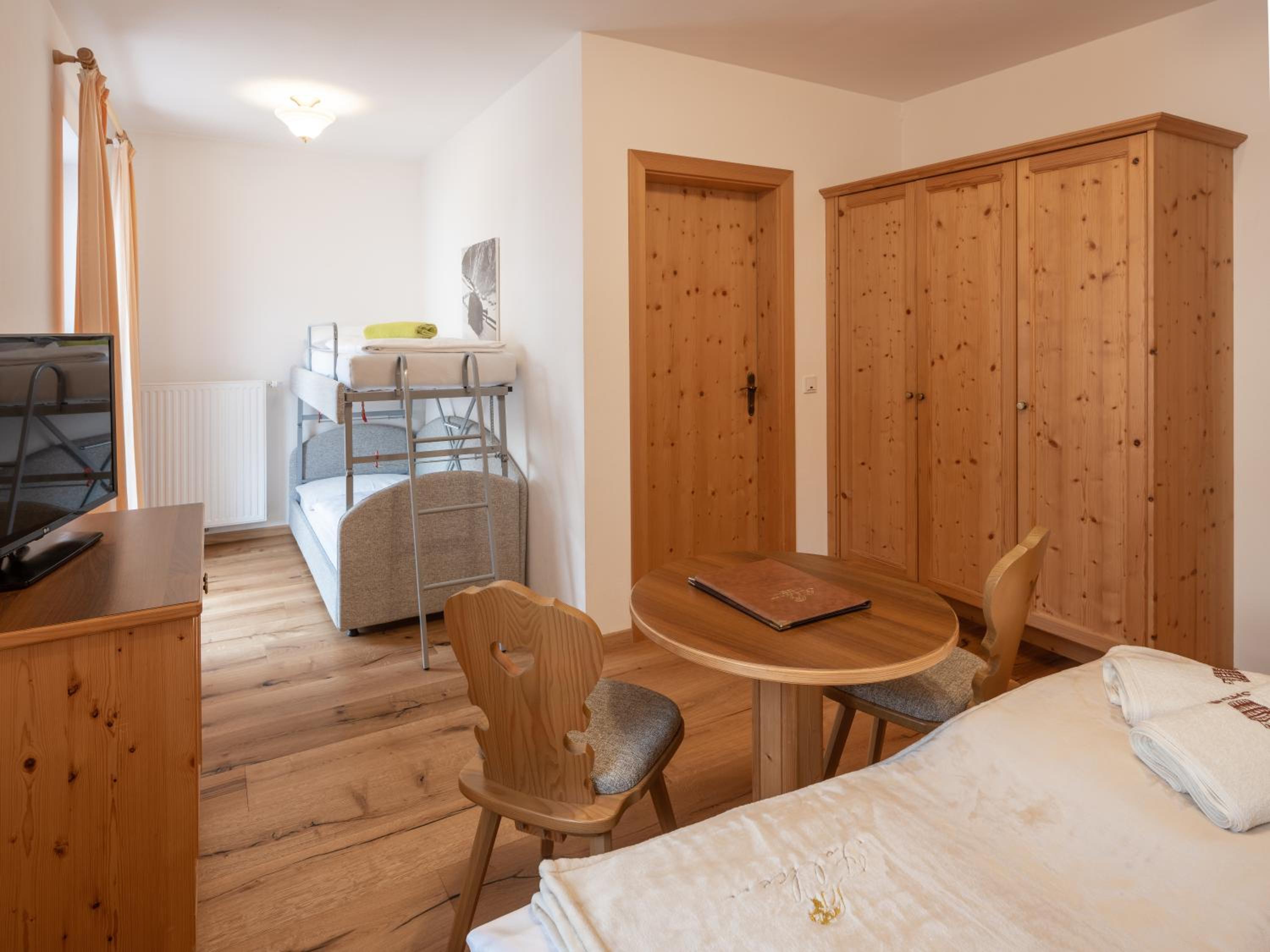 Albergo con camere molto carine e spaziose, dotate di ampio bagno e terrazzo. Possibilità di usufruire della piscina interna e dell’area benessere. Colazione abbondante, cena ottima. Personale gentile. Prezzi giusti. Consigliamo!