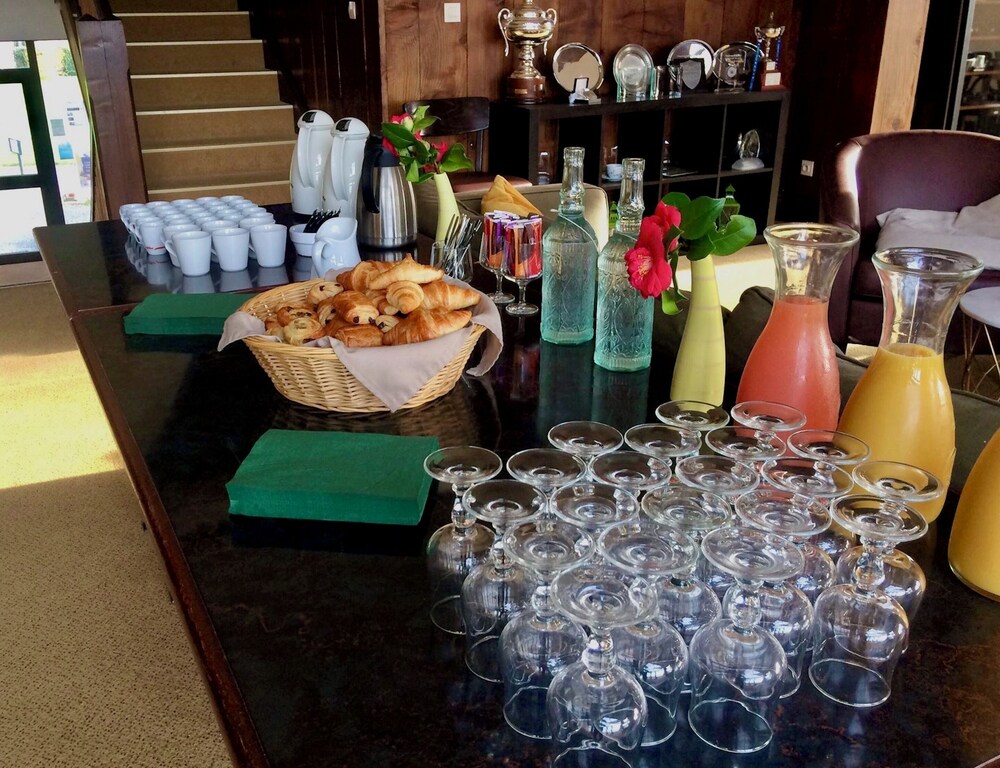 Il est précisé sur le site que l'accueil doit avoir lieu avant 18h. Si l'arrivée est plus tardive, il suffit d'appeler l'établissement, toutes les indications sont mises à disposition sur le parking, la chambre reste ouverte avec les clés dans la chambre. Chambre au calme au milieu de la verdure. Le petit déjeuner est servi à partir de 9h au Club House.