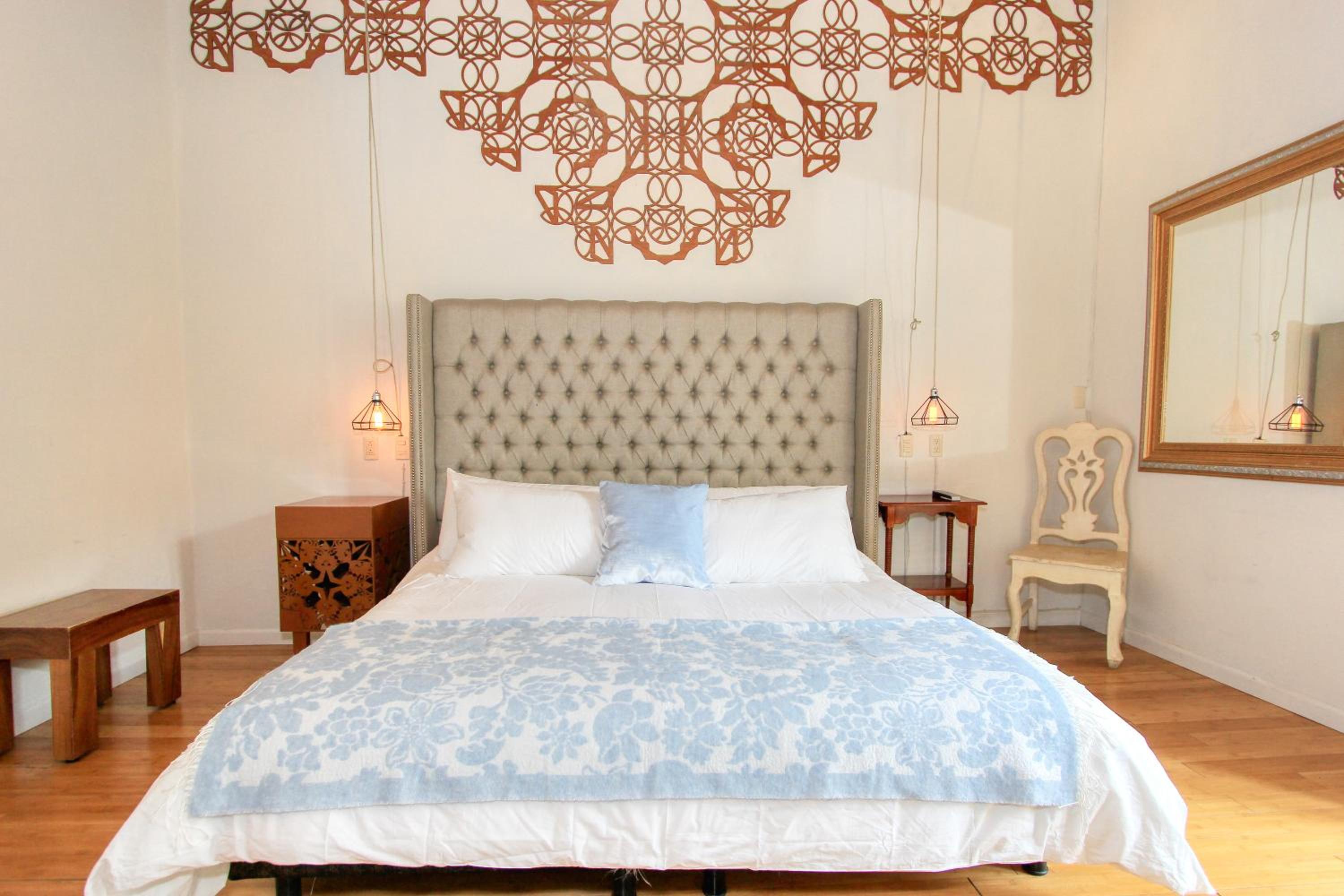 Colonial Style Rooms: Immerse yourself in the rich history of Guanajuato with our Colonial style rooms featuring wooden décor and private bathrooms designed for your comfort.
