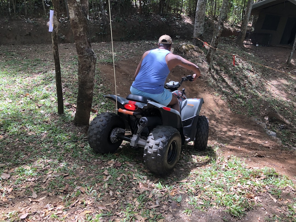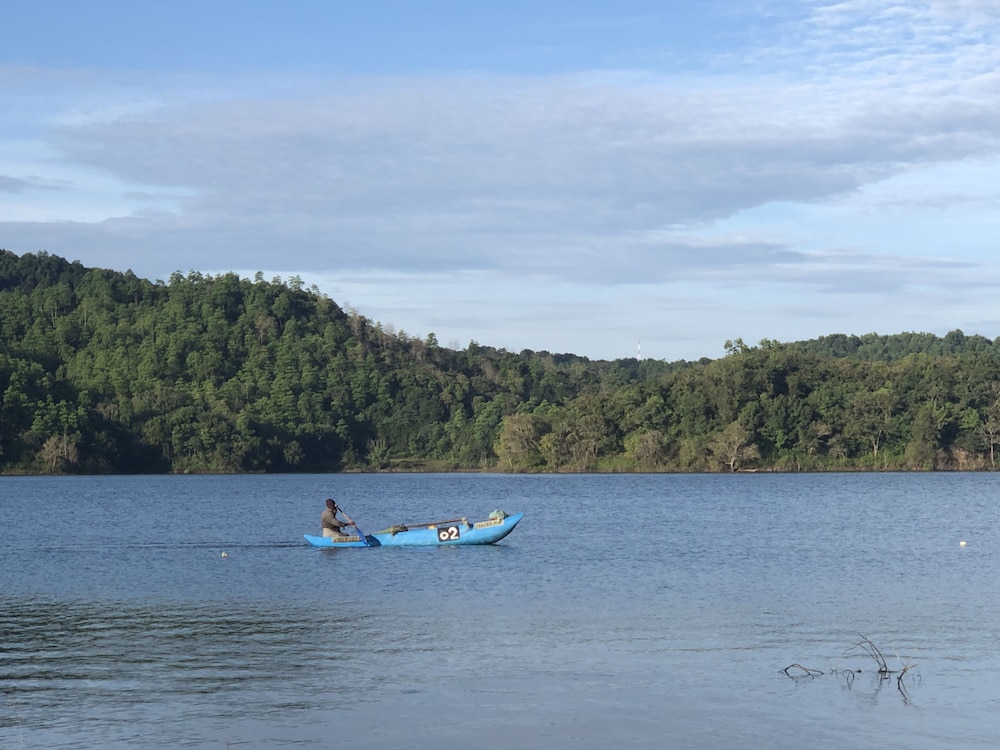 Vi stannade inte då rummet var utan fläkt och a/c och luktade kraftigt med mögel och vi hade allergiska problem. Fuktigt område med skugga i kraftigt slänt ner mot floden och mycket tät växtlighet. Hjälpsam och smidig personal som lovade oss returbetalning och förstod våra invändningar.