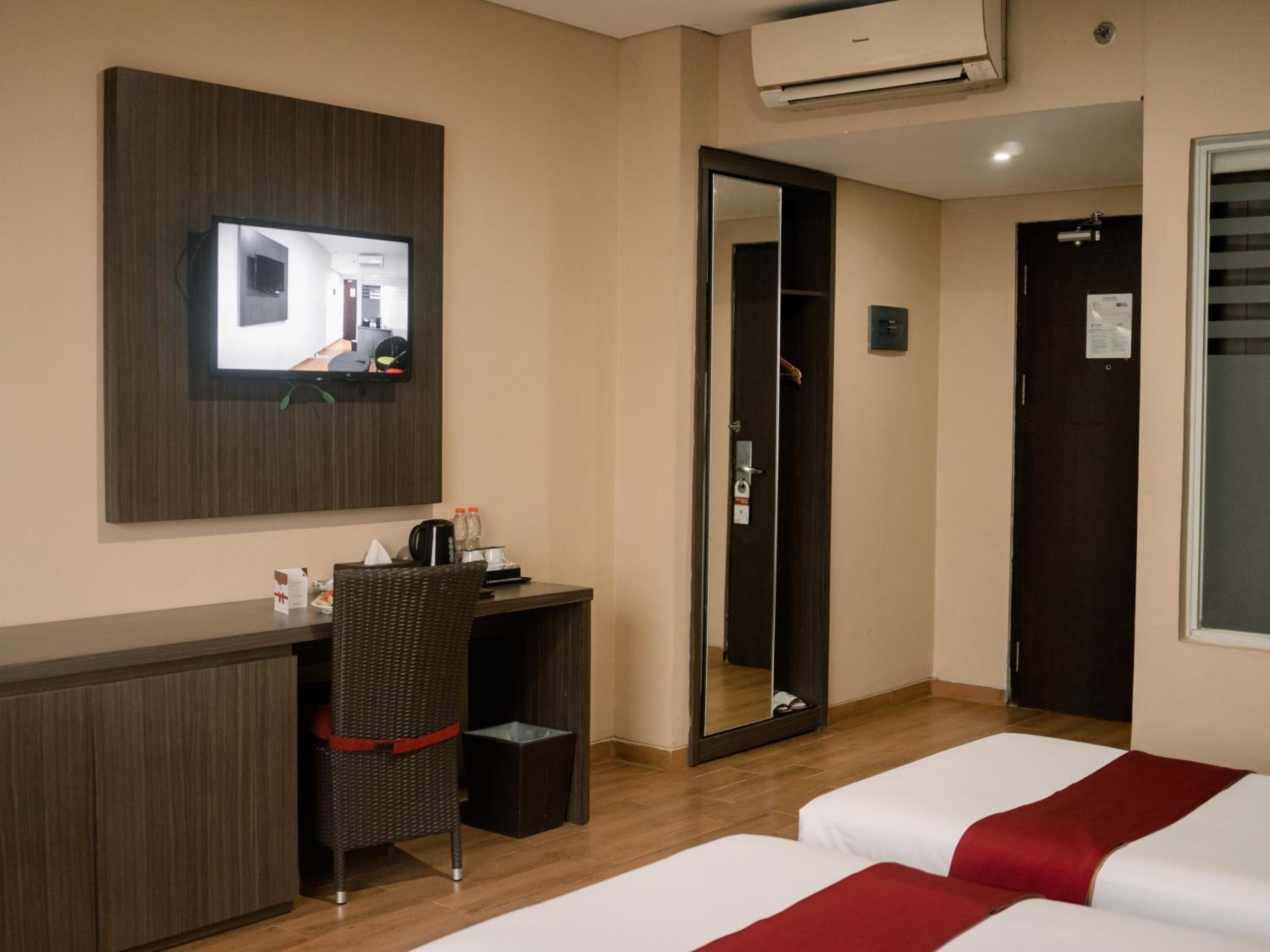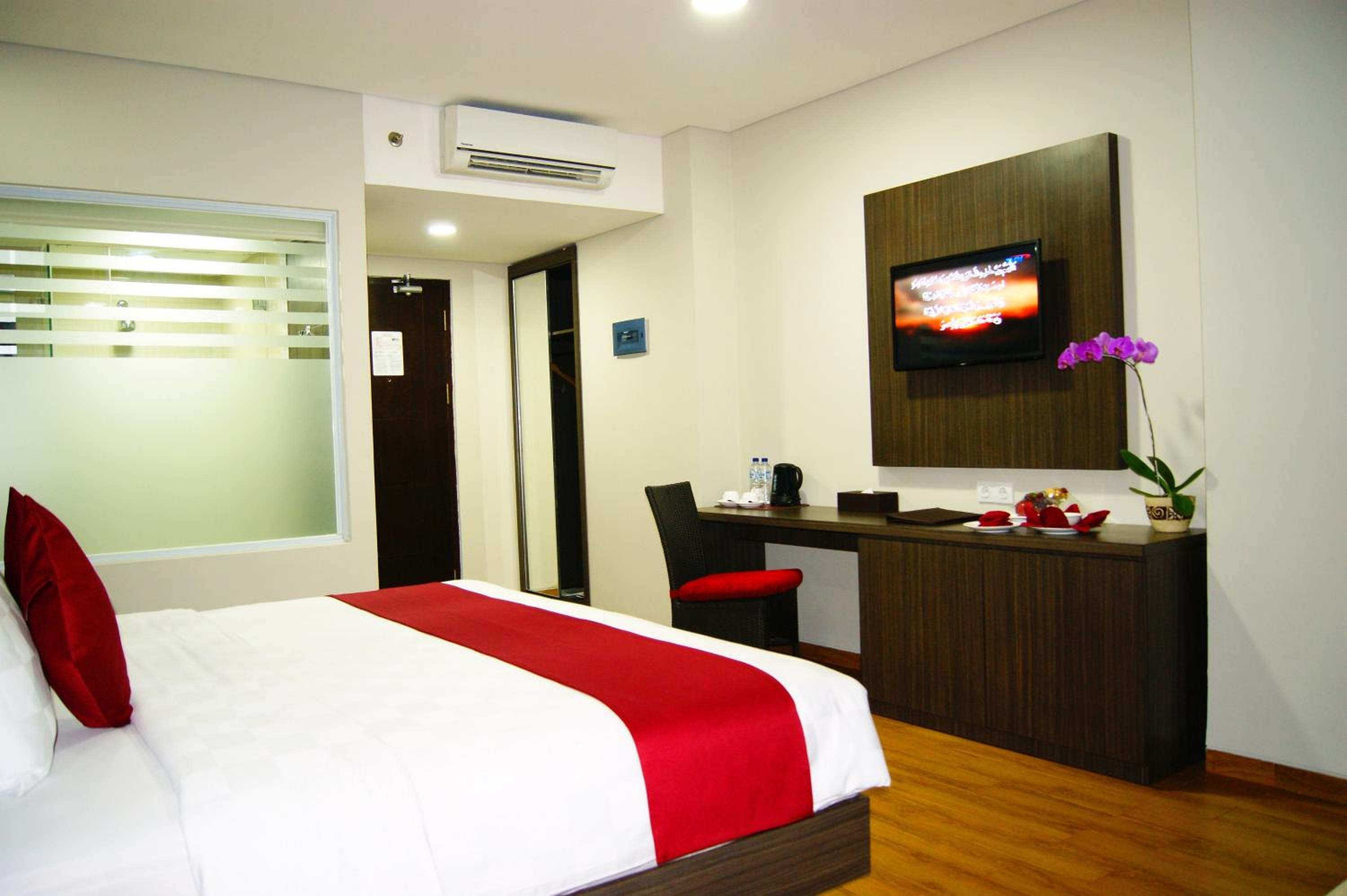 Experience comfort and style at Merapi Merbabu Hotels Bekasi with air-conditioned rooms, flat-screen TVs, and modern amenities. Some rooms even offer stunning views from a private balcony.