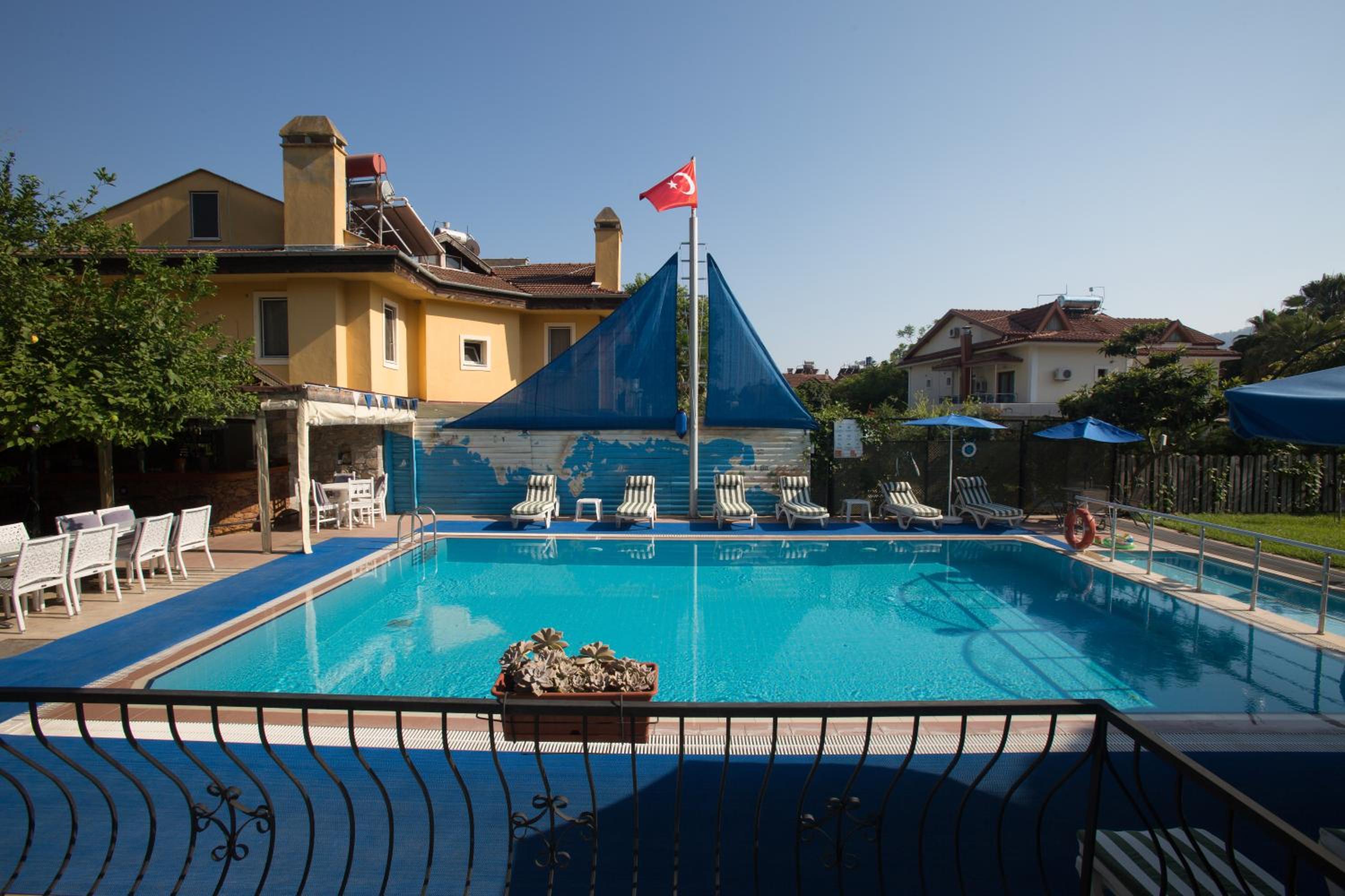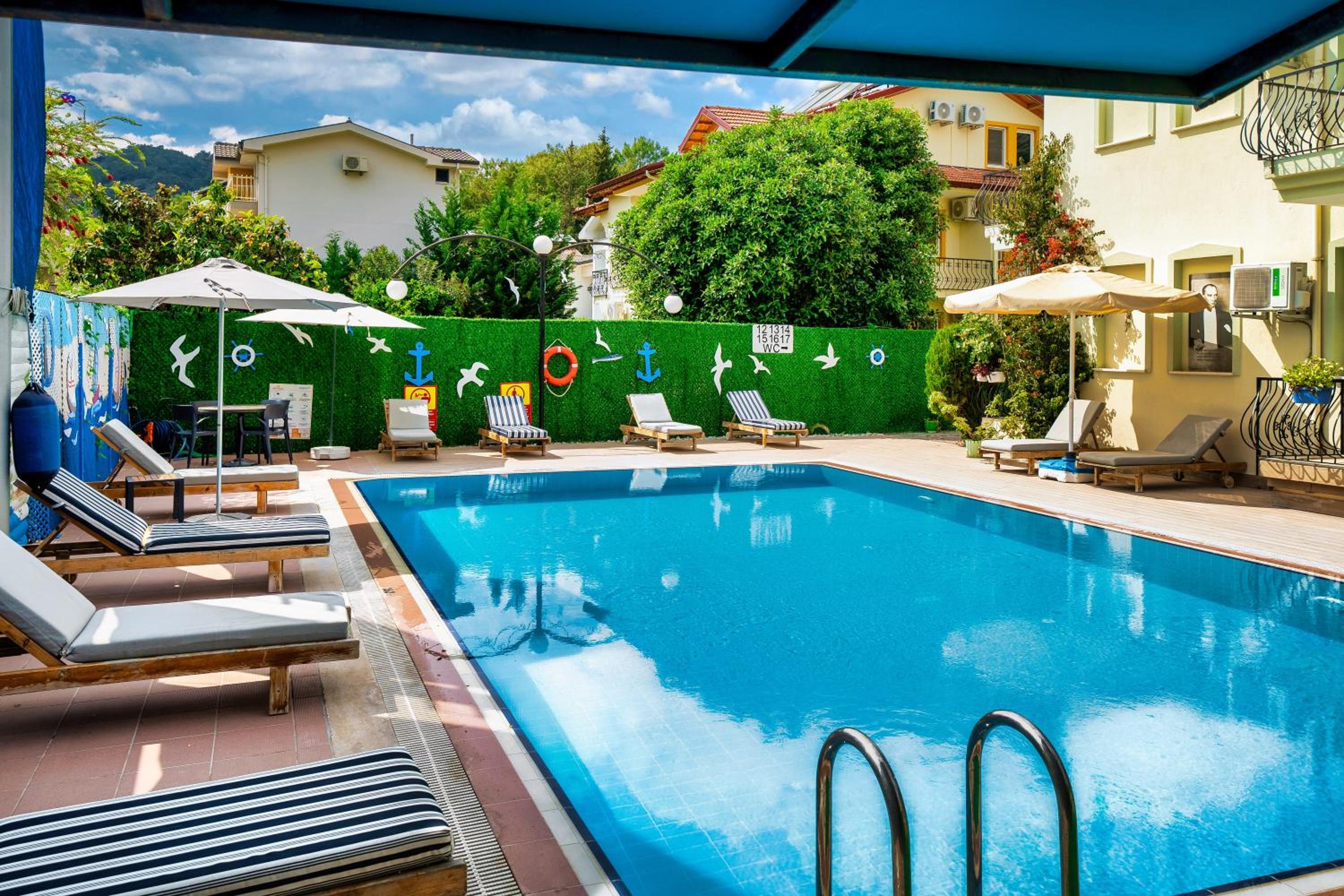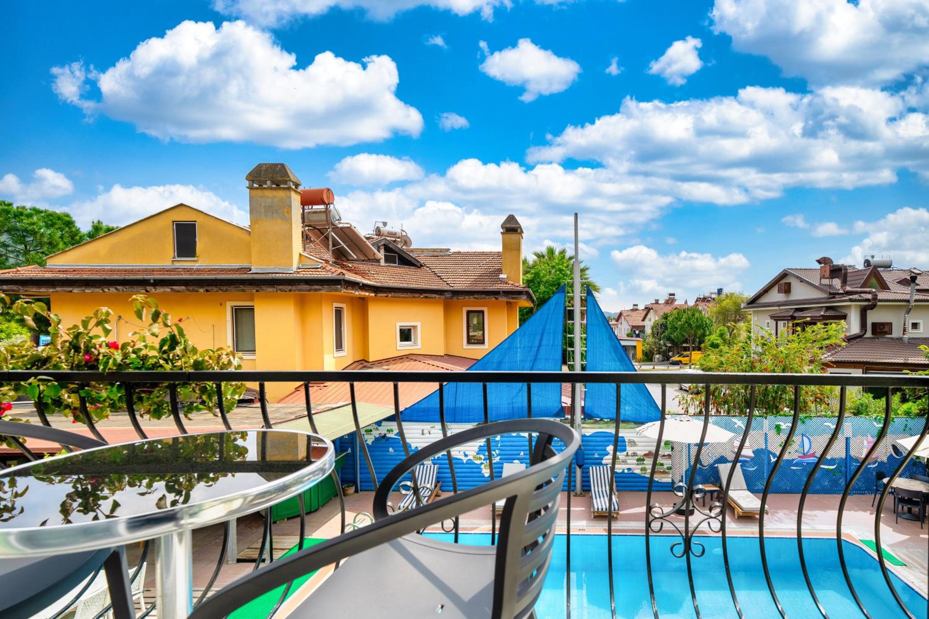 Clean room with small balcony. Nice swimming pool. The staff is very friendly. Walking distance not even 5 minutes from the centre of Göcek.