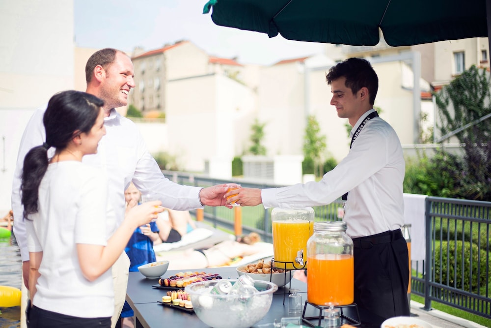 Séjour hyper agréable, calme, ambiance branchée, salle de sport top, salle et petit déjeuner avec terrasse très propre, très fourni avec un choix incroyable, un personnel aux petits soins et hyper souriants. Cadre extérieur calme et reposant, on entend les oiseaux chantés le matin, surprenant pour Paris. Quartier bien fourni en resto et bar sauf le dimanche soir. Petit bémol la piscine était encore fermée mais on reviendra avec plaisir!