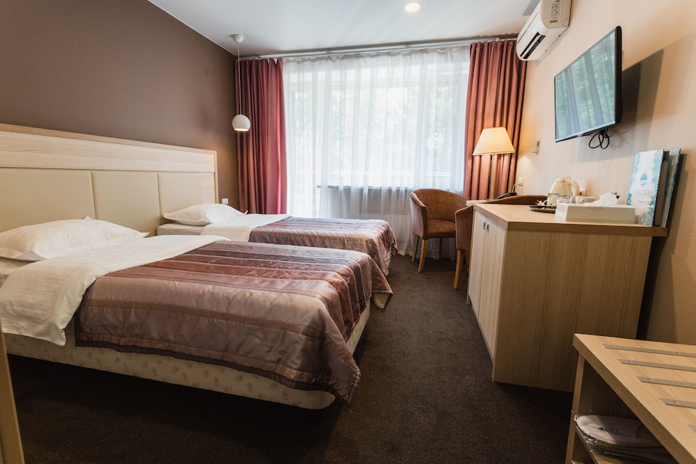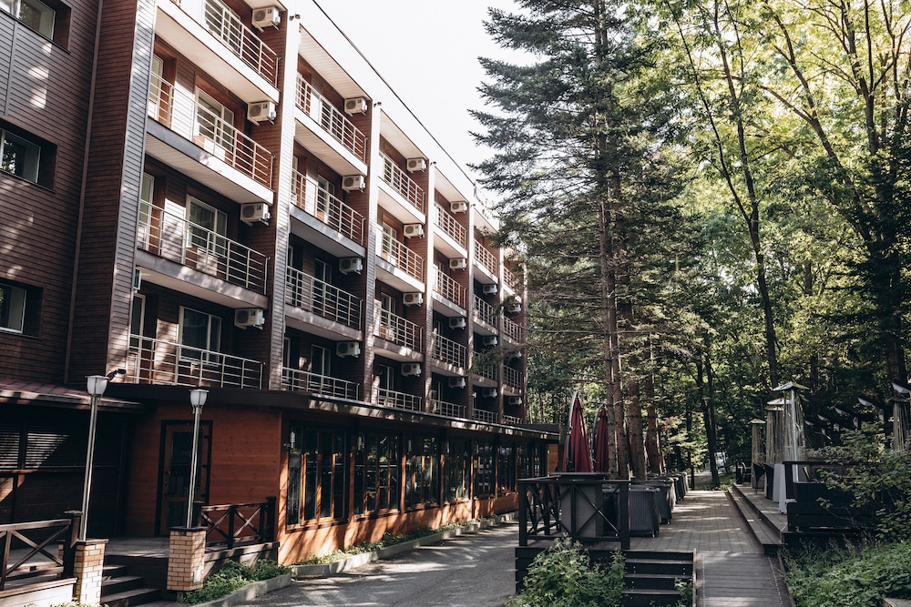 ะัะตะบัะฐัะฝัะน ะพัะตะปั ะฒ ะฑะพะปััะพะน ะฟะฐัะบะพะฒะพะน ะทะพะฝะต. ะ ะฟะตัะตะน ะดะพัััะฟะฝะพััะธ ะฟะปัะถ ะฝะฐ ะกะฐะฝะฐัะพัะฝะพะน ะ ะธะฒัะตัะฐ-ะะฐะณัะฝะฐ ะธ ะฟะฐัะบ ะธะผะตะฝะธ ะะฐะทะพ.