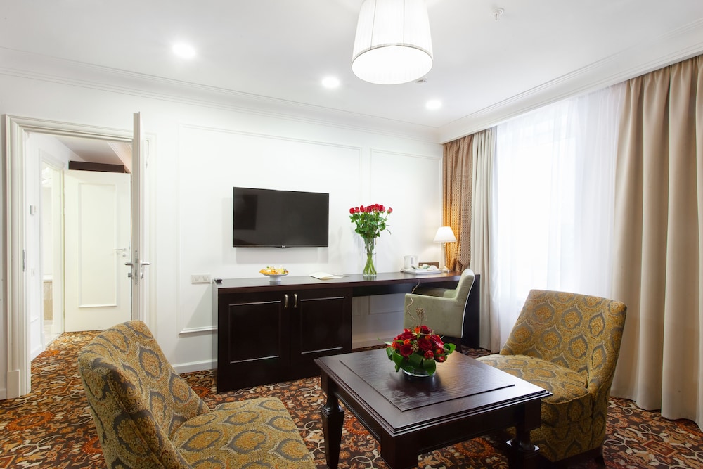 Прекрасный отель, превзошли все мои ожидания, сервис на уровне 5+ шумомзоляция просто супер. Особо стоит отметить ресторан при гостинице, завтраки просто восхитительны. Персонал приветливый и всегда готов помочь. Недочёт- отсутствии рабочей зоны с компьютером и всем остальным оборудование типа Принтер сканер. Но вопрос решается с помощью персонала и возможностью получения ноутбука на время. Имел возможность проверить на деле решении задачи с печатью пару листов и сканирования документов, а так же получения ноутбука на время. Вопрос Респечатки и сканирование был разрешён с помощью персонала, а вот с ноутбуком не получилось, не было свободного все были заняты. Соответсвенно возник вопрос сколько ноутбуков имеется в парке и не лучшего организовать полноцельную рабочую зону. В целом Гостиница заслуживает свои 9 балов из 10.
