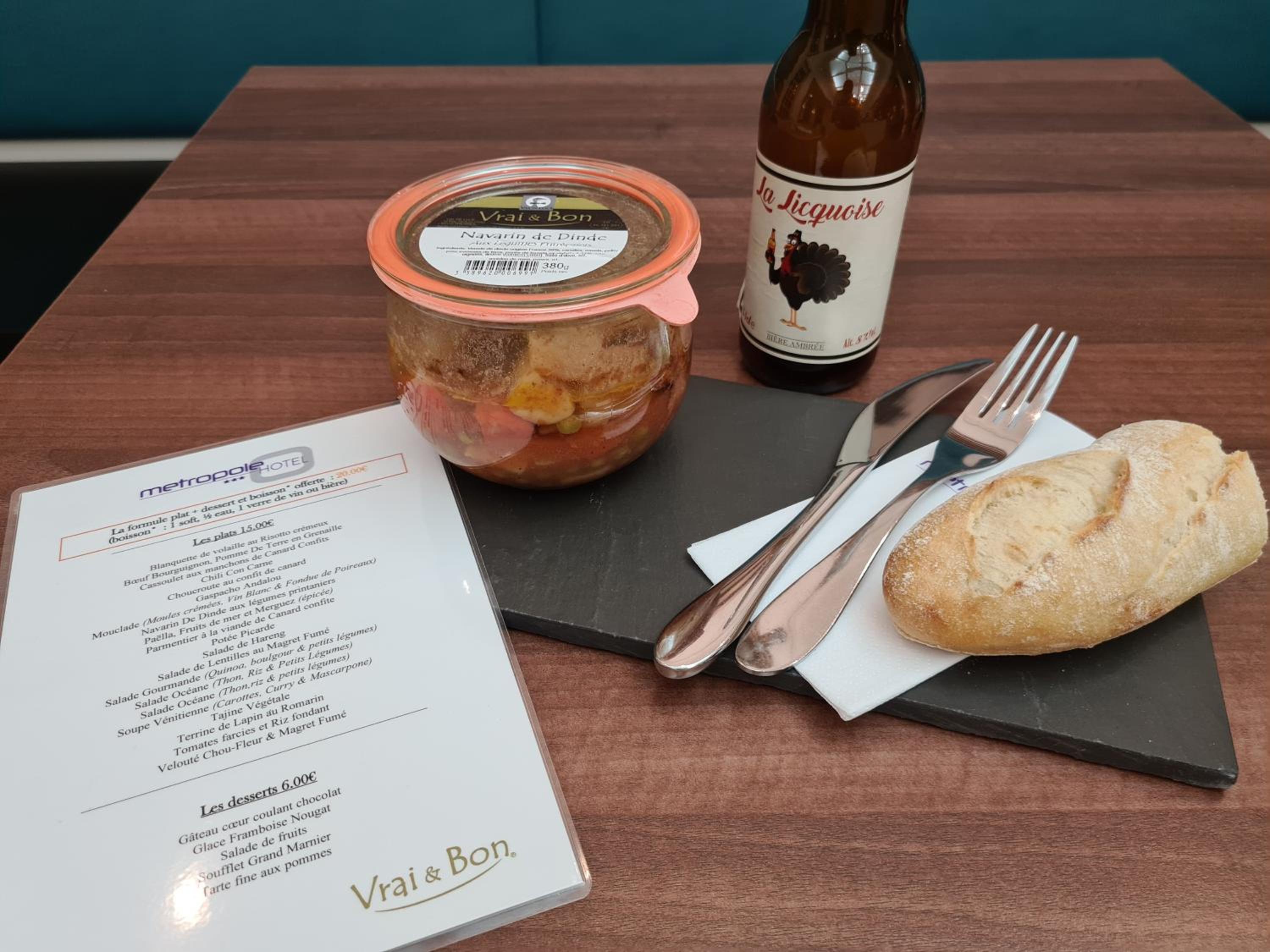 Petit déjeuner suffisant pour un hôtel sans cuisines. Des pains frais et variés, des minis viennoiseries, moult jus de fruit...