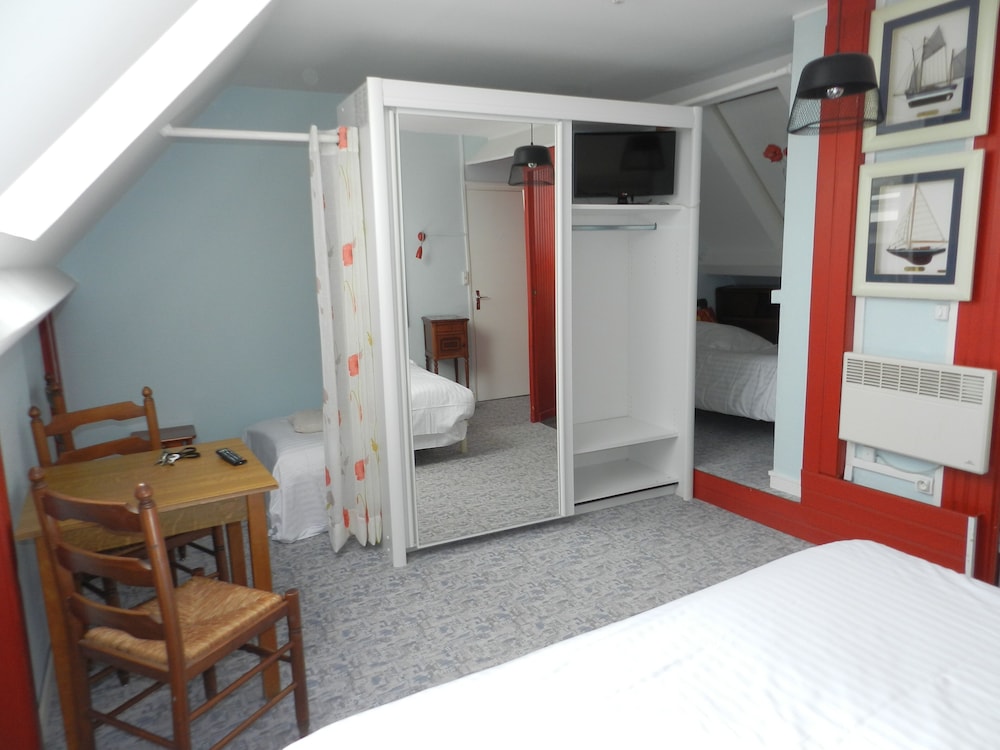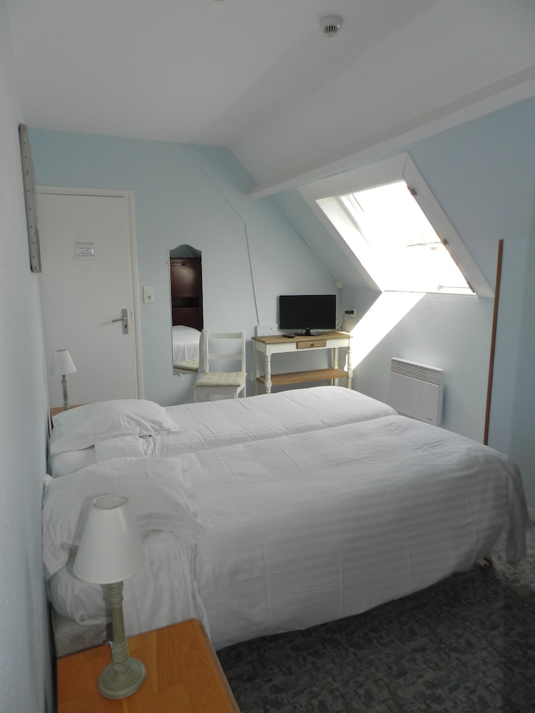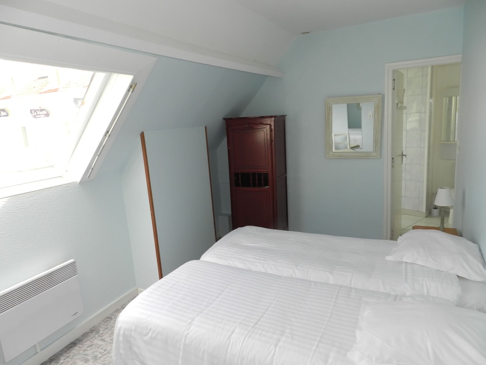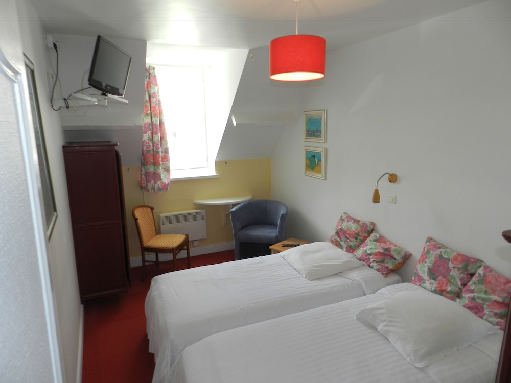 Location was perfect lots of pubs and restaurants. However if it was not for these the trip would have been a total disaster. Firstly on the web page it says book in from 1130 yet when you get to the place you can not book in until 1500 not good when you have spent many hours travelling. When you get there the hotel is spread over 3 locations so you don't have a clue where you're going.when you finally the place is a tip. Electric sockets hanging off the walls tiny worn out double bed. Closest you come to a sea view is a picture on the wall of a plate of fruit der mer! The main door is left wide open all night for anyone to enter. Outside of the building is a big poster stating rooms in the hotel are 63 euros a night and yet via Hotels.com we are charged 83 euros plus tax how does that work total rip off avoid at all costs. However on a positive the Normandy restaurant across the street has the best seafood we have ever tasted and to be honest book in their and avoid this hotel.