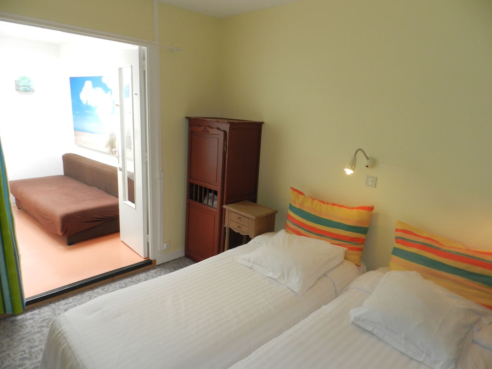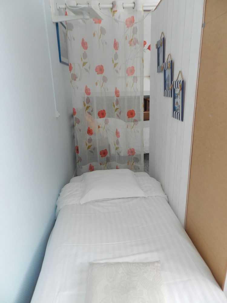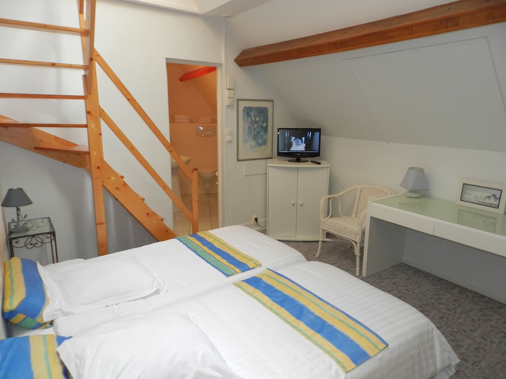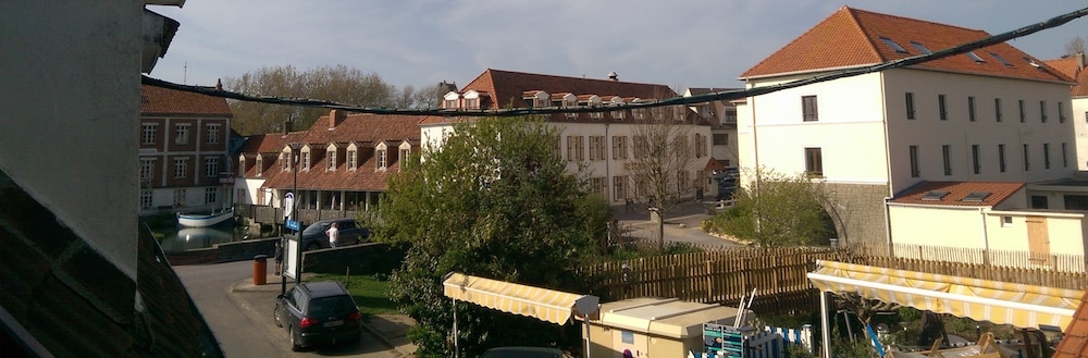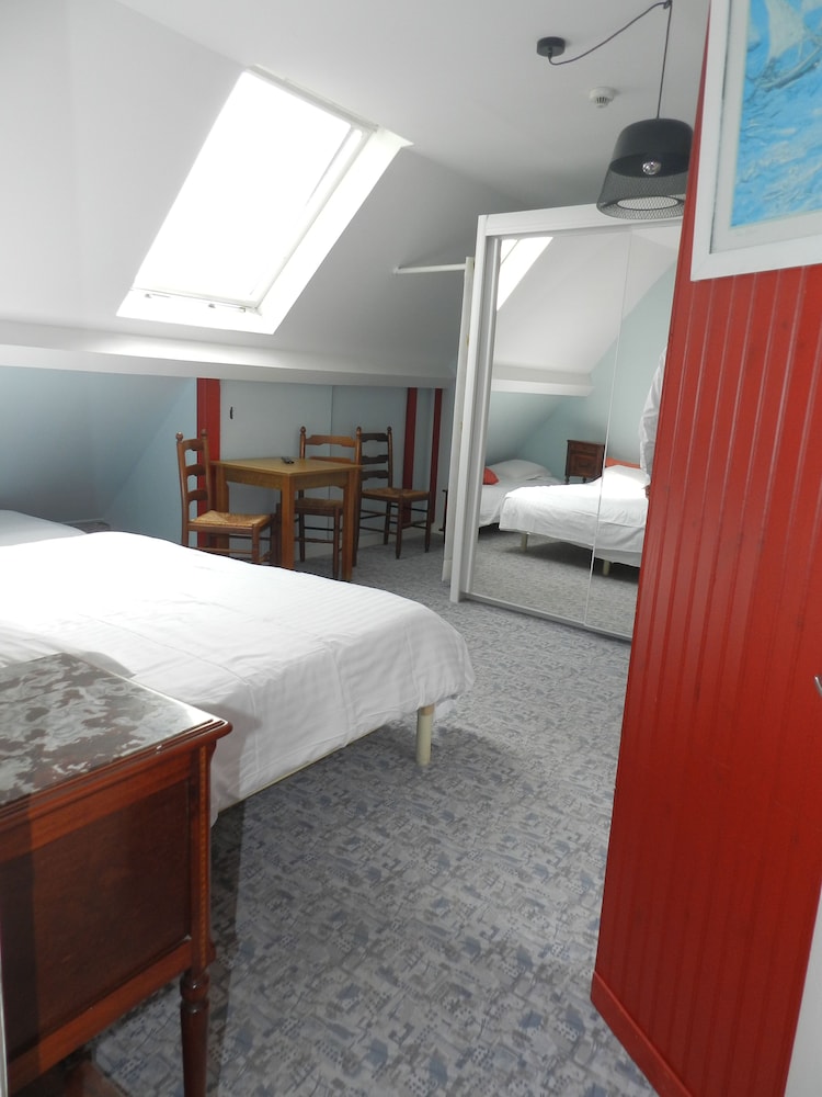 Location was perfect lots of pubs and restaurants. However if it was not for these the trip would have been a total disaster. Firstly on the web page it says book in from 1130 yet when you get to the place you can not book in until 1500 not good when you have spent many hours travelling. When you get there the hotel is spread over 3 locations so you don't have a clue where you're going.when you finally the place is a tip. Electric sockets hanging off the walls tiny worn out double bed. Closest you come to a sea view is a picture on the wall of a plate of fruit der mer! The main door is left wide open all night for anyone to enter. Outside of the building is a big poster stating rooms in the hotel are 63 euros a night and yet via Hotels.com we are charged 83 euros plus tax how does that work total rip off avoid at all costs. However on a positive the Normandy restaurant across the street has the best seafood we have ever tasted and to be honest book in their and avoid this hotel.