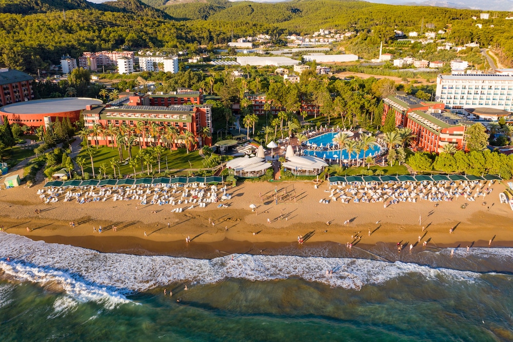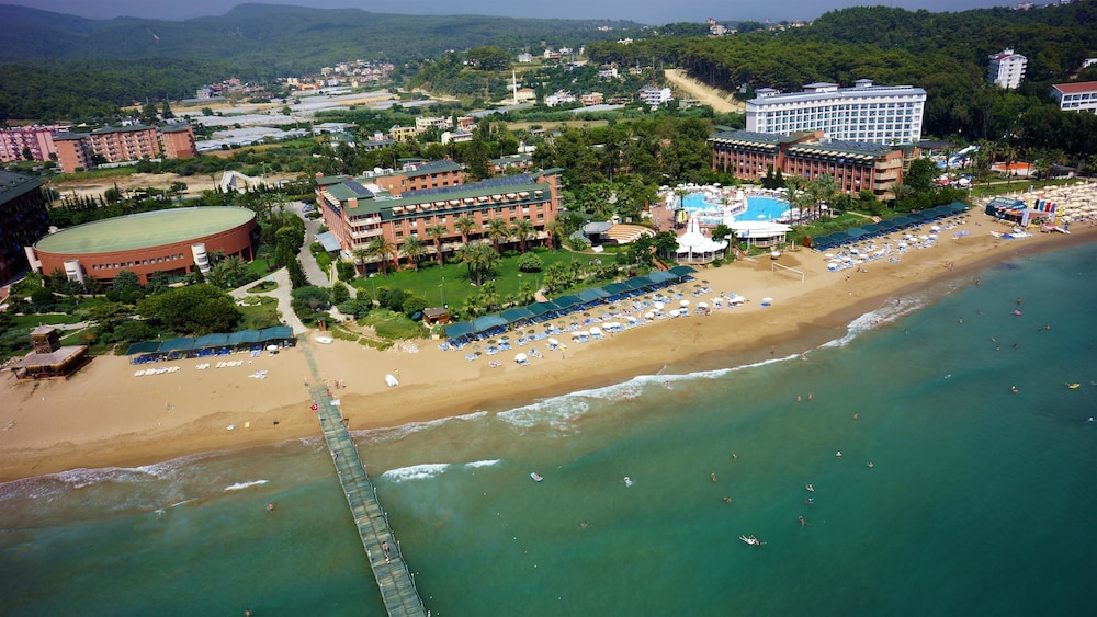 Schönes Familienhotel direkt am traumhaften Sandstrand. Große Poolanlage, abwechslungsreiches Essen und kinderfreundliches Angebot. Acces an 3 Hotels Royal, Club und Resort man kann im Bars trinken und polls schwimmen aber nicht Essen. Personal ist freundlich, Zimmer teils etwas veraltet. WLAN ist Free, Ideal für Familien – weniger für Ruhesuchende. Wir hatten Familienzimmer mit Meerblick. Richtig schön. Empfehlen wir weiter. Einkaufsmöglichkeiten gibts es in Avasallar oder direkt gegenüber des Hotels aber man muss verhandeln und auf die Qualität achten.