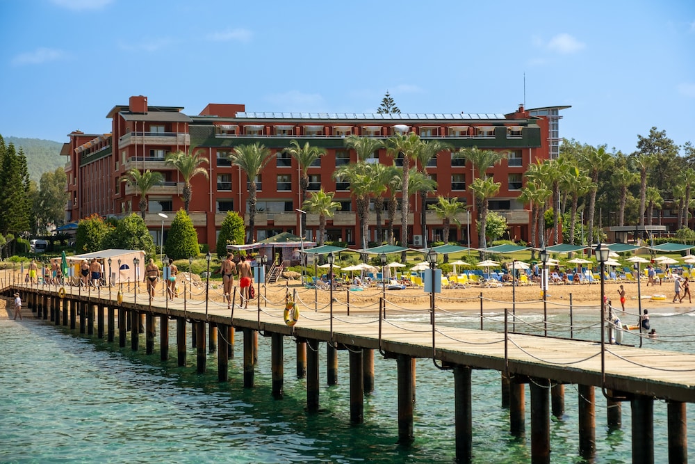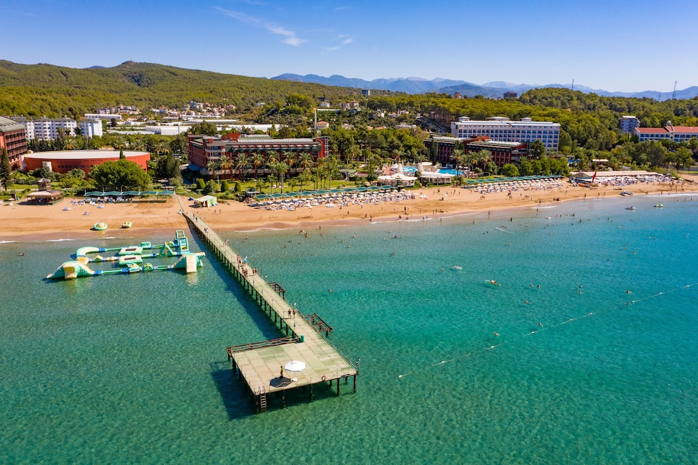 Otelin konumu ve alan kullanımı gayet güzel. 3 otelin aynı tesis içinde olması be tüm alanların kullanılması hoşumuza gitti. Çalışanların hepsi güler yüzlü ve saygılı özellikle restaurant ve havuz bar personelleri çok ilgili ve yardım severdi. Tesis temizliği aktiviteler plaj konumu genel olarak hoşumuza gitti . Tekrar ziyaret etmek isteyebileceğimiz bir otel. Sadece tatilimizi uzatmak istediğimizde daha yüksek bir ödeme yaparak uzattık ve 2 gece uzatma yapamadıklarını yönetim onayı gerektiğini söylediler. Fazla ödeme yapmak ve bu süreçle ilgili uğraşmak yordu bizi onun dışında nezih ve keyifli bir otel.