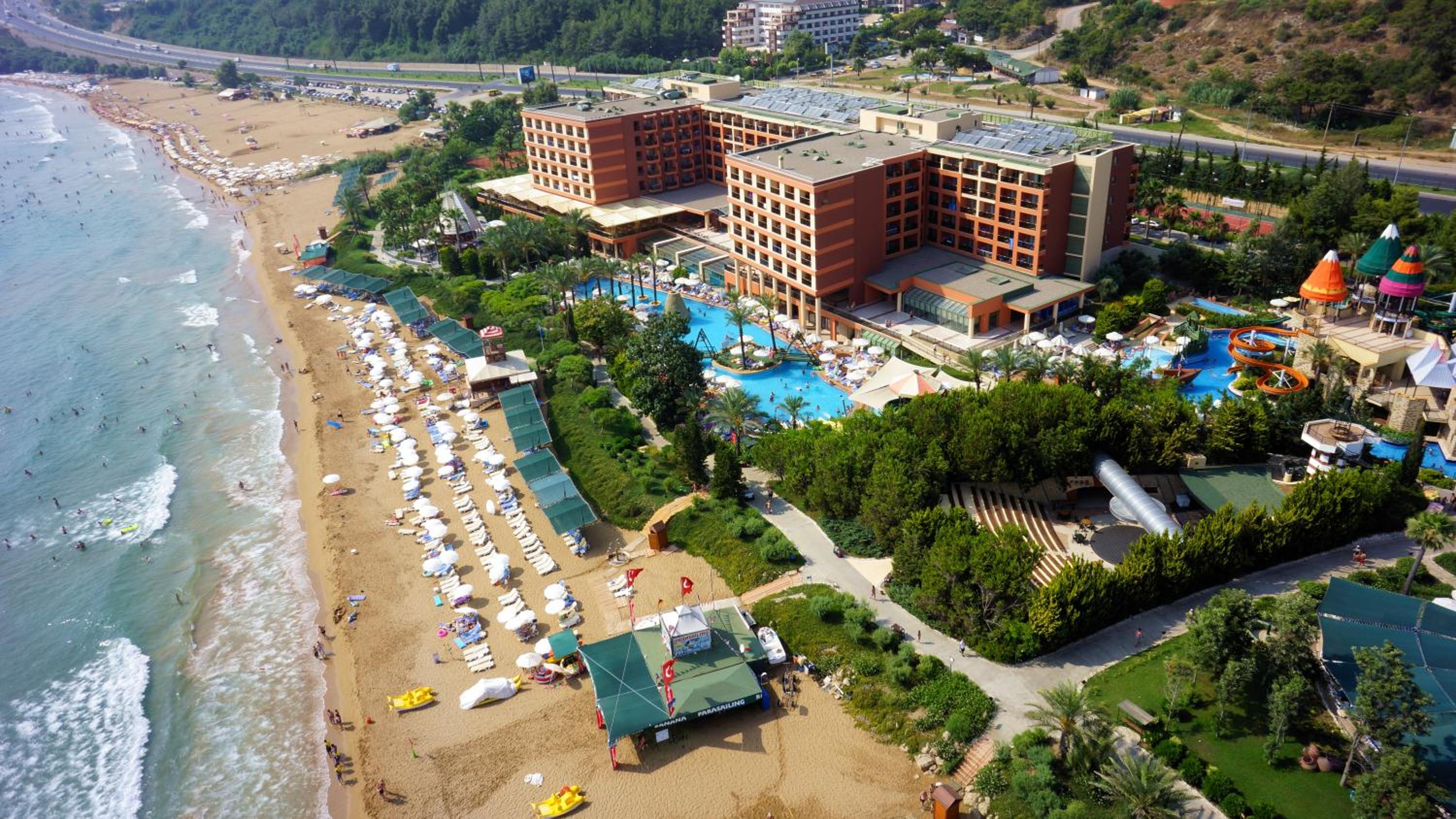 The hotel has so much to offer - a lot of pools with water slides, tennis courts, archery class, a game centre, SPA with amazing hammam massage, and more. Also, the beach is very close, because the hotel is right next to the seaside.