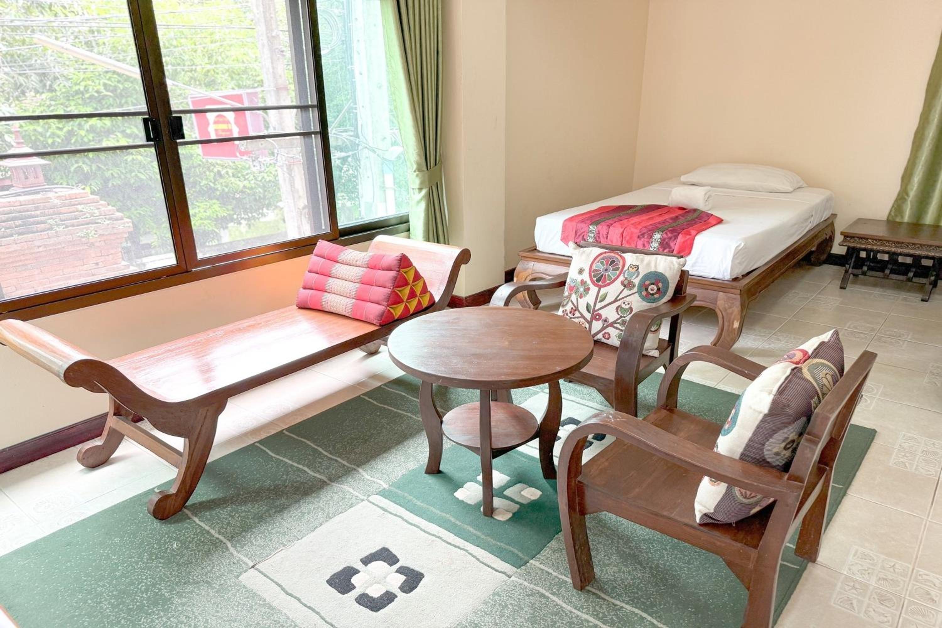 Me gustó mucho la ubicación y las vistas a un templo espectacular. Todo el personal fue muy amable, la habitación limpia y tenía aire acondicionado que es bastante importante porque hace mucho calor en la ciudad