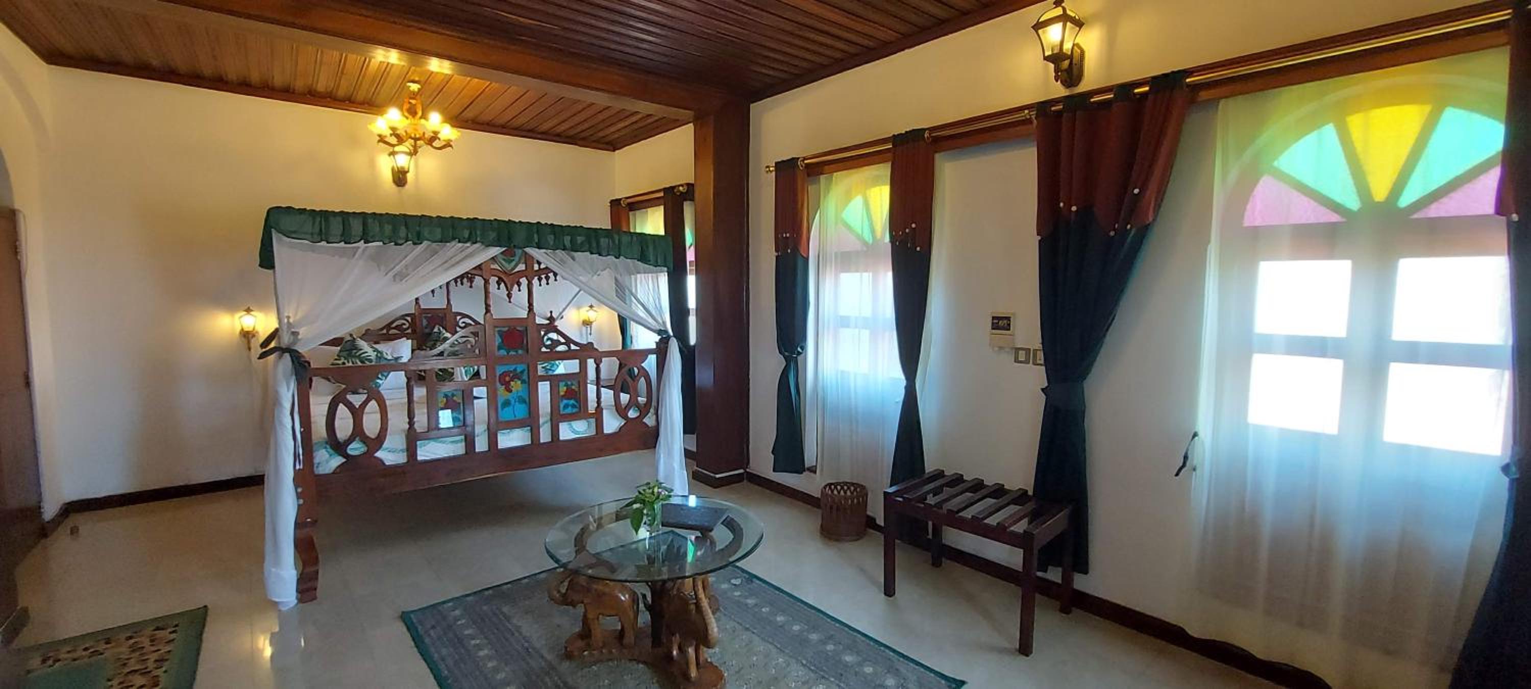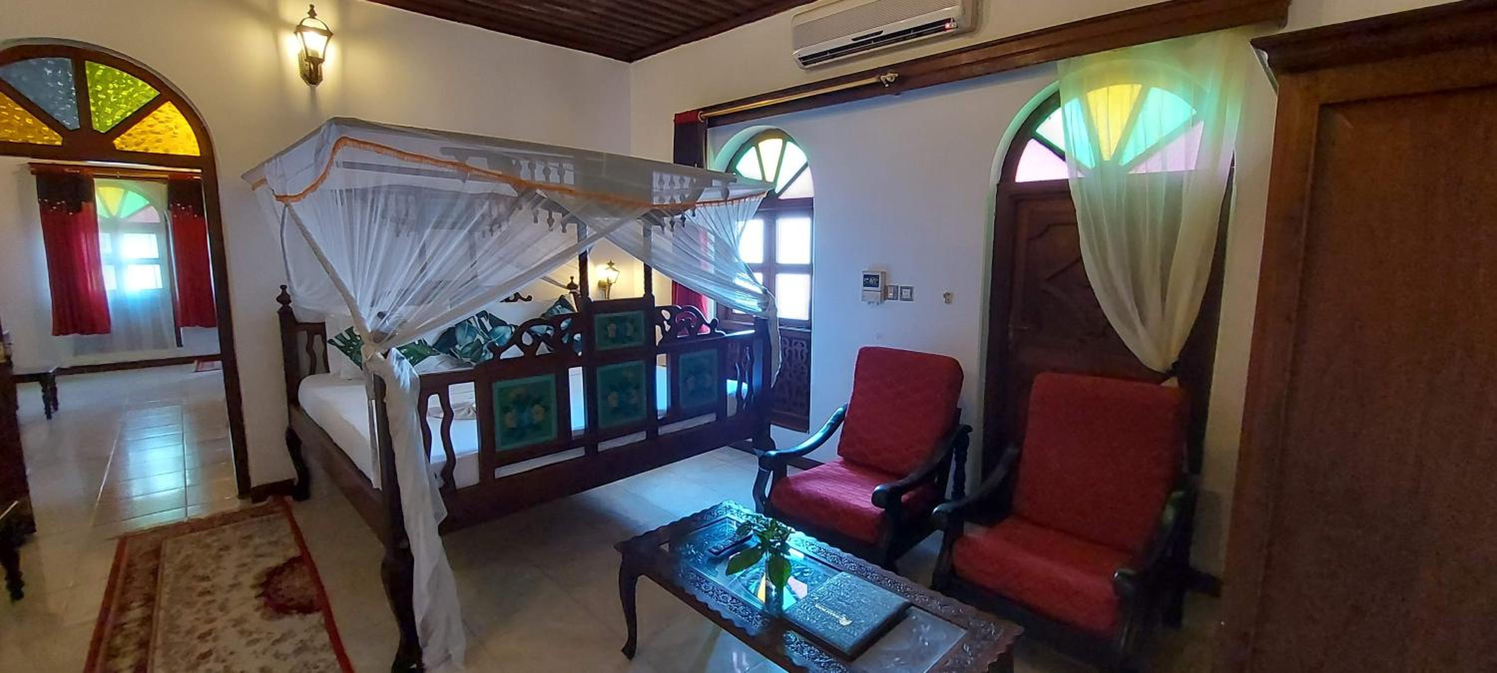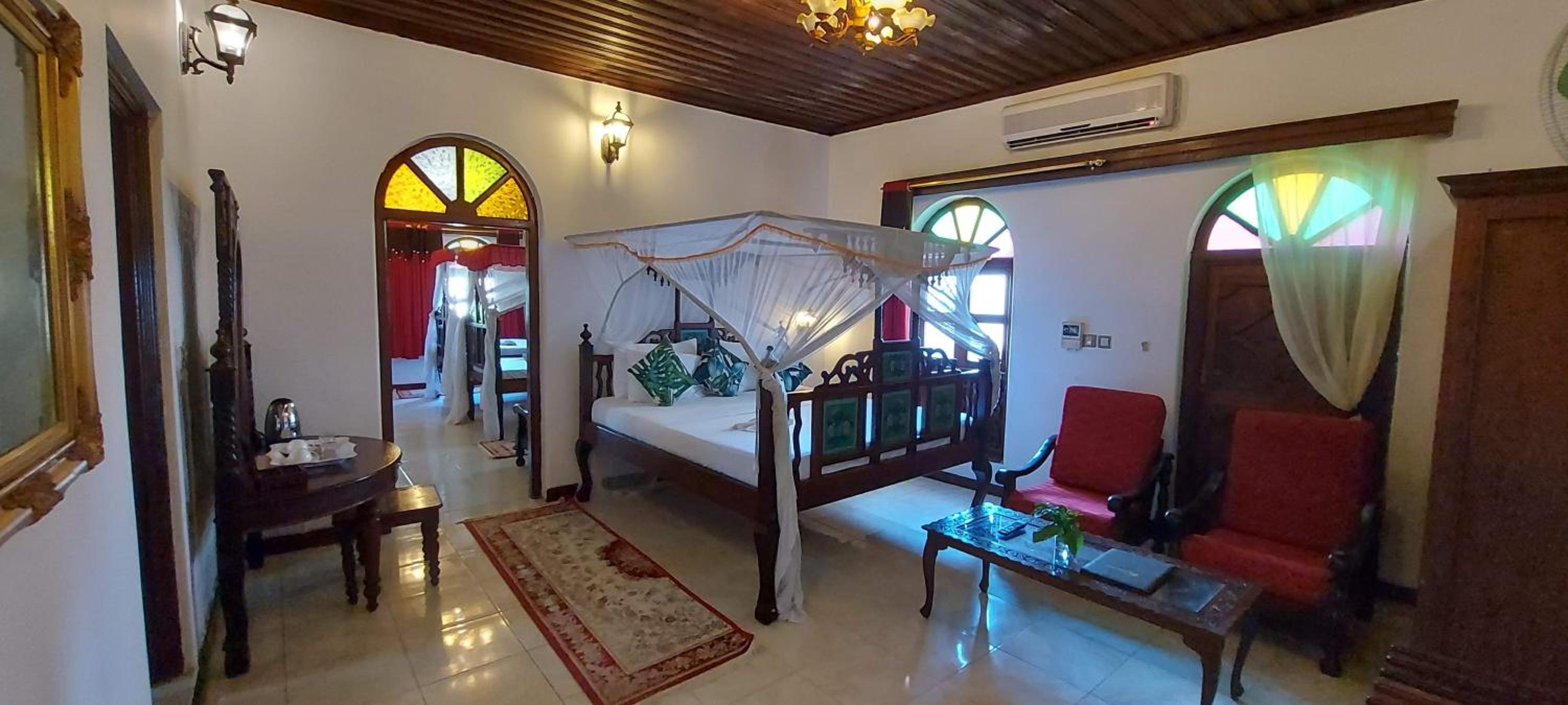 Good value for the price and centrally located for an urban experience of Zanzibar. I spent a night there and my room had lots of character with beautiful sculpted wood furnishings. The bathroom was not renovated, unlike the room itself. It was functional but not inviting. No bottled water was provided which would be nice at least to brush your teeth (can’t drink the water in Zanzibar). The mosquito net had some holes in it. The staff’s English is very limited, which can make communication around basic things challenging. Nice rooftop.