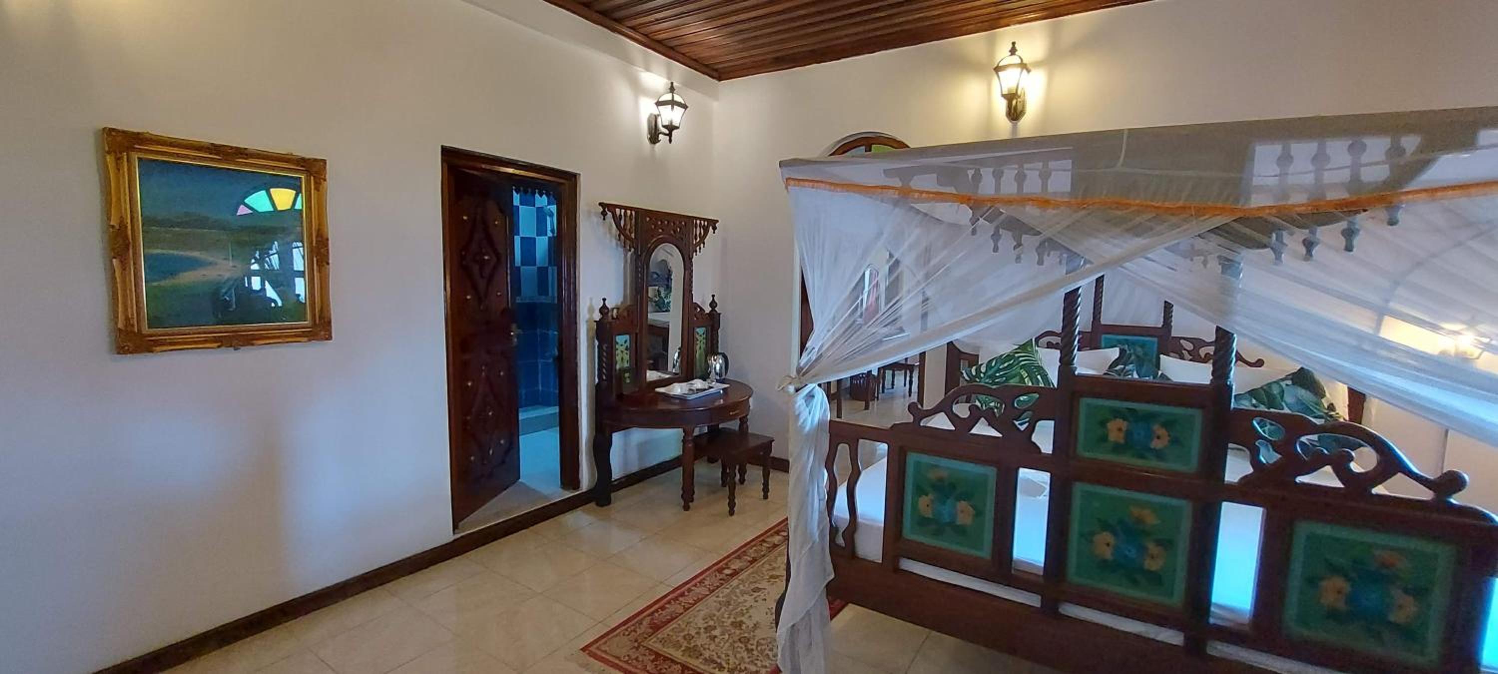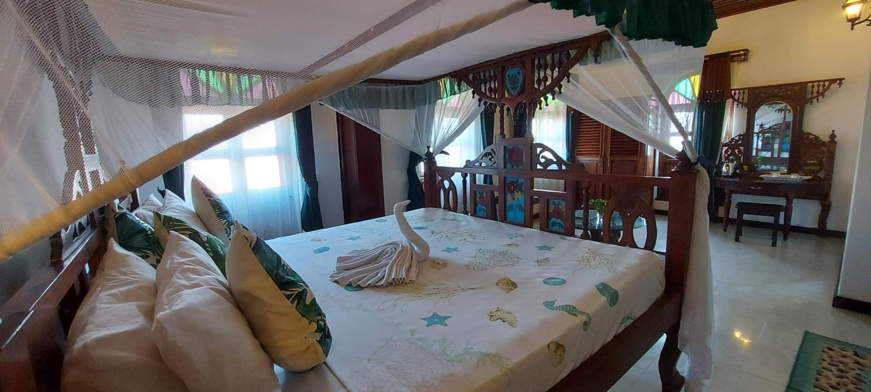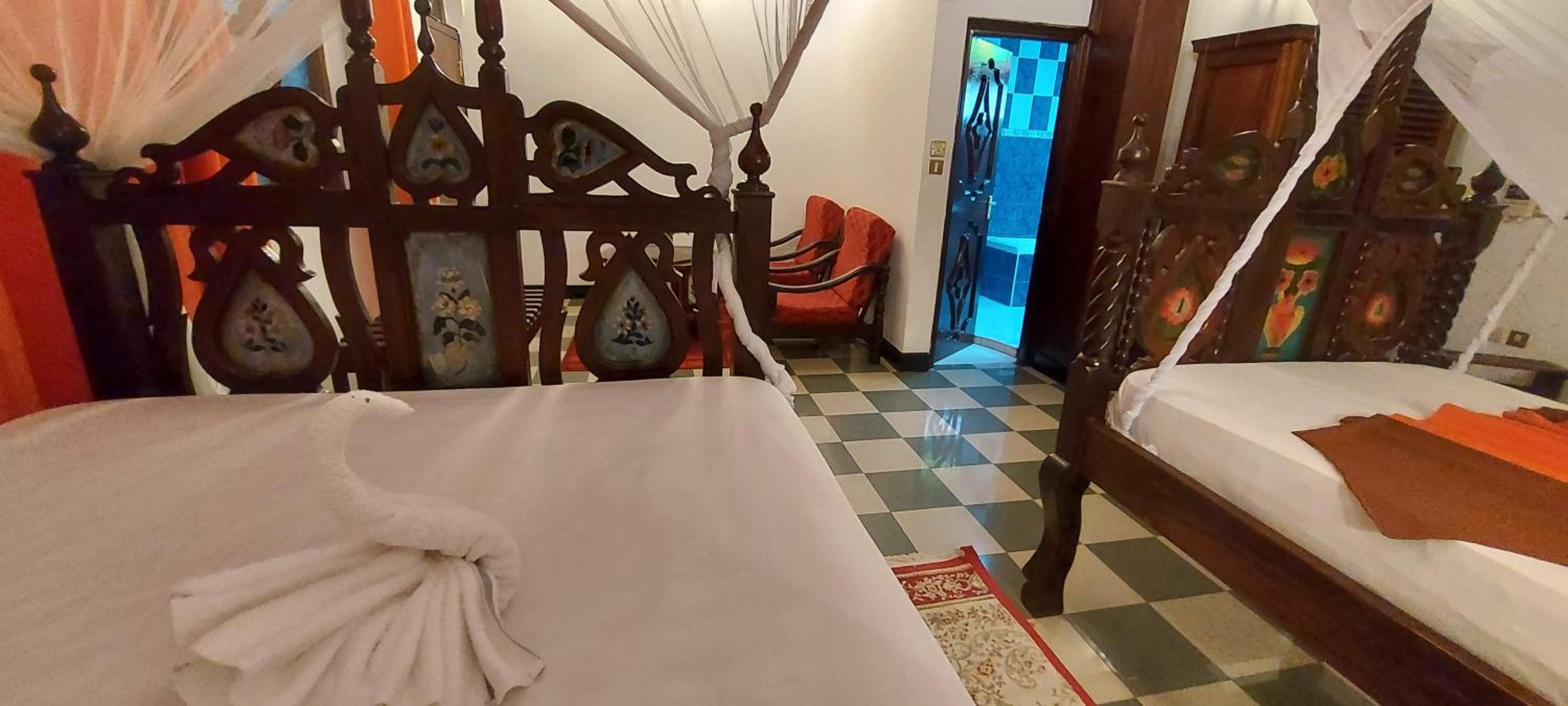 Good value for the price and centrally located for an urban experience of Zanzibar. I spent a night there and my room had lots of character with beautiful sculpted wood furnishings. The bathroom was not renovated, unlike the room itself. It was functional but not inviting. No bottled water was provided which would be nice at least to brush your teeth (can’t drink the water in Zanzibar). The mosquito net had some holes in it. The staff’s English is very limited, which can make communication around basic things challenging. Nice rooftop.