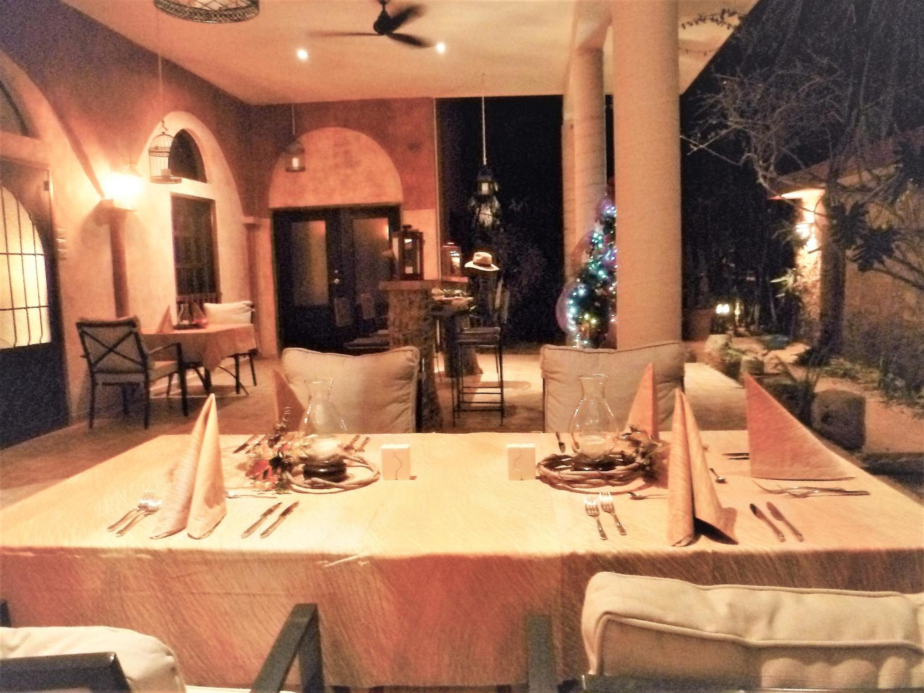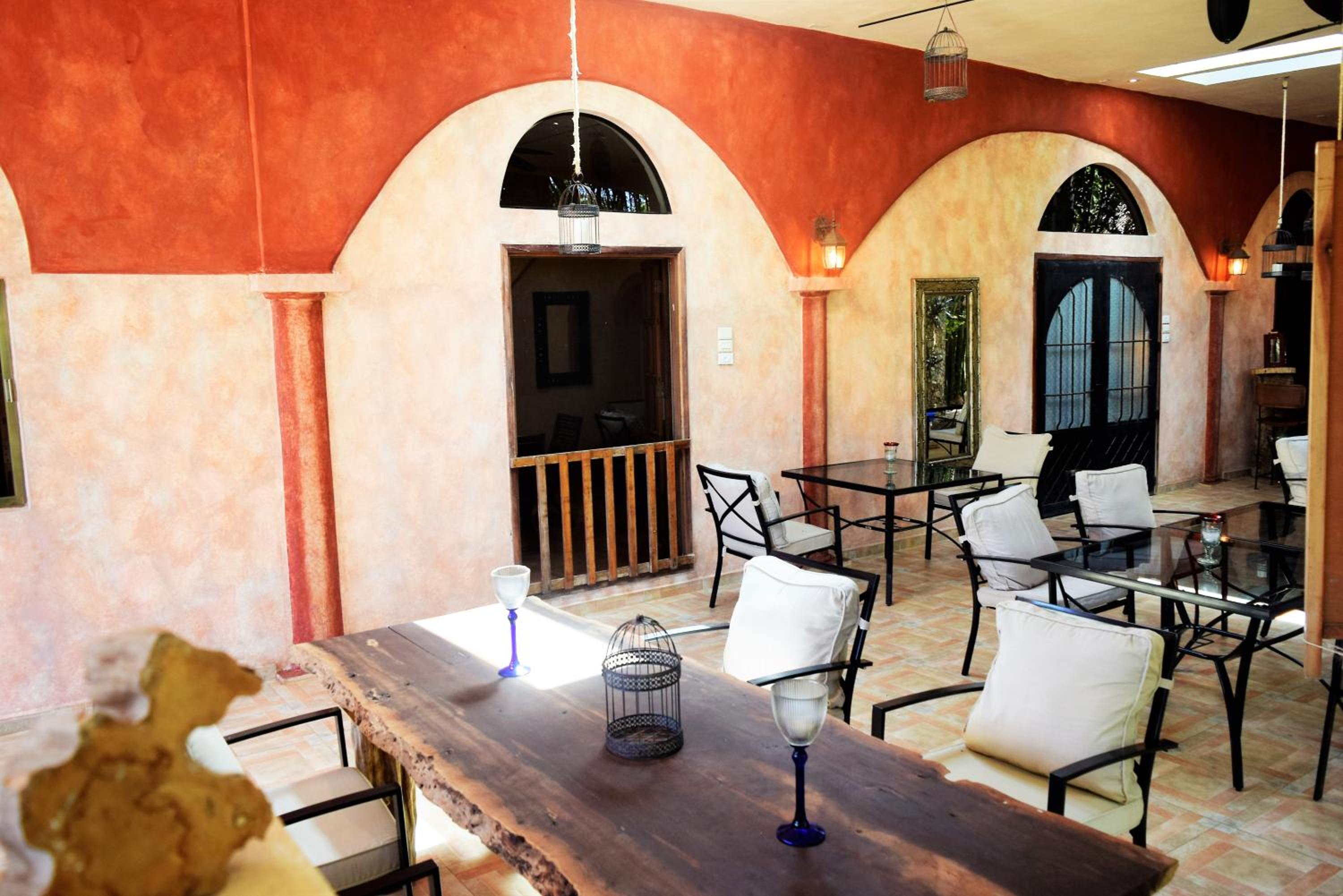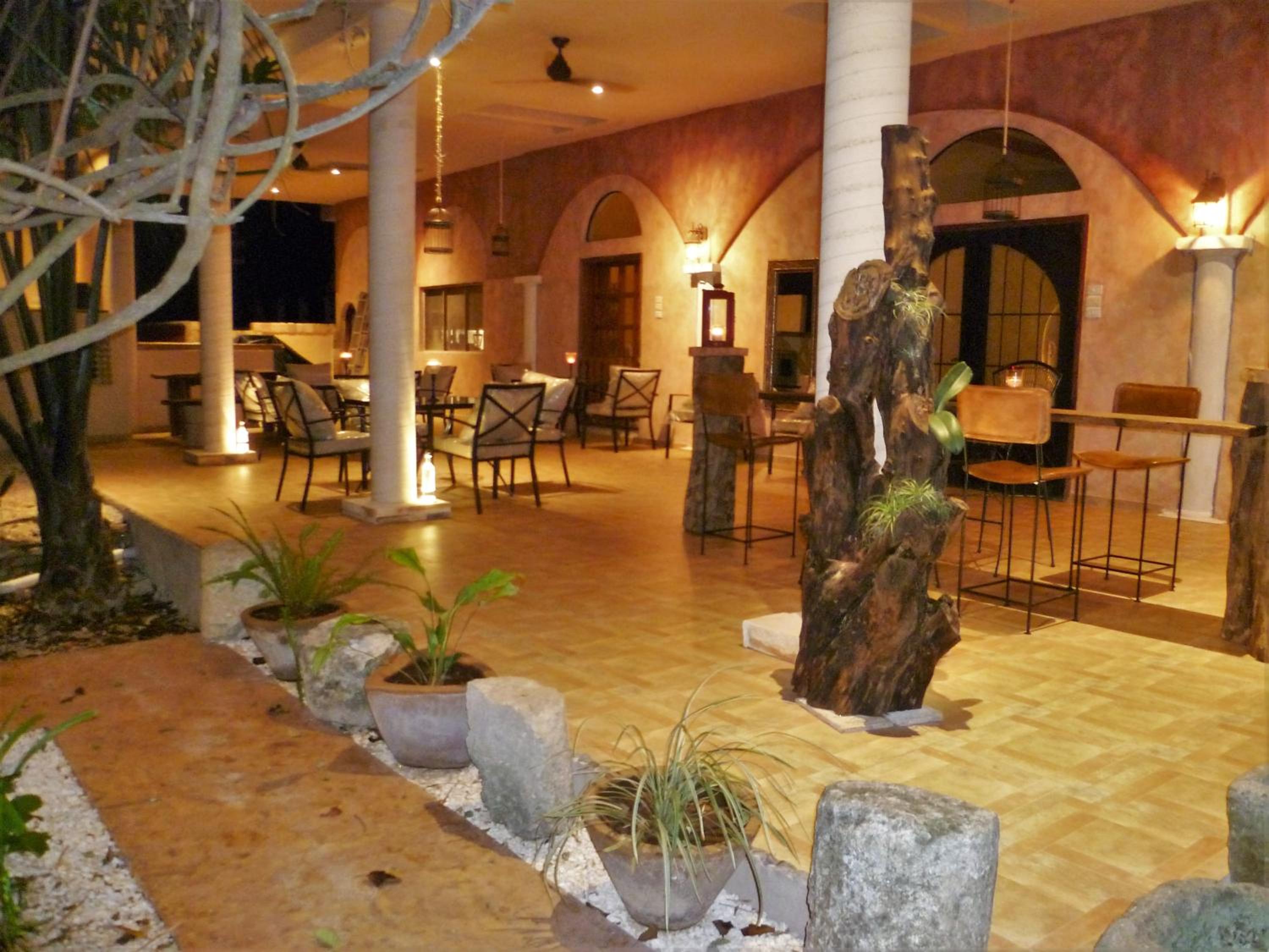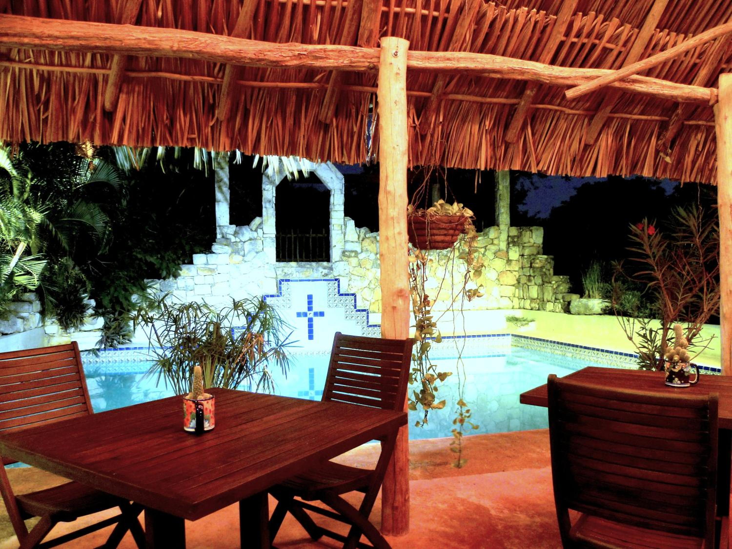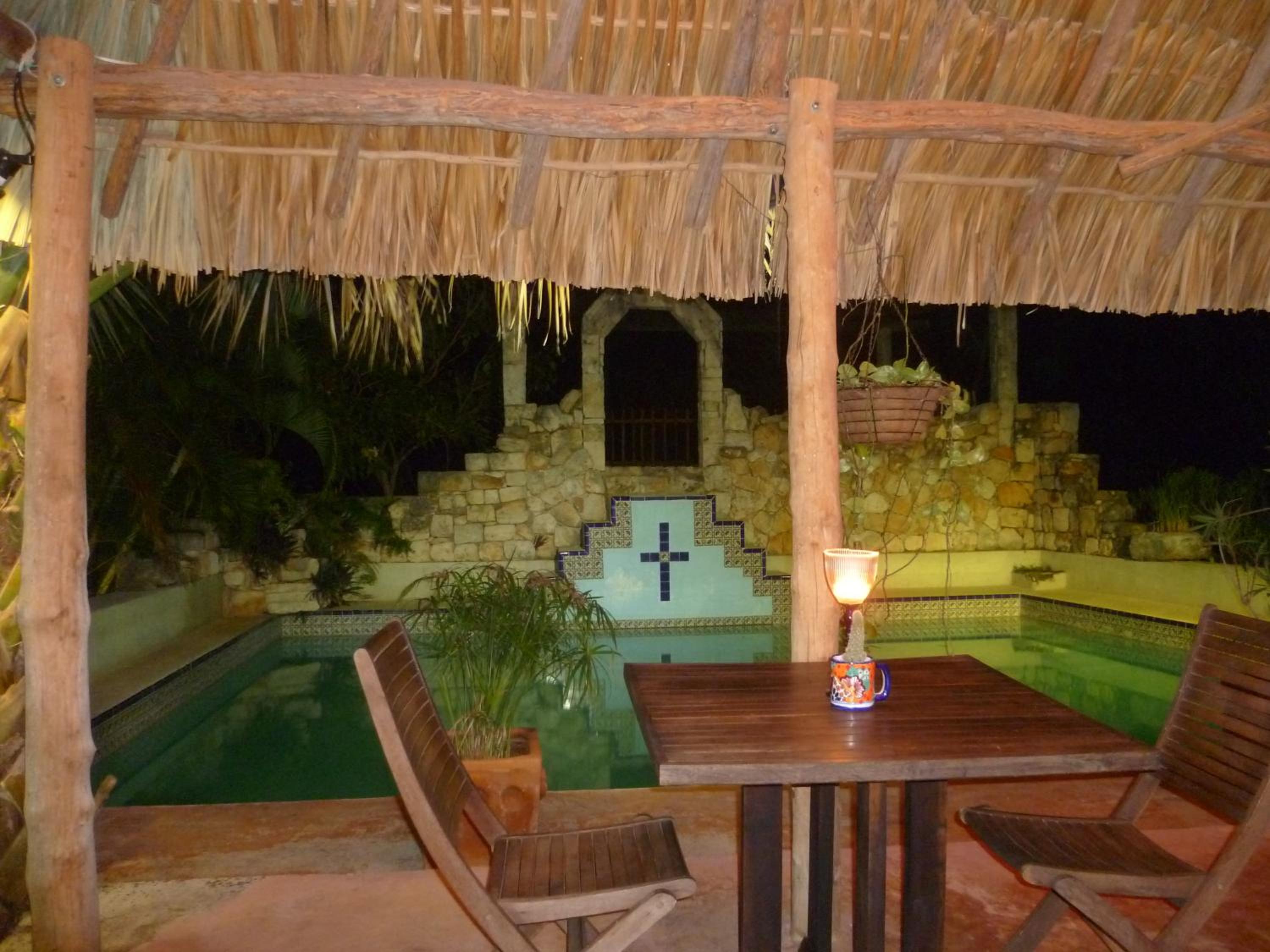 Arriving here we immediately felt relaxed and happy. Harald welcomed us with a drink at the bar while he told us about the hotel and gave us information on Izamal. Our rooms were spacious, comfortable, spotlessly clean and very Mexican in style, with a covered seating area outside. Dinner was served on the lovely terrace and the food was delicious. Breakfast at the pool bar was also very good. The hotel is about a 15 minute walk to the monastery in the centre of town and is a lovely, peaceful haven to come back to after sight seeing. Highly recommended.