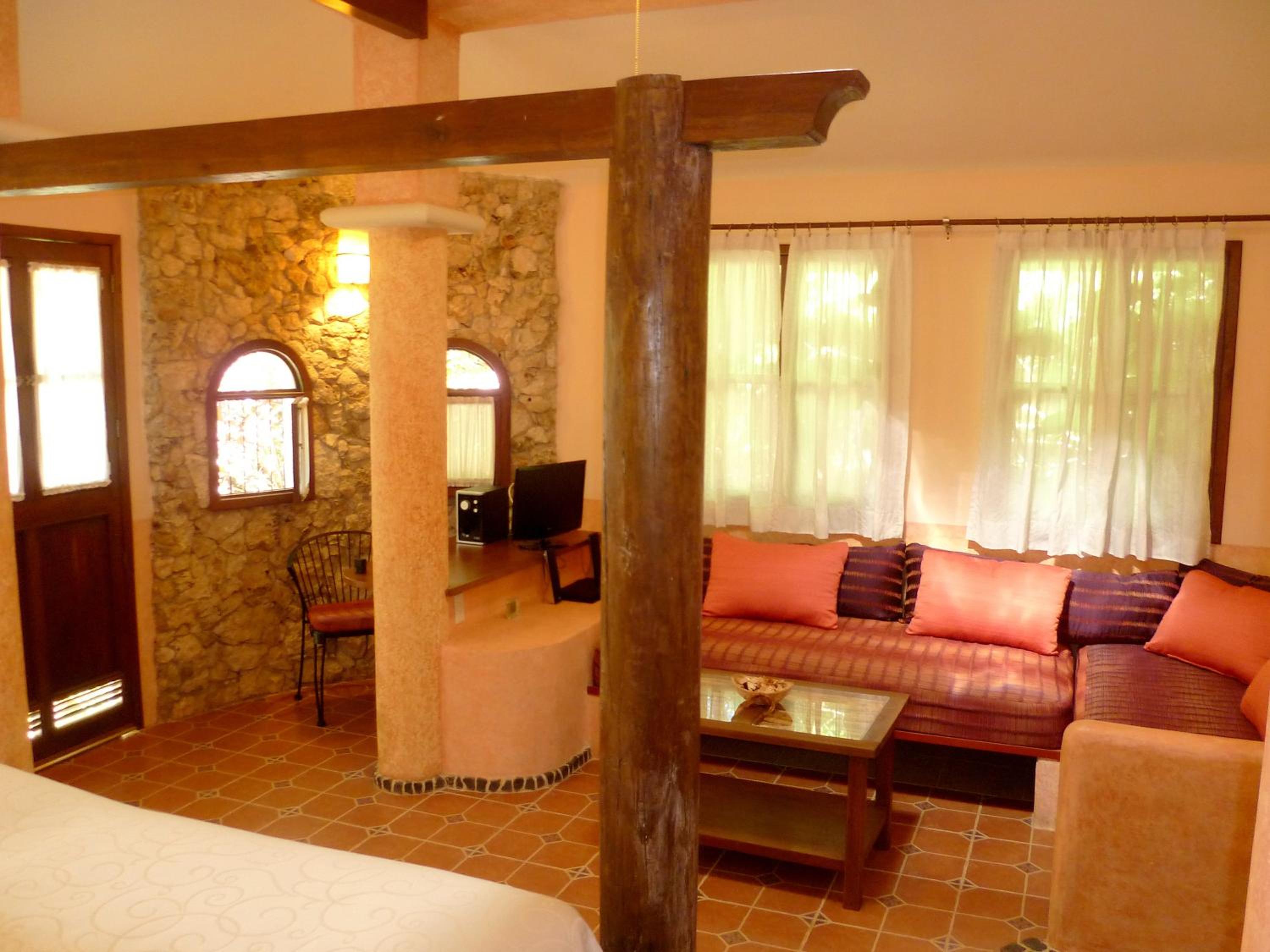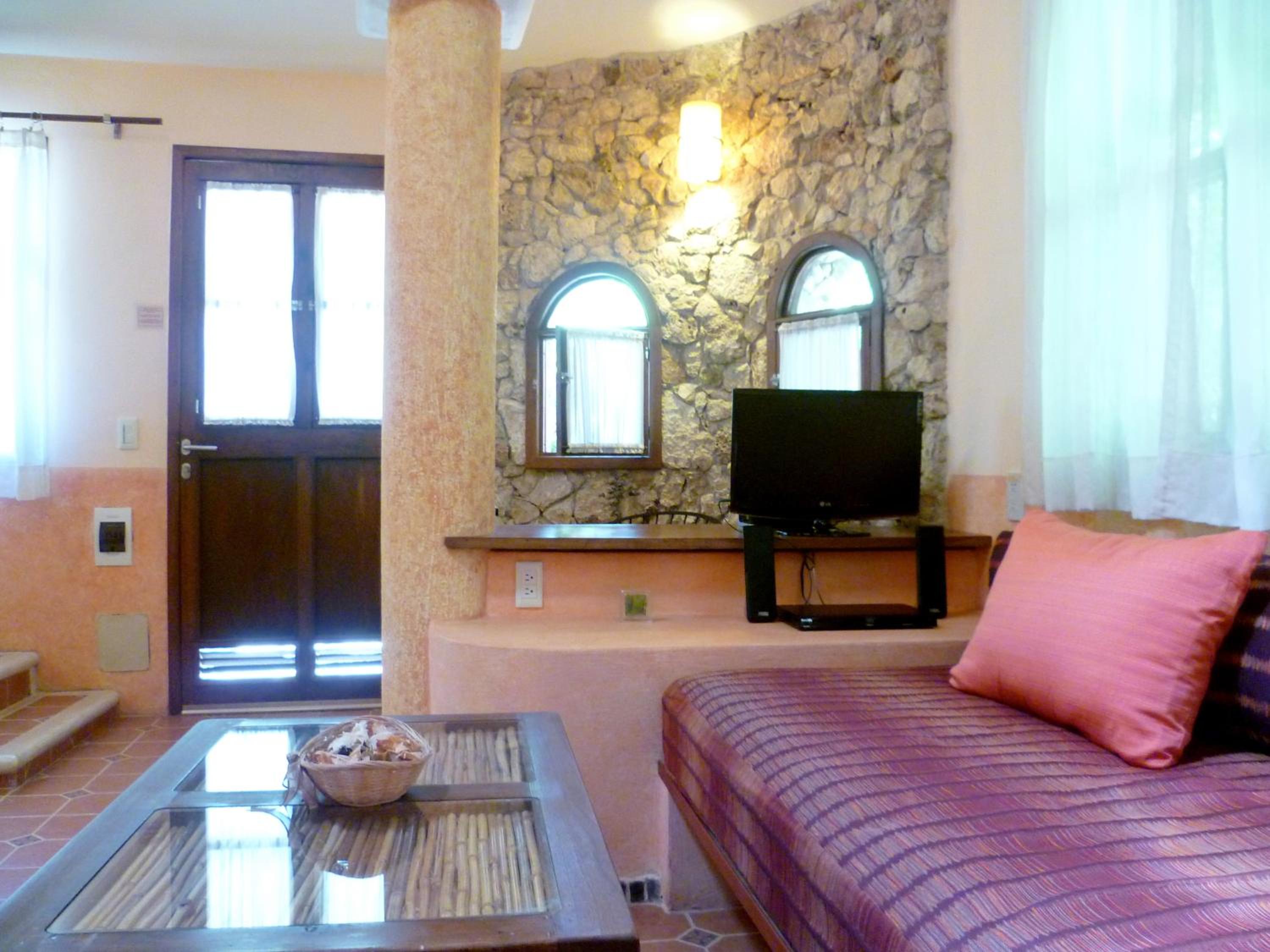 We stayed in Casita Uxmal. The king sized bed was super comfortable. The design of the casita was romantic with low lighting in the bedroom above the canopied bed. Personally, we would've found a table lamp useful for reading in the evening. The grounds have lush vegetation and the paths are meticulously maintained. The WI-FI works very well, the lack of cable/TV was not missed by us. Lots of dogs laze around the grounds and are very peaceable but they woke us with one big chorus of a howl in the middle of the night! We fell back to sleep easily but it was something of a surprise. Be sure to get the breakfast; I had Mexican style scrambled eggs and the warm rolls and flaky croissants along with the rich dark coffee were perfection!