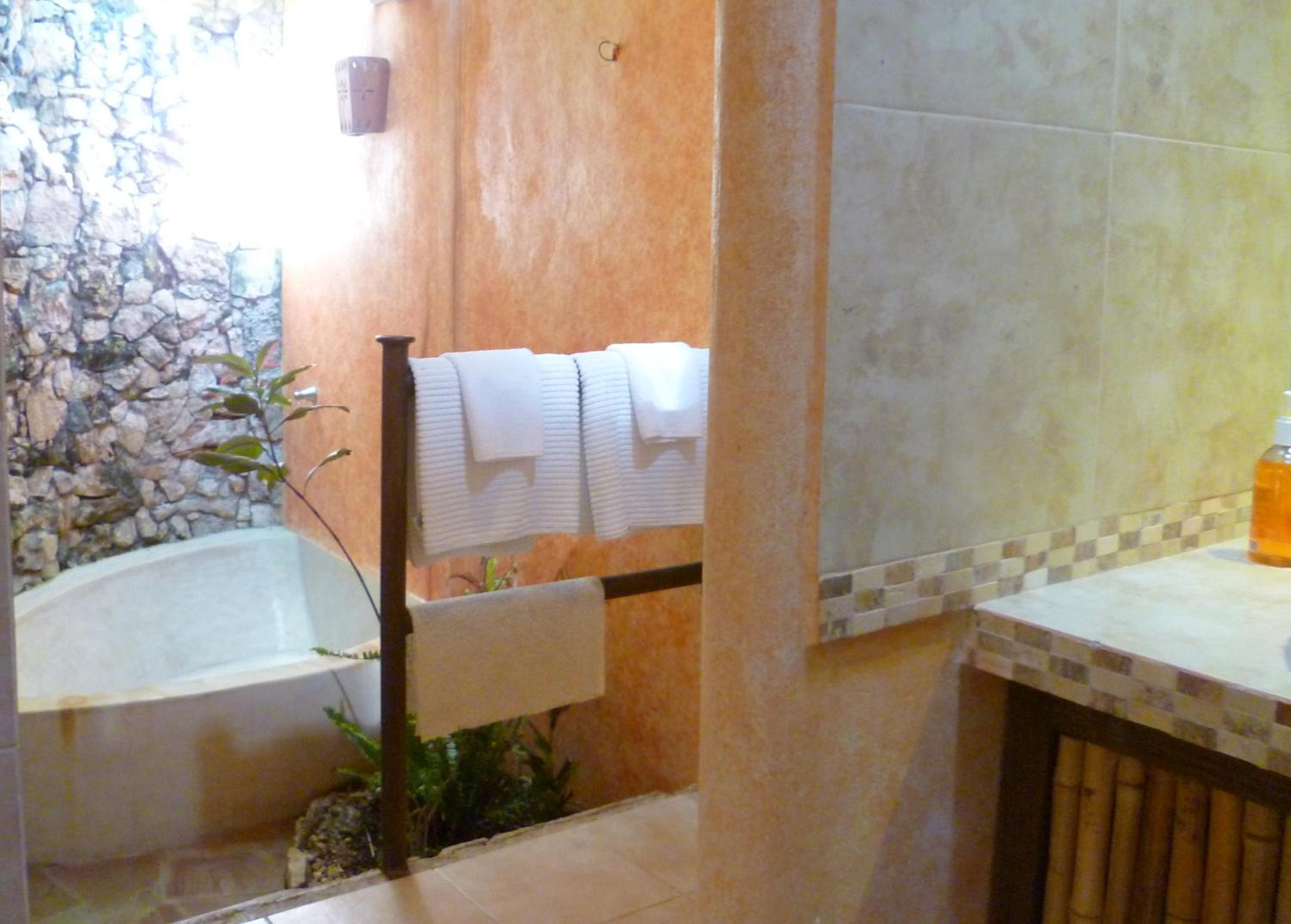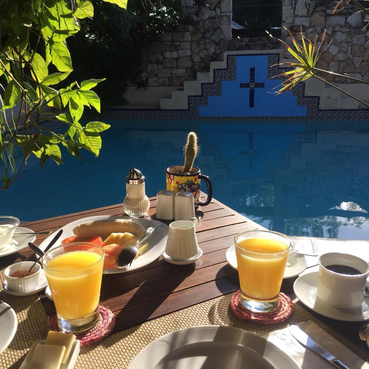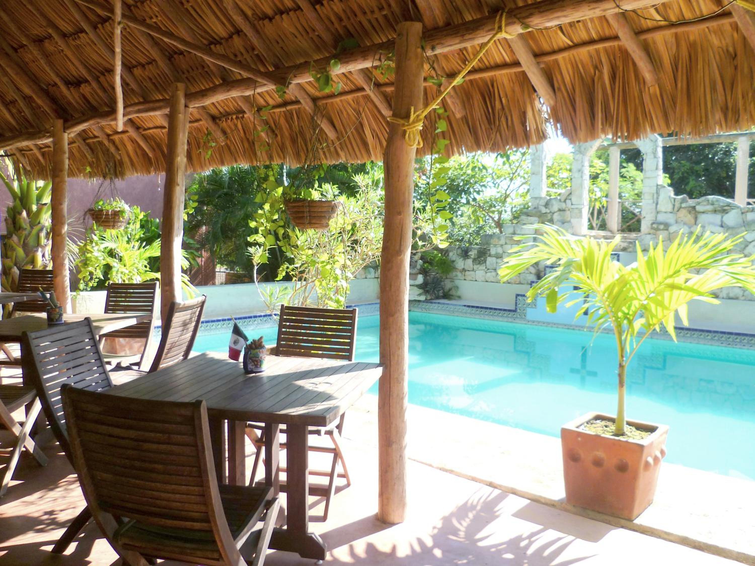 This is a charming, well-tended spot with habitationes spread across the property with a lively revitalizing pool after a hot day of sight seeing. Breakfast was the best we have had in Mexico: fresh fruit plate, fresh OJ and croissant that must be baked in house as well as main course. The palapa pool area also has a full bar and ready to serve you. Definitely get the junior suite; we visited new found friends' regular room and you could barely swing a cat in it, Shower water is hot and taps high pressure. See some liked the 10 dogs on property; could have done without the occasional barking at the gate. Izamal is my favorite alternative to Merida. Colonial feel, Yucatan cuisine without the crowds and noise. Hotel is a six block walk to el centro. Since the hotel is owned by Europeans, ice is not a priority. If I could improve one thing, it would be to install a fridge in the room and have more ice available at the bar. Oh, we Norte Americanos!