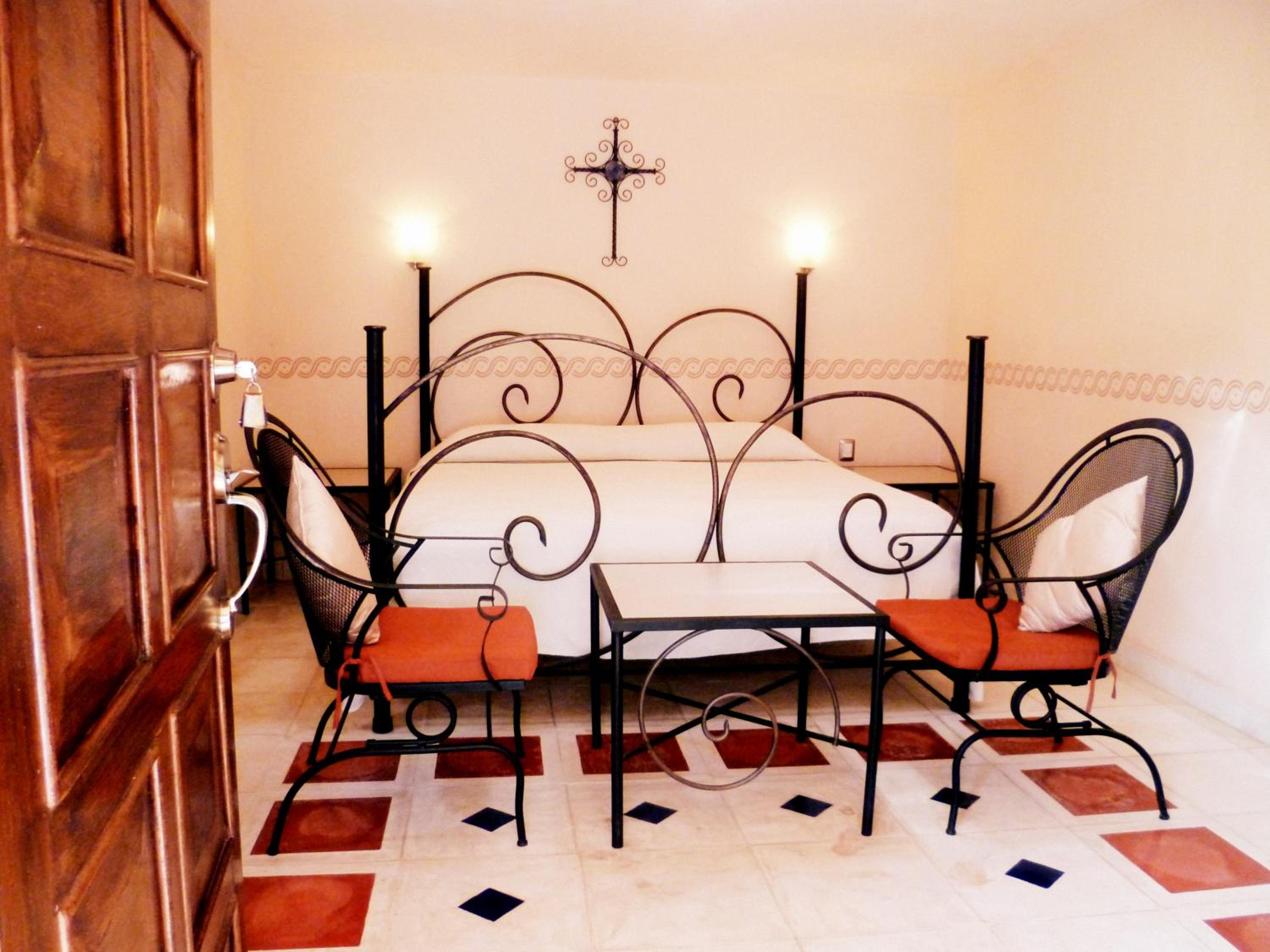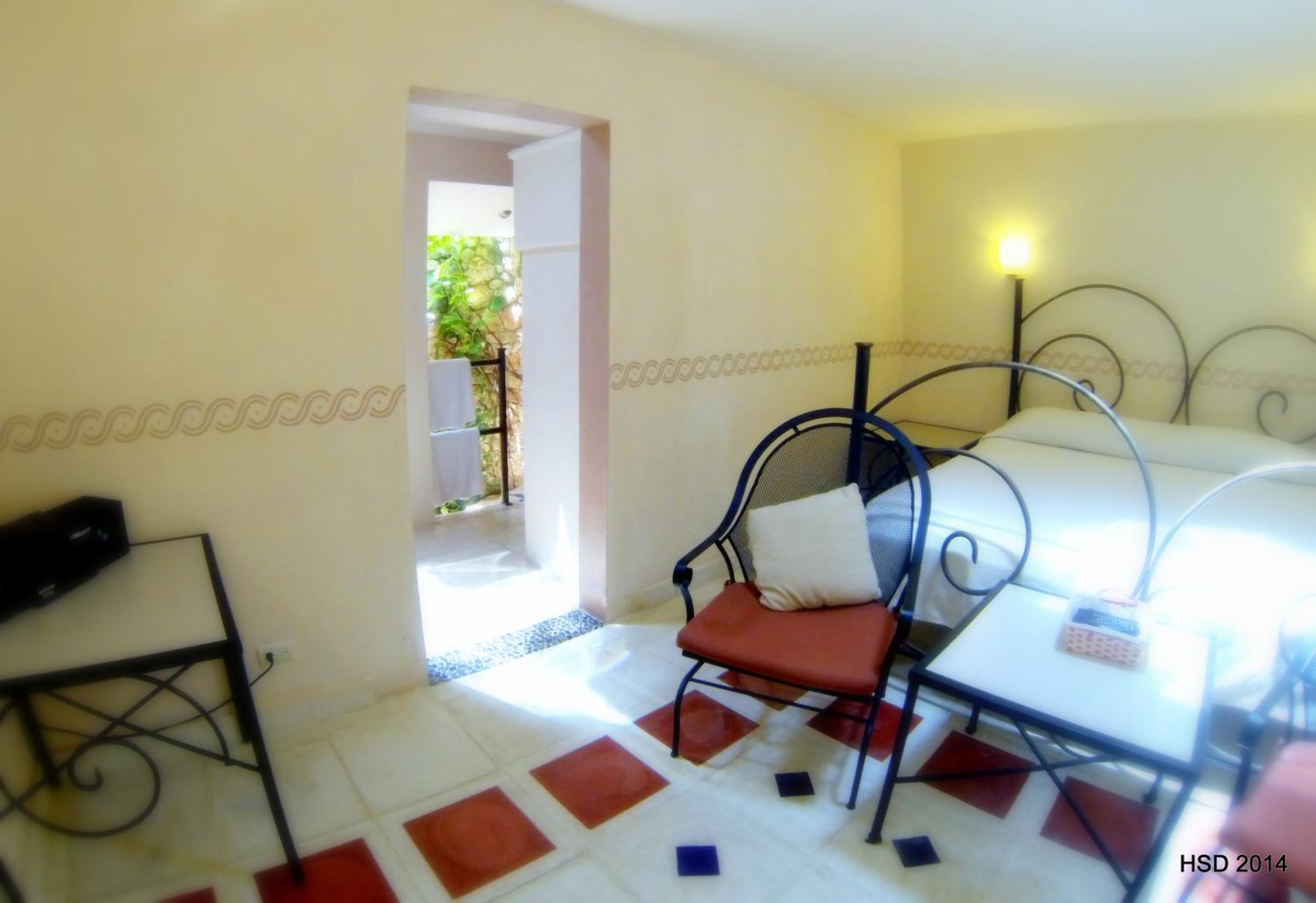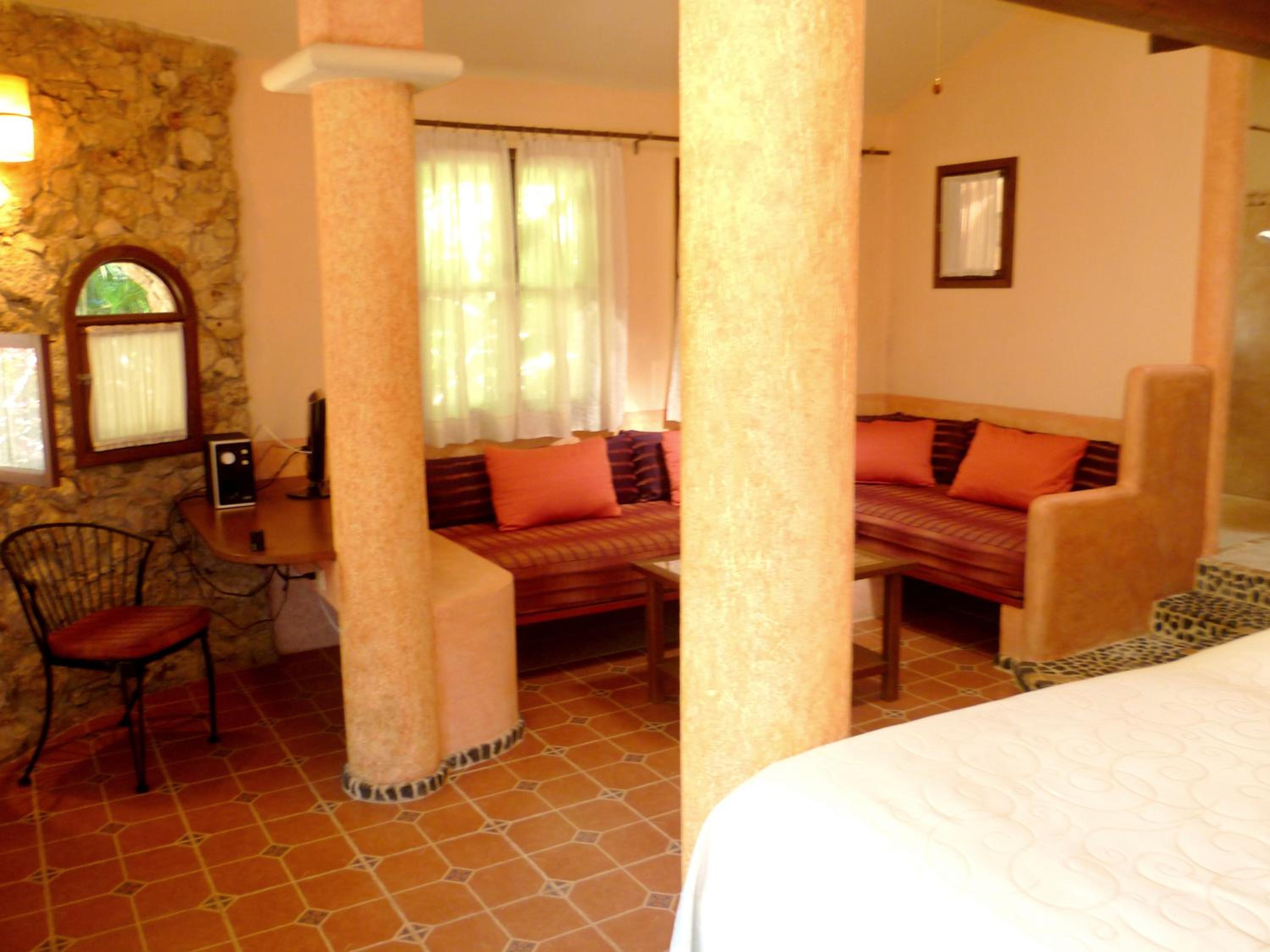 Nice room with seating area. Very pleasant breakfast by the pool and dinner was the best meals we ate in Mexico. Friendly proprietor and staff. The only problem was to get from the bed to the toilet you had to go down and then up 3 steps which were difficult to navigate at night. The hotel does provide one small motion sensor nightlight, but they really need a couple more by the toilet. Luckily we had brought a torch, so managed,