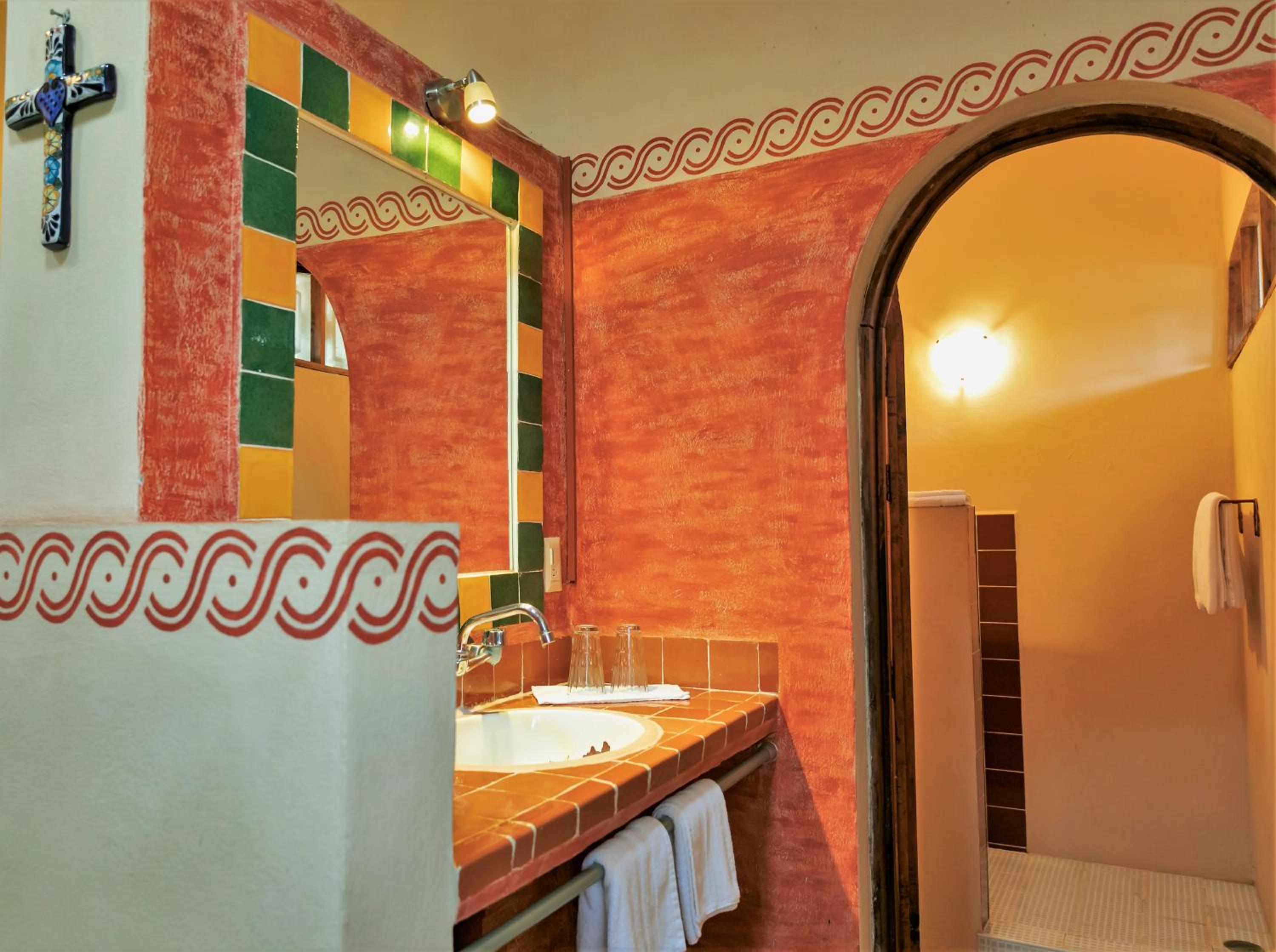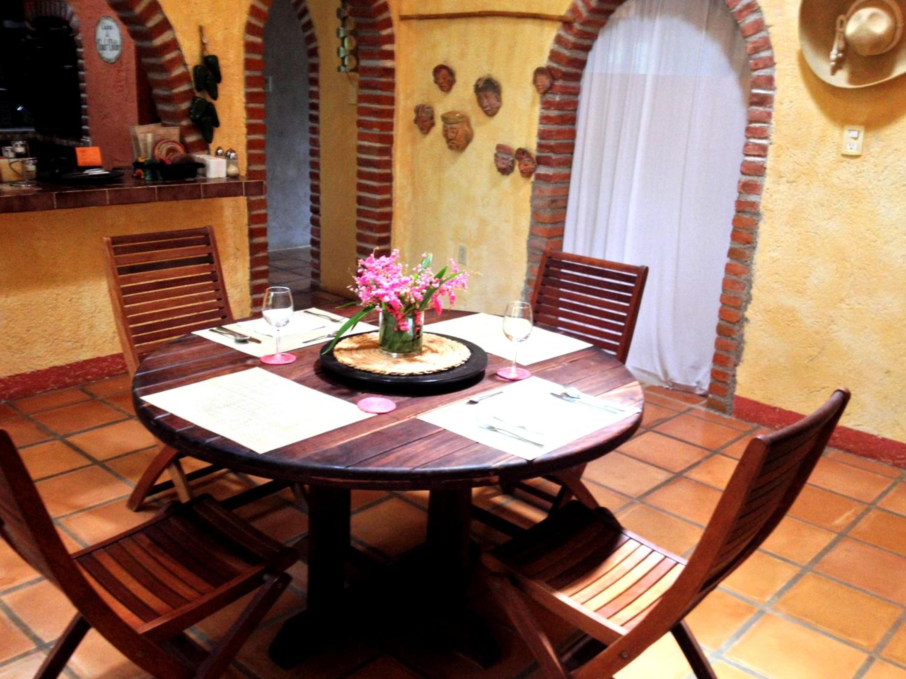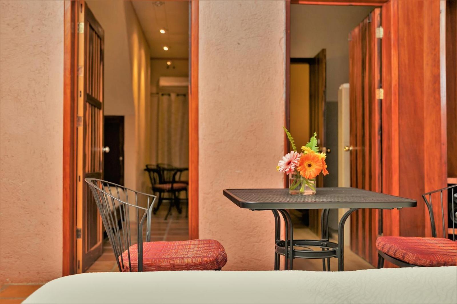 Nice room with seating area. Very pleasant breakfast by the pool and dinner was the best meals we ate in Mexico. Friendly proprietor and staff. The only problem was to get from the bed to the toilet you had to go down and then up 3 steps which were difficult to navigate at night. The hotel does provide one small motion sensor nightlight, but they really need a couple more by the toilet. Luckily we had brought a torch, so managed,