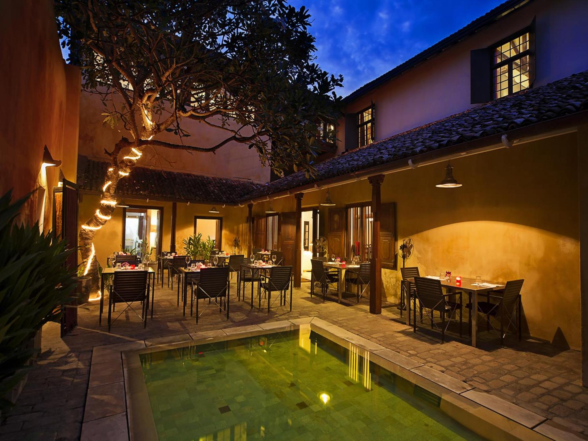 Amazing colonial vibe , the pool , the lobster curry