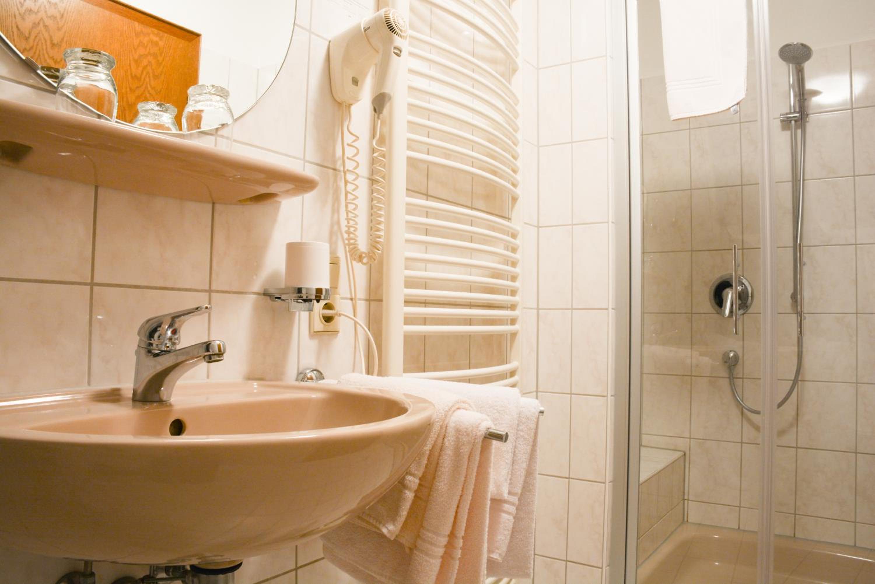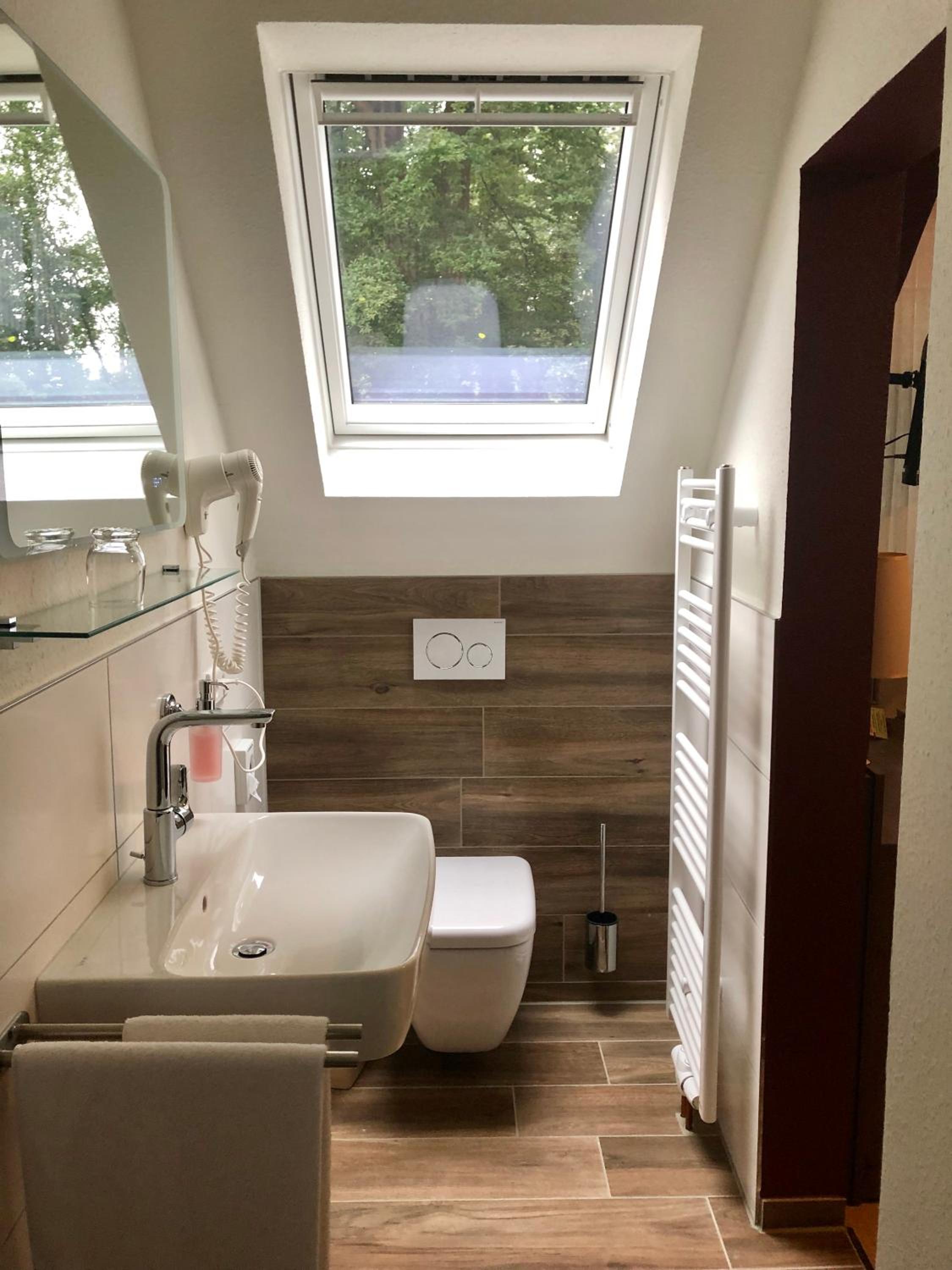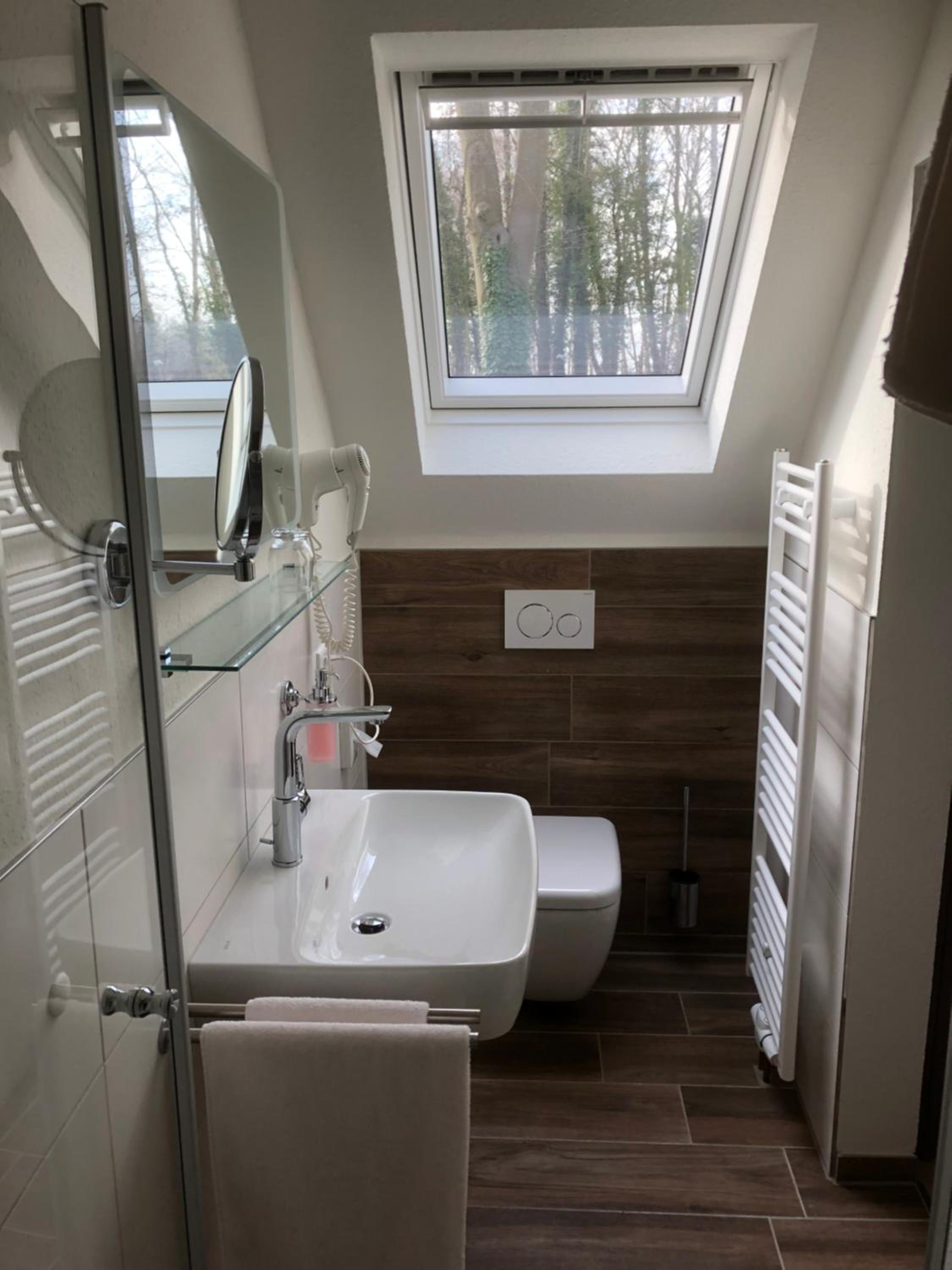 Traditional Style Rooms: Experience the cozy comfort of traditional-style rooms at Gasthof Waldesruh, each equipped with modern bathrooms for your convenience.