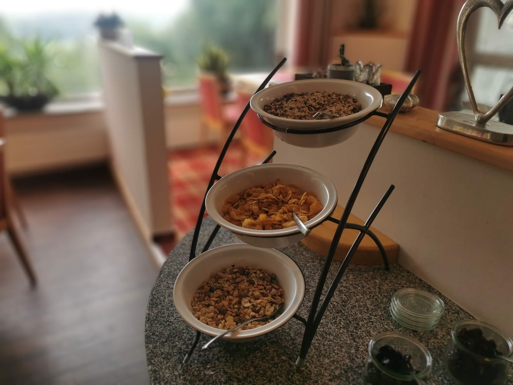 Repeat visitors! Keep coming back to this place. Friendly and laidback service. Has it all for family w big kids and dog enroute to holidays. Family room w big balcony and fabulous views. Shower w excellent waterpressure or bath. Easy arrangements for late arrival and forest on doorstep for walking dog. Excellent breakfast with good coffee. Restaurant and beautiful garden for earlier arrivals.