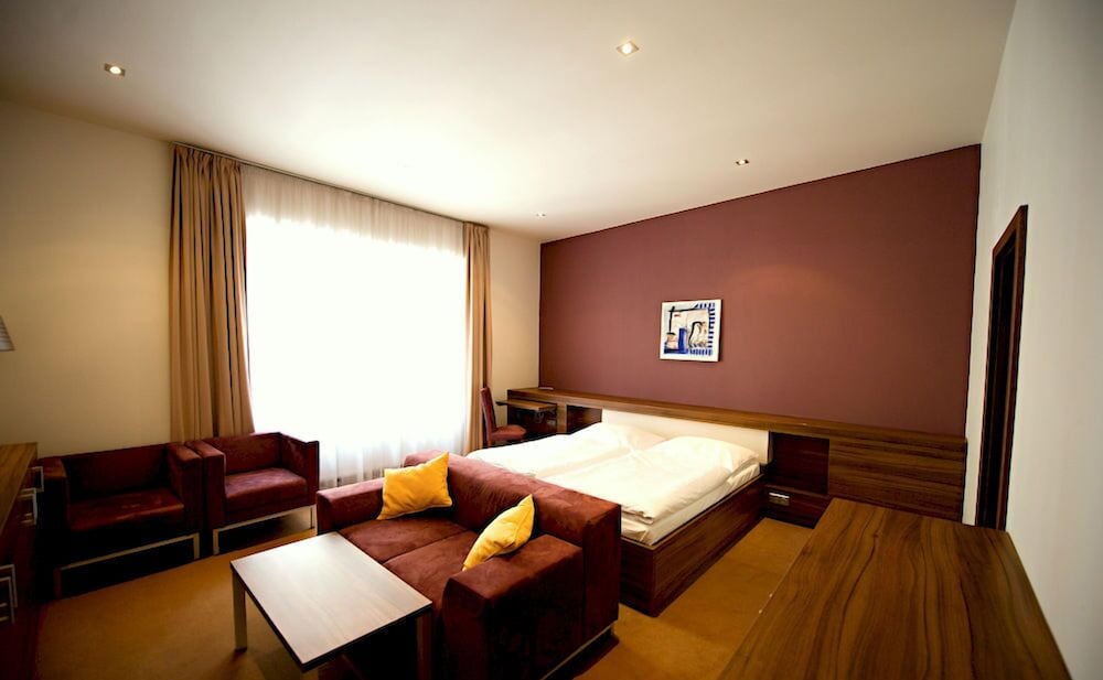 Very good location right in the centre of Kromeriz (very nice and quiet Town). We ordered a family suite (2 bedrooms) - surprisingly large rooms, simple furniture but practical. Basic breakfast. Overall a very nice place to stay.
