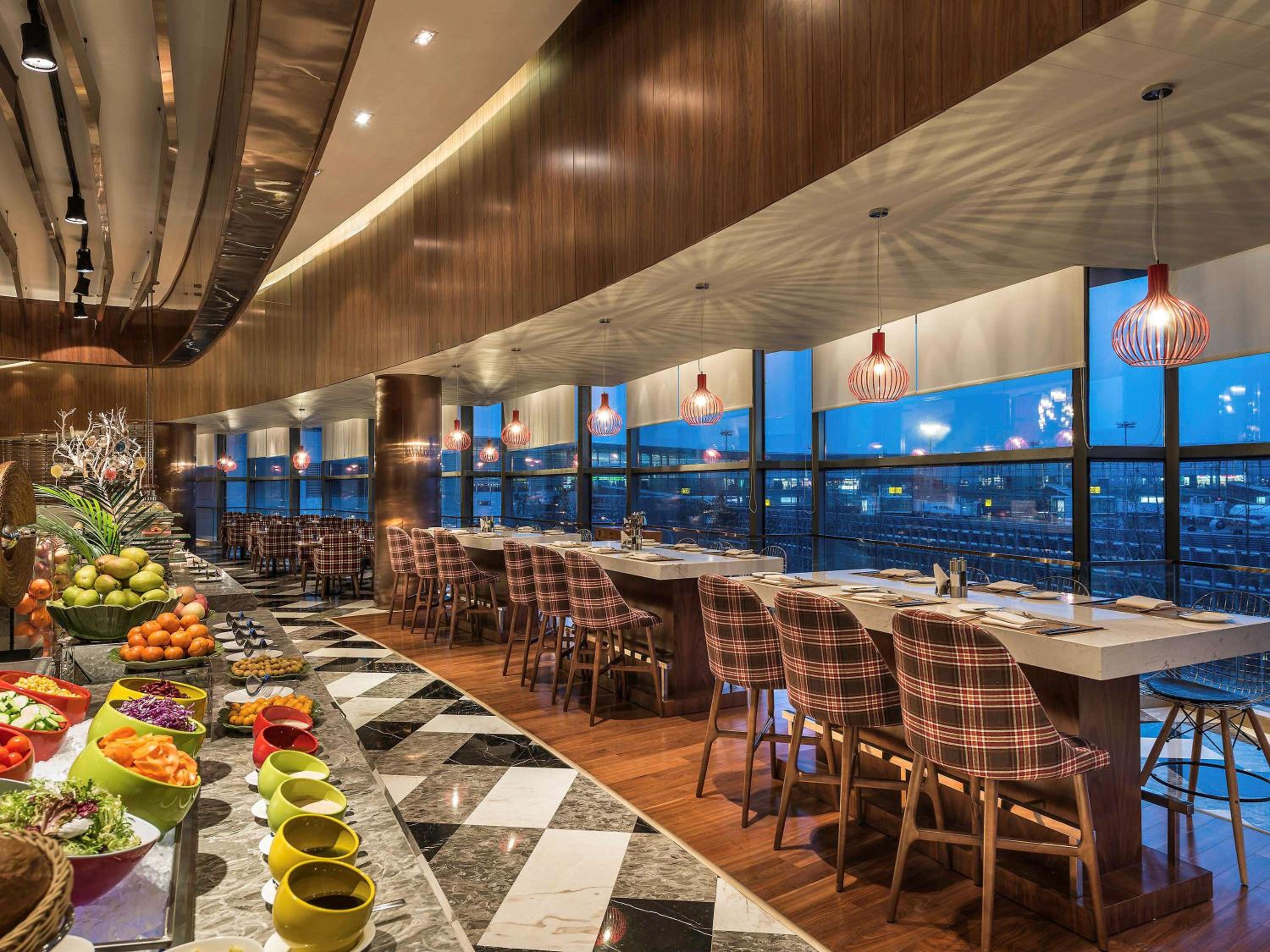 Le restaurant à un tarif de type aéroport, et la carte est réduite jusqu’à 17h, heure à partir de laquelle elle s’ouvre à la carte de cuisine chinoise. Nous nous sommes contenté de burger / frites assez moyen a 11€/p.. Aller manger directement dans le terminal pourra être une option peut-être plus intéressante.