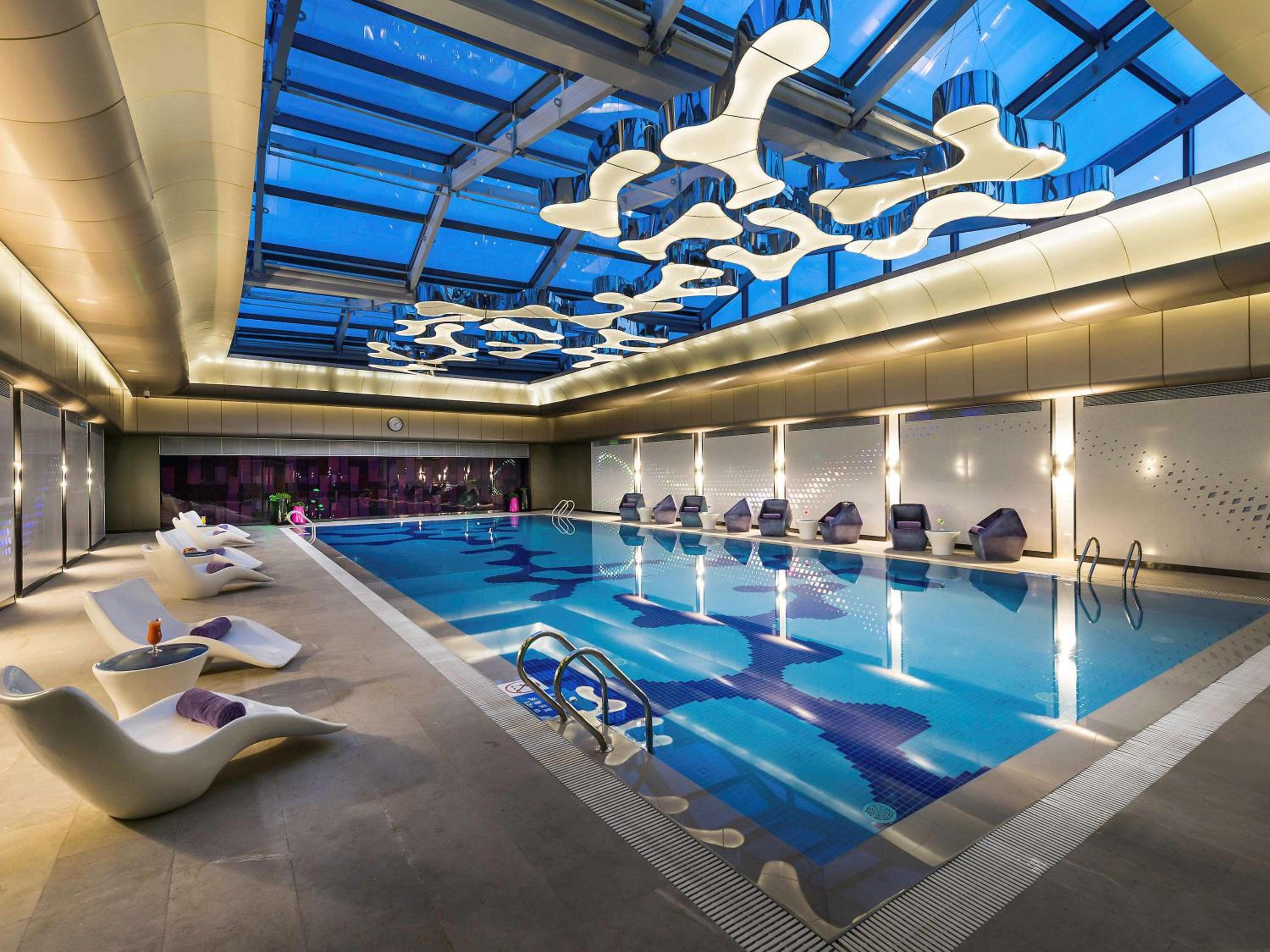 Pullman Nanjing Lukou Airport offers a sophisticated stay with an indoor pool, restaurant, and self-boarding flight service stations in soundproof rooms, perfect for business travelers.