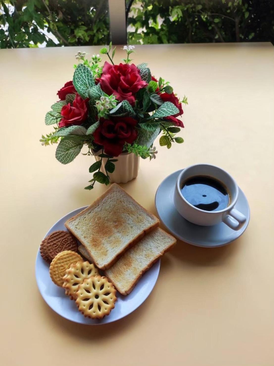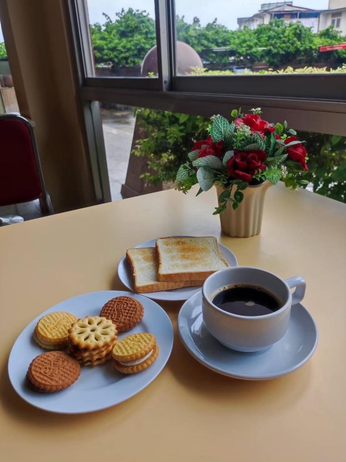Breakfast is Nescafe and butter cookies, nothing else. Server in the lobby. The simplest breakfast you can imagine.