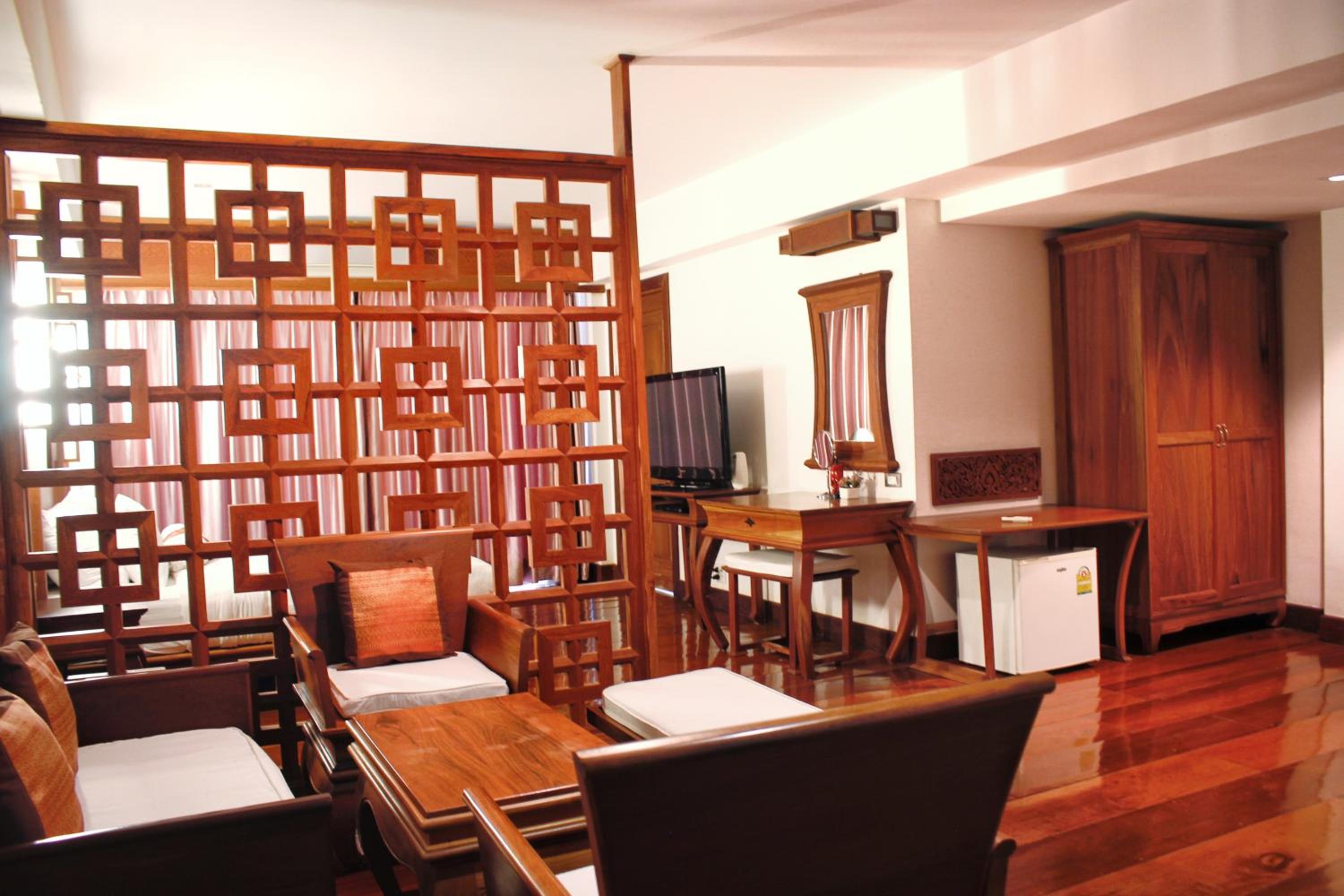 Comfort and Convenience: Chanthapanya Hotel offers a relaxing stay with free WiFi, a sauna, and an outdoor pool. The cozy seating areas in certain units provide extra comfort, while the flat-screen TV with cable channels ensures entertainment.