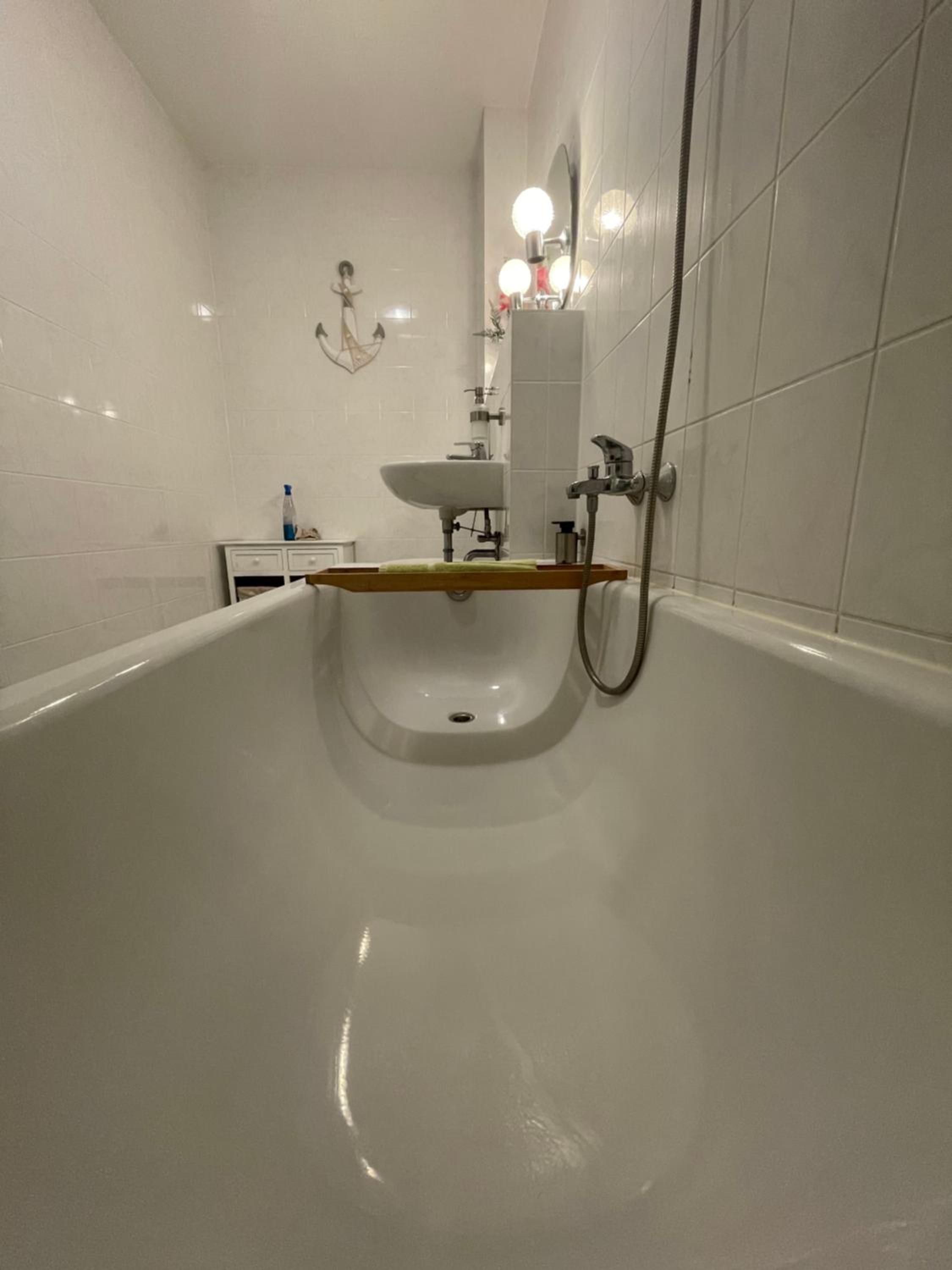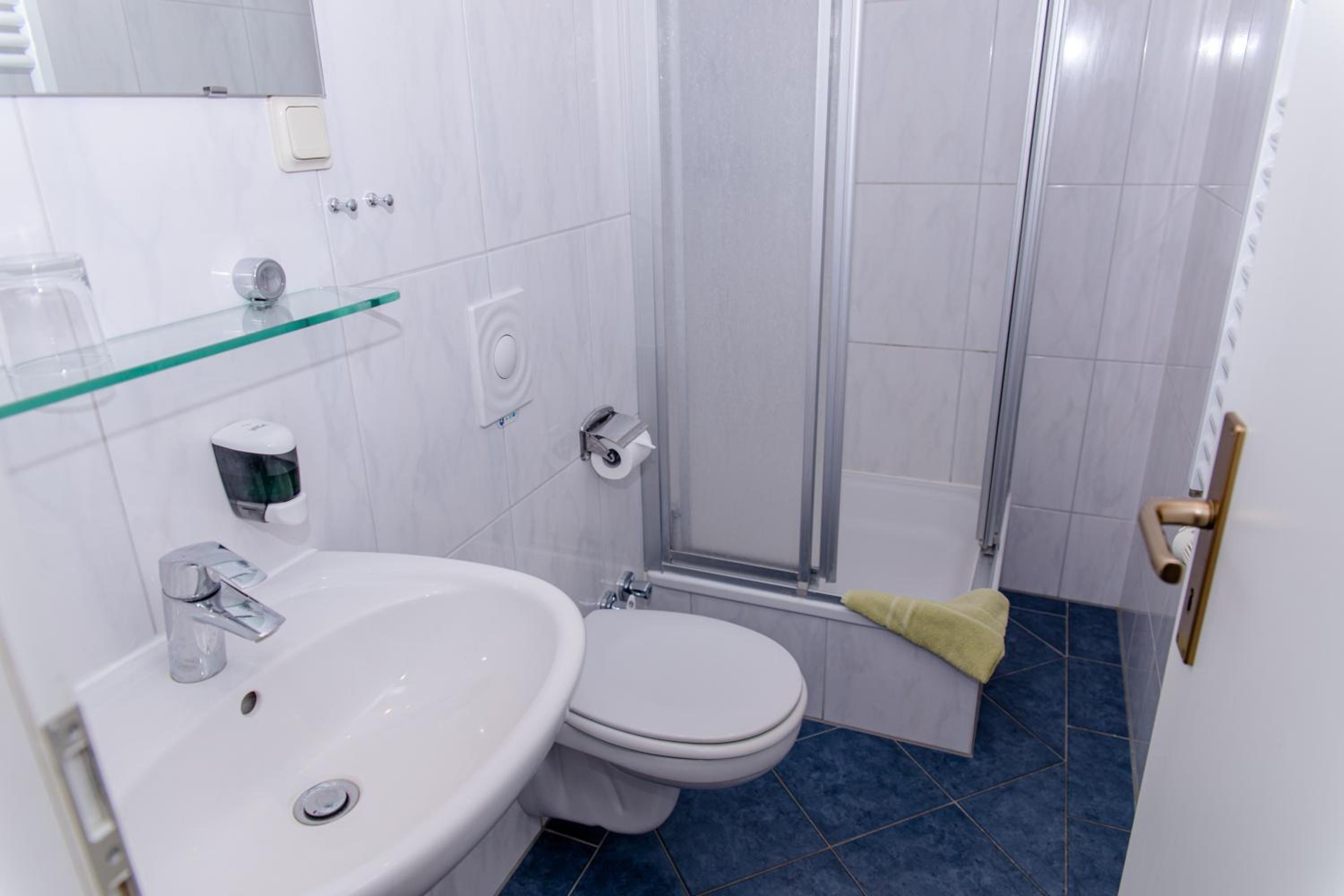 In der Dusche muss unbedingt eine Ablage für diverse Duschutensilien angebracht werden.