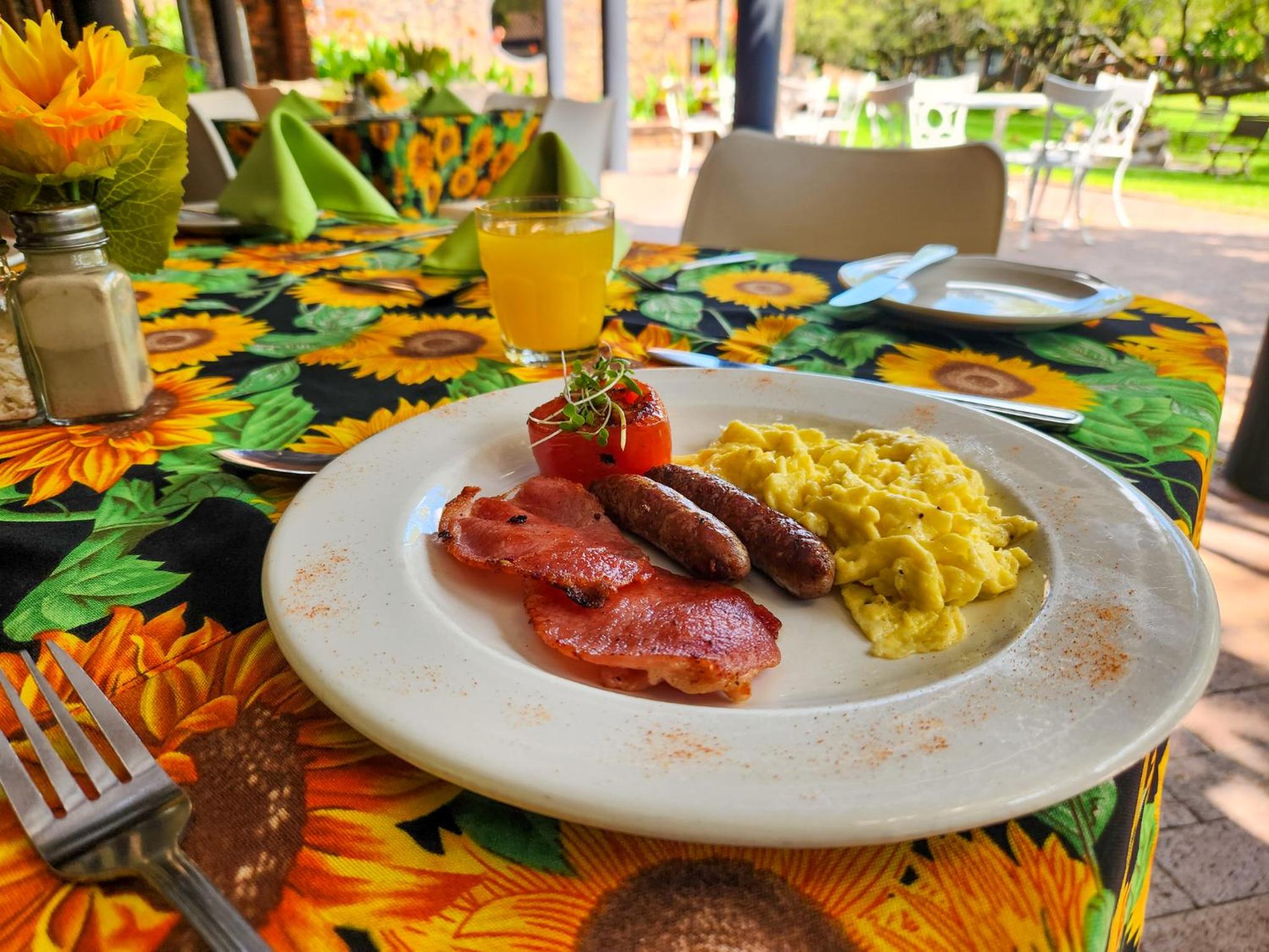 The place is well situated not to far from Johannesburg. Breakfast was good but you can change the pork bangers for beef sausages