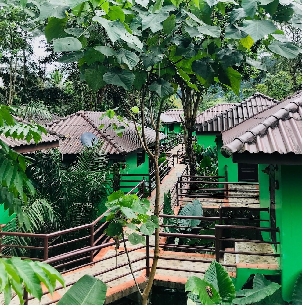 L emplacement est à 4 minutes a pied de l entrée du Parc National et dans le village de Khao Sok donc idéal !