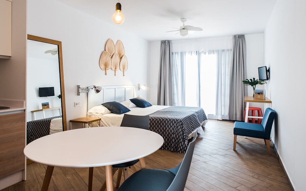 Estudio amplio sin aire acondicionado. La cama buena. Desayuno correcto. Tiene piscina. El personal del hotel muy amable. Tuve problemas de ruidos. No es un lugar muy apropiado para una persona sola, más bien familiar.