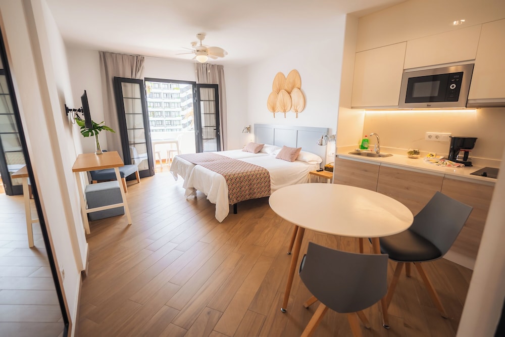 Spent a week, liked the place. Nice and clean pool, friendly staff, good location, clean apartments. The only minor issues was breakfast coffee was terrible and cleaners a bit noisy in the mornings.