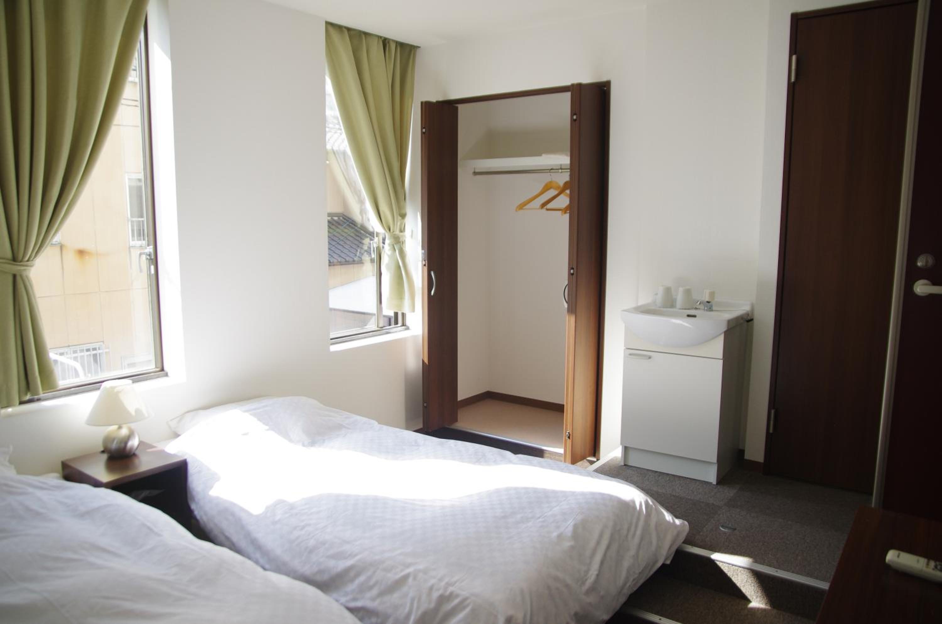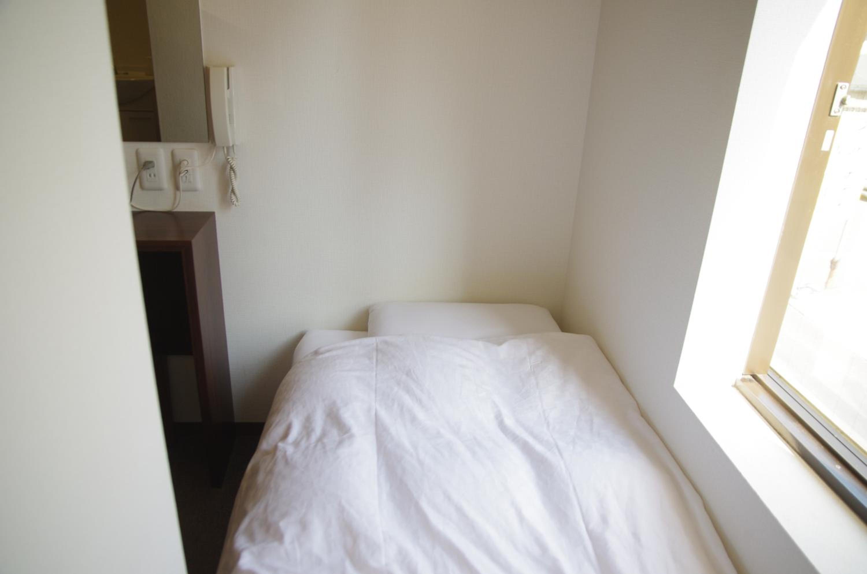 客室が狭すぎる。部屋で歩けない。共同トイレ・洗面うたってなかった!