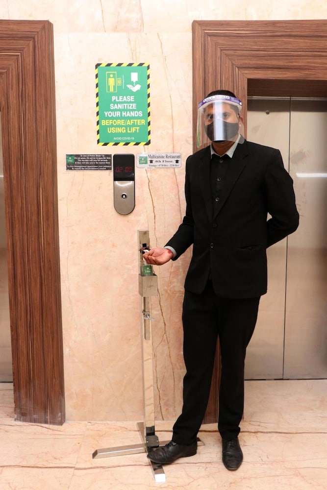 Guests are provided with free hand sanitizer