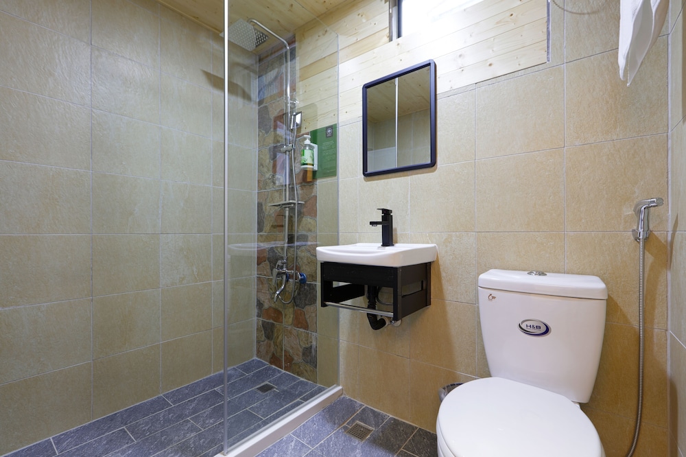 房間很舊,浴室無乾濕分離,窗戶應該不是氣密窗,導致剛好入住的時間點都在下大雨,窗外隔壁是鐵皮屋,所以吵得無法入眠