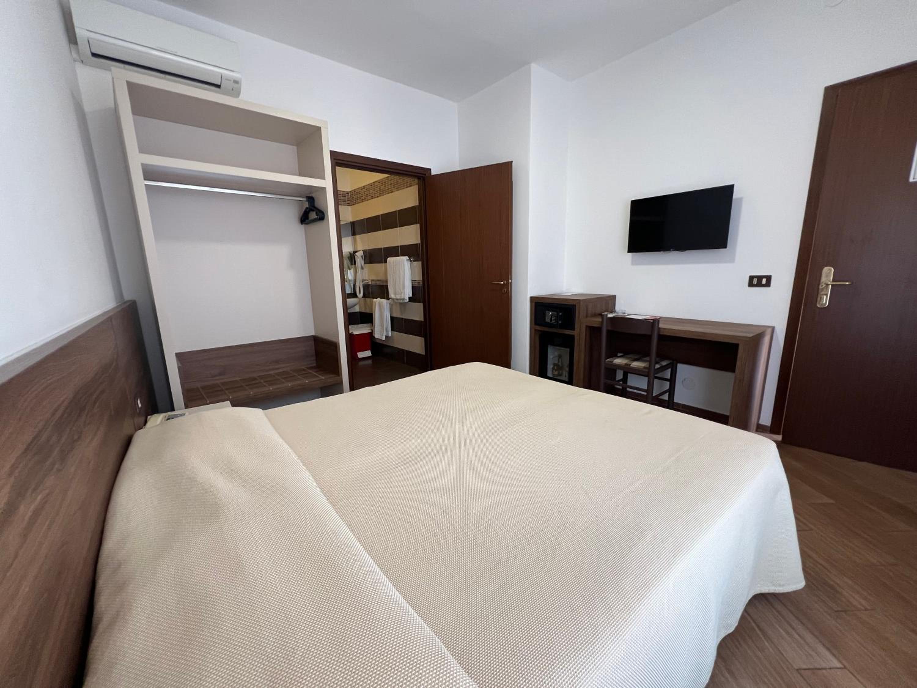 Family run hotel in a great part of town -beautiful breakfast, large quadruple room and massive bathroom and two balconies and a much needed pool and sunbeds. Really lovely coffee at breakfast. Perfect for our two night stay.