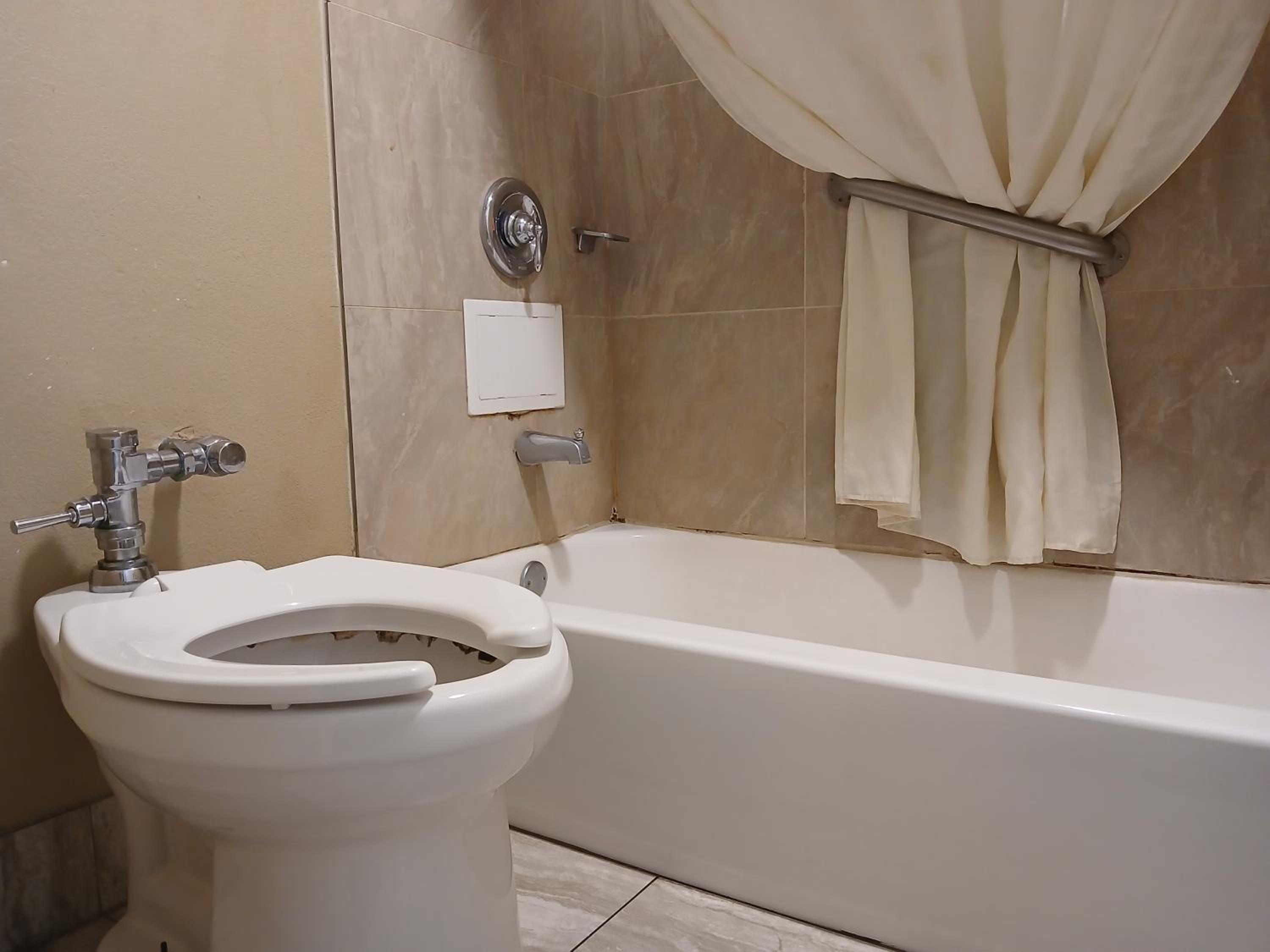 Shower had no hot water,damage to the interior of the room.
