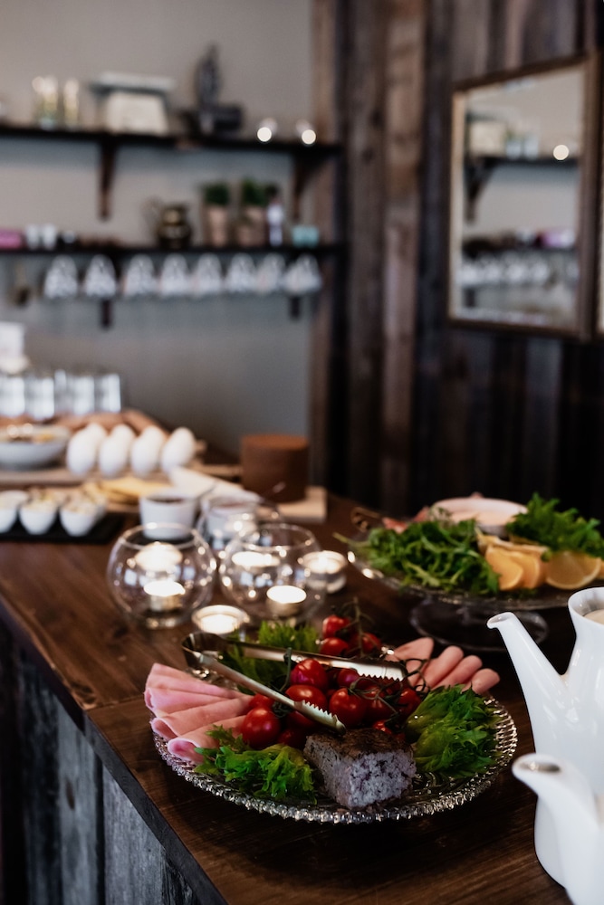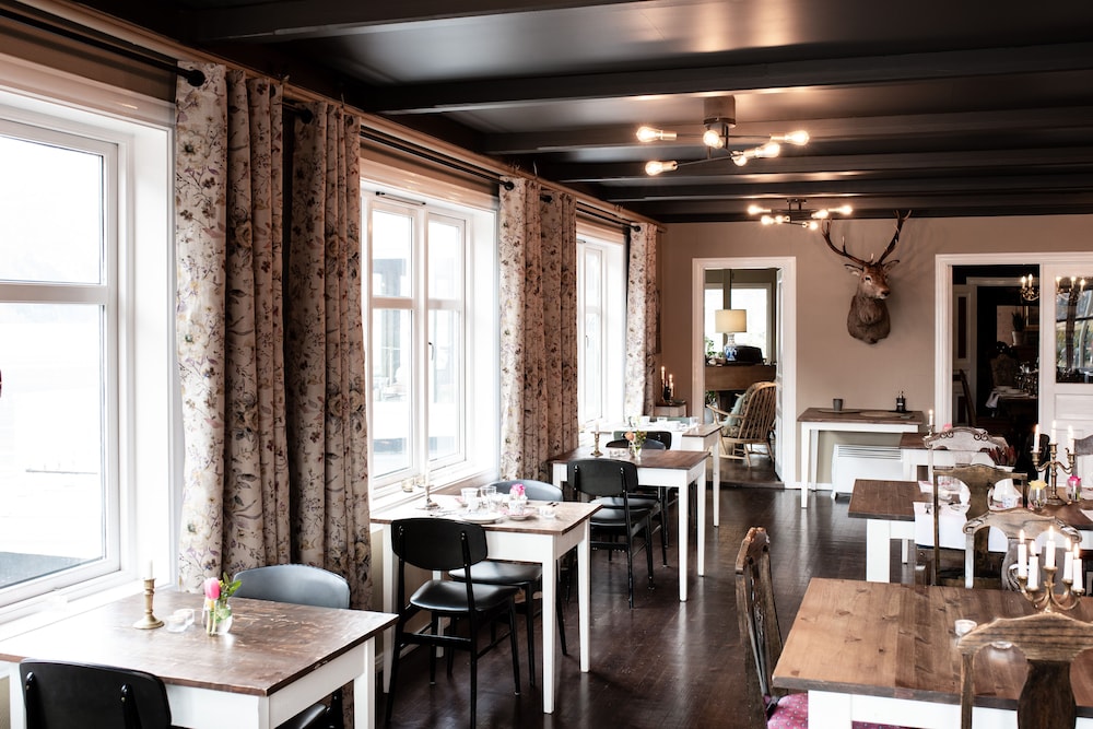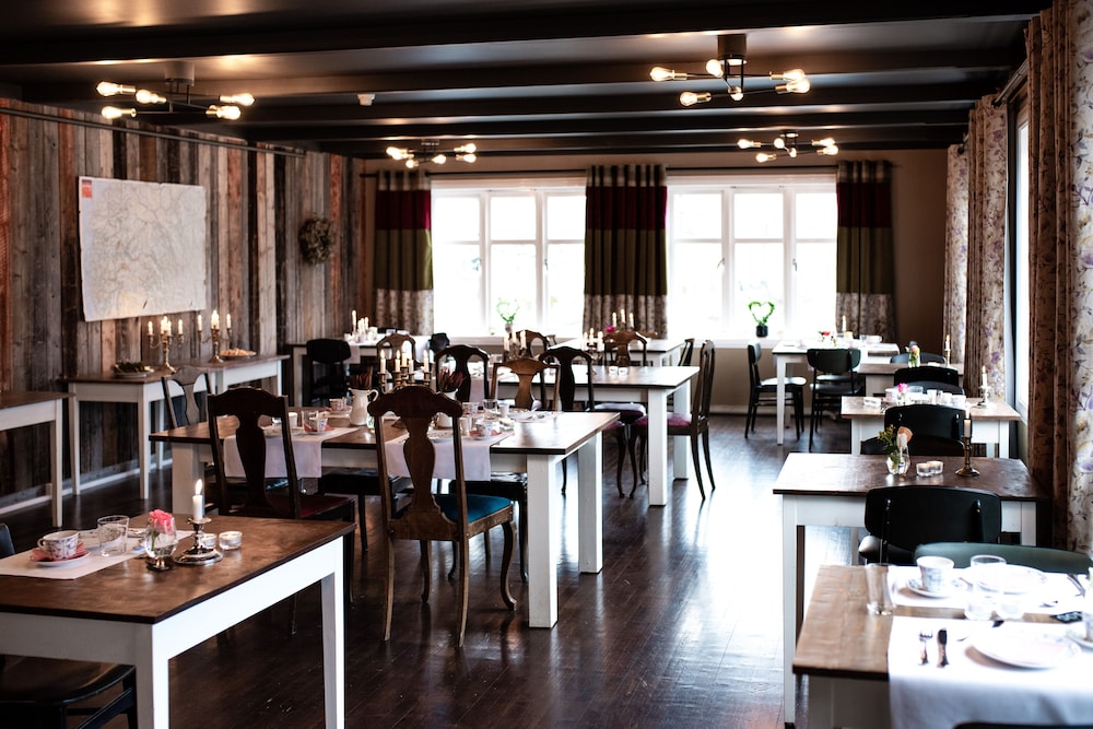 Während das Hotel Charm versprüht, schön eingerichtet ist, die Zimmer zwar klein aber sehr gemütlich wirken und die Aufenthaltsräume eine schöne Atmosphäre haben, ist das kulinarische Erlebnis deutlich unterdurchschnittlich, was in eklatantem Gegensatz zur Selbstdarstellung steht. Das fixe Dreigangmenü kostet NOK 995 und bestand aus drei Scheiben Rauchfleisch (als Carpaccio angepriesen) auf Rucola, gefolgt von grau gegarter Entnbrust mit geschmacksneutralem Rotkohl, ungesalzenem Kartoffelpüree und drei Stangen grünen Spargel sowie einem Gläschen Mousse au Chocolat auf Keks. Wir haben in 2 Wochen nicht schlechter gegessen und dieses Menü war 300 NOK teurer als vergleichbare Angebote in historischen Hotels. Leider gibt es im Ort quasi keine andere Option, trotzdem bewerte ich das Hotel stand-alone. Das Restaurant sehe ich bei 2 Sternen. Meine einzige Erklärung hierfür ist, dass nicht das reguläre Küchenteam am Start war - iderxes einen Wechsel in der Küche gab.