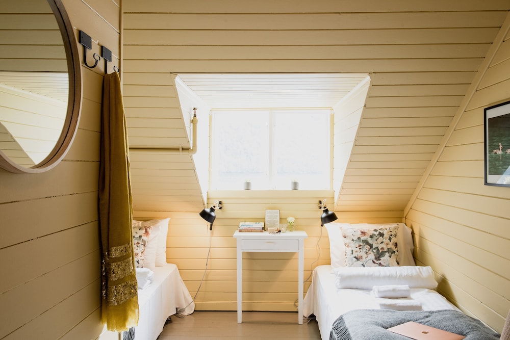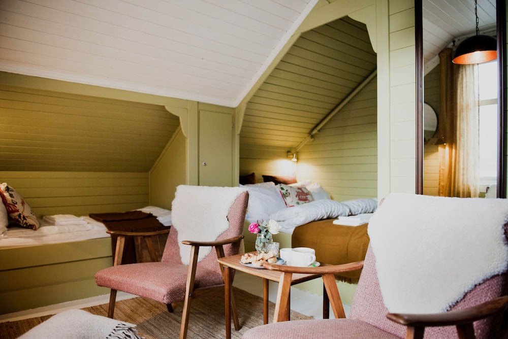 Location stuuning and rich history of the area provided at hotel, which I loved!. While I recognize that this is a historic home, there are simple upgrades that should be done for basic confort of guests. The room we stayed in had stained beds (base of fabric bed) and pulls/tears on "mattress" (matress topper by US standards) which was by far the most uncomfortable one we slept on in our 16 day trip through Norway, walls paper thin literally heard the man in the next room snoring all night and people throughout the hotel walking about, lastly the bathroom sink was actually in the shower...odd and awkward to shower in. We stayed in two other historic properties on our trip and none of these challenges were present. For the high price of this hotel, some further considerations should be made.