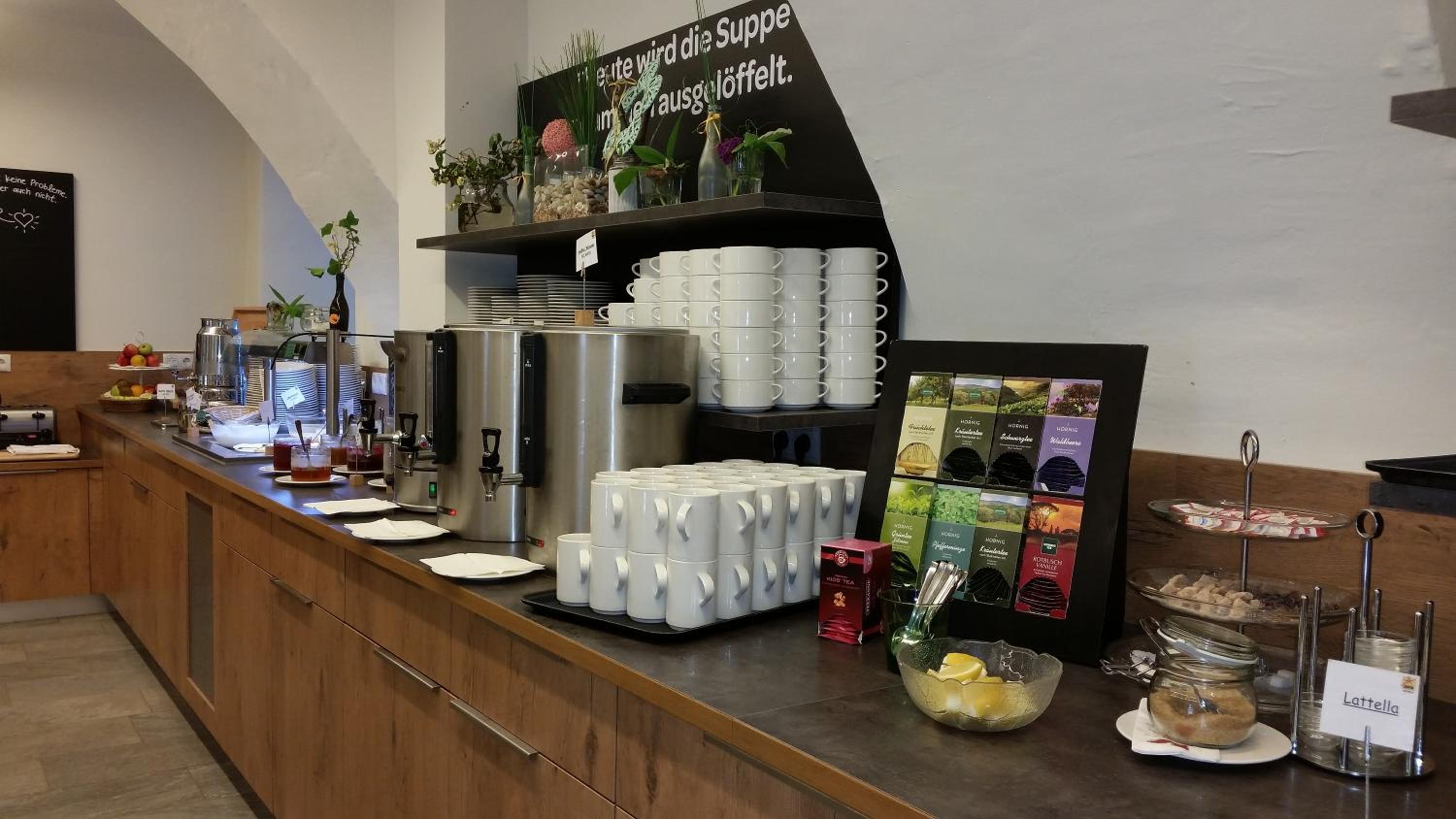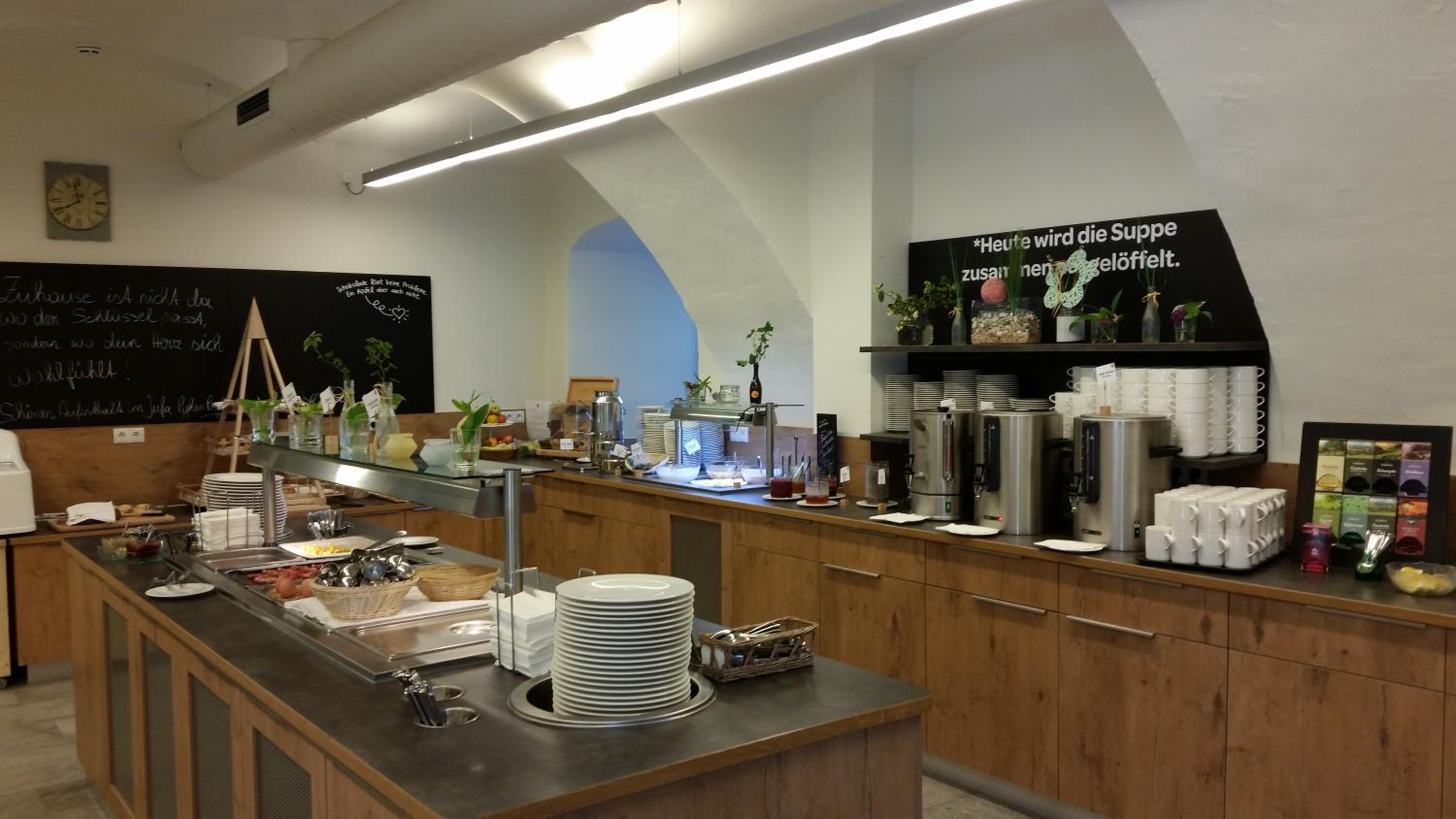 Die Wege zwischen Zimmer, Rezeption und Speisesaal sind teilweise etwas länger als in kleineren Häusern. Dafür ist man in einem historischen Gebäude zu Gast.