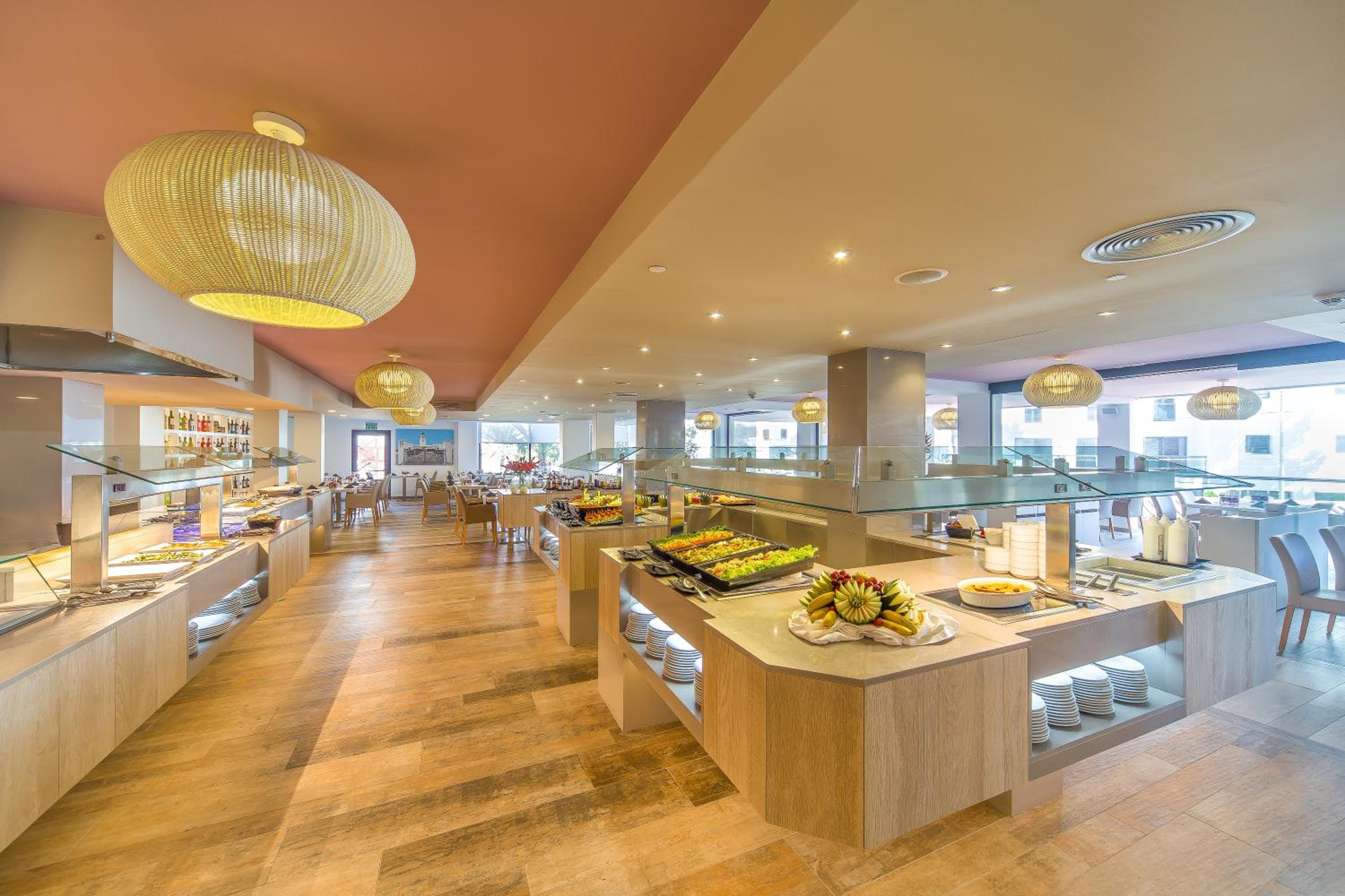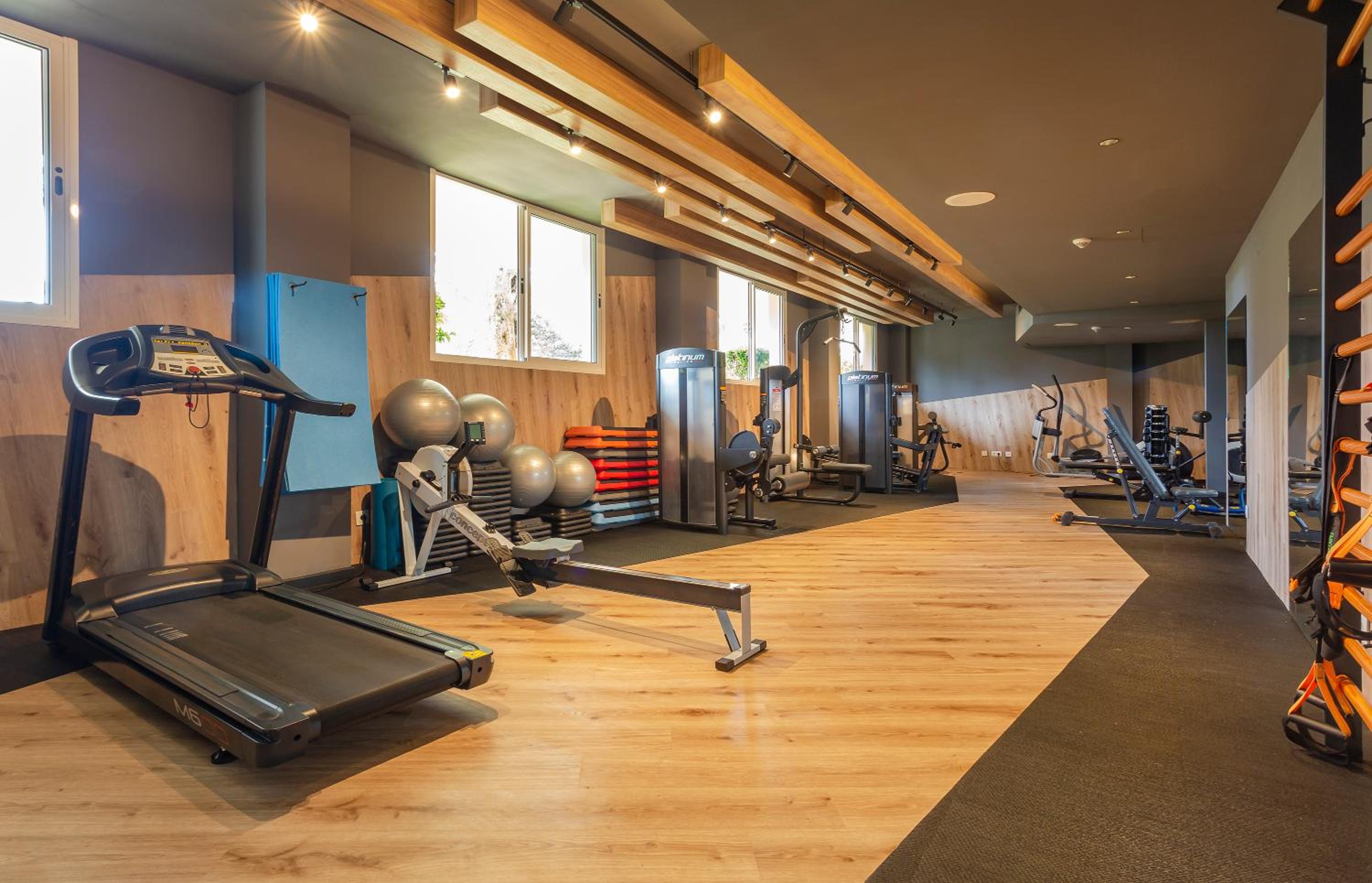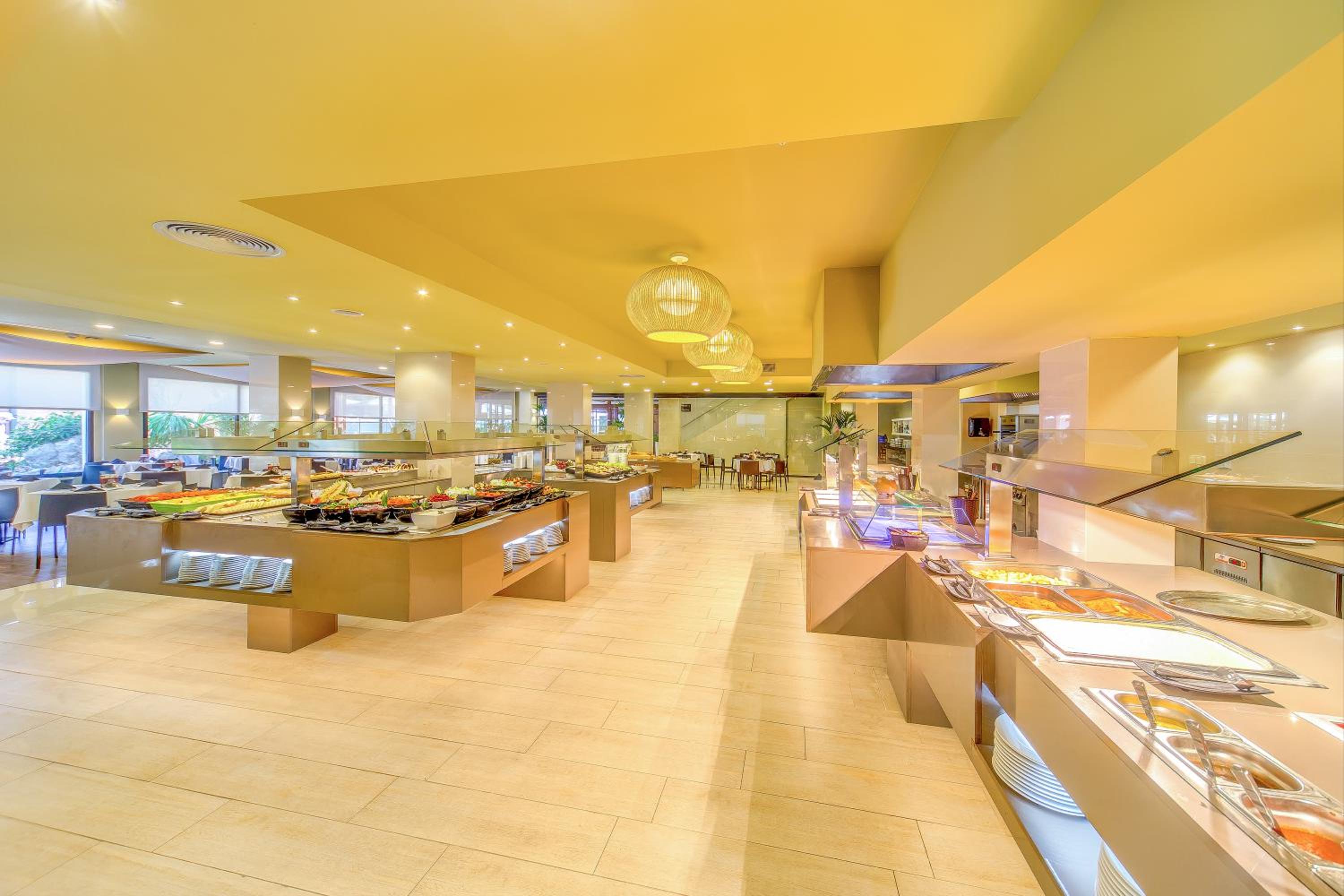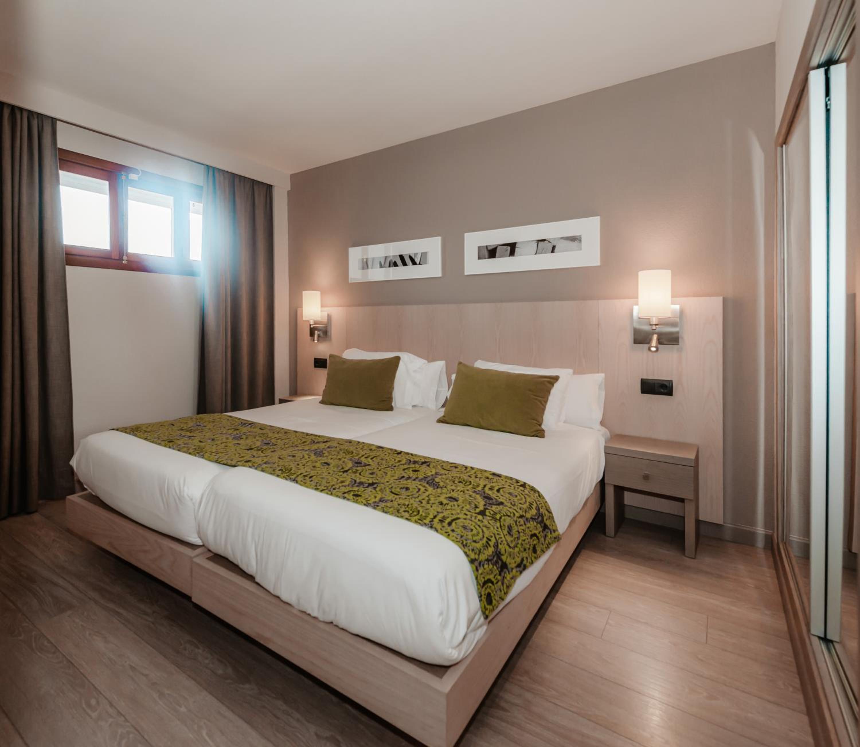 Indulge in the outdoor swimming pool, fitness center, and indoor pool at Marins Playa. The air-conditioned rooms with modern amenities ensure a comfortable stay.