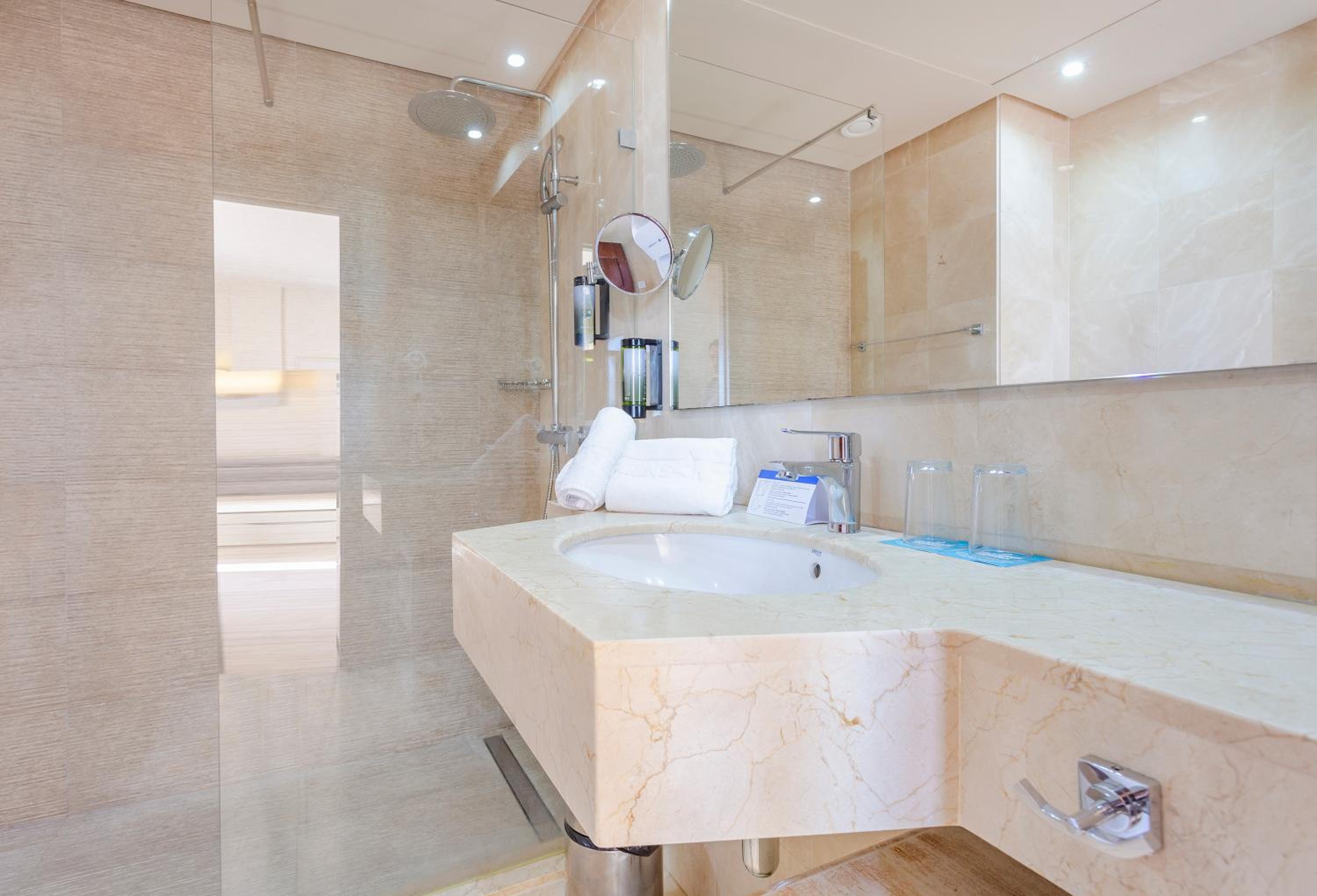 Estuvimos genial la verdad!!! Solo un fallo la silla de la ducha de personas con movilidad reducida no están bien eso no está bien aguantado y enfrente está el espejo menos mal mi marido no se cargo la lámpara también al caer se hico daño por qué al sentarse la silla callo al suelo