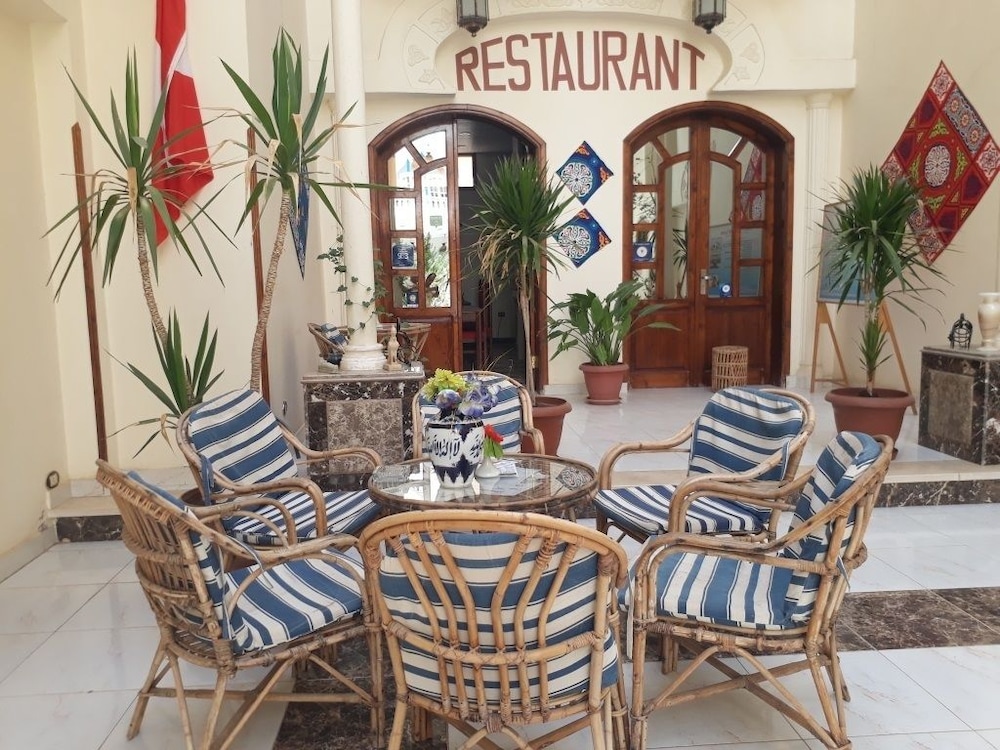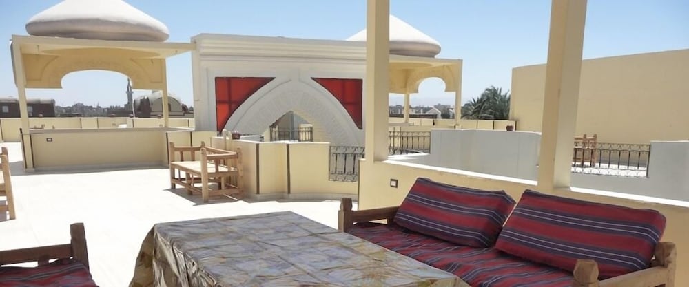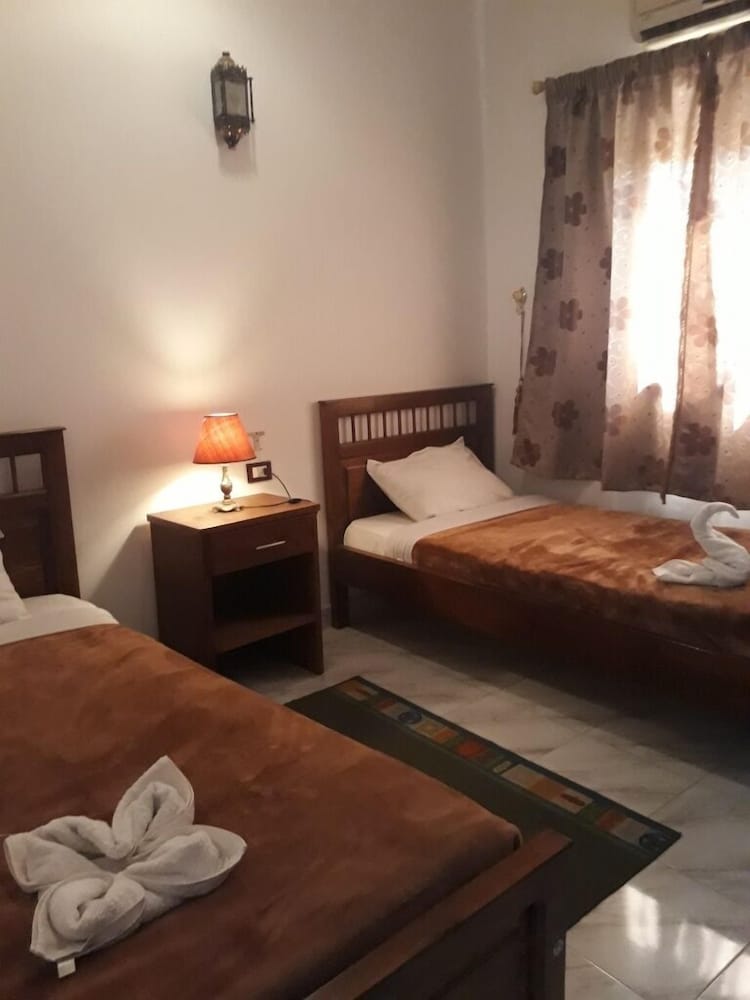 Прямо в отеле есть кафе, можно поесть. Номер маленький, но чистый. Вода горячая есть. Вайфай. С крыши открывается чудесный вид на горы и храм Хашепсут. Можно встретить закат и рассвет. На рассвете летают шары красиво. Спасибо большое за прекрасные впечатления и отдых.