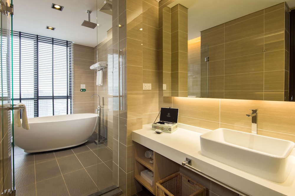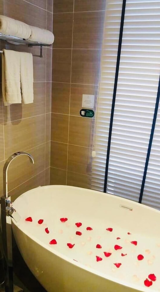 I recently stayed at The Pines Melaka for 4 days and 3 nights. The hotel is conveniently located just a short drive to and from Jonker Street, making it easy to explore the area. We stayed on the 27th floor, and our room offered a beautiful view. However, we were woken up at 5/6 am each morning by the loud chanting from the nearby mosque, which was quite disruptive. The bathroom in our room was very spacious and included a bathtub, which was a nice touch. Although the room was decent, it wasn't the cleanest for a 4-star hotel. Nevertheless, all the basic necessities were provided and free parking available.