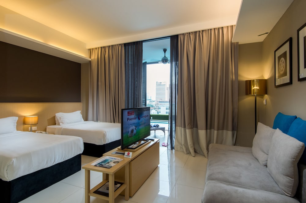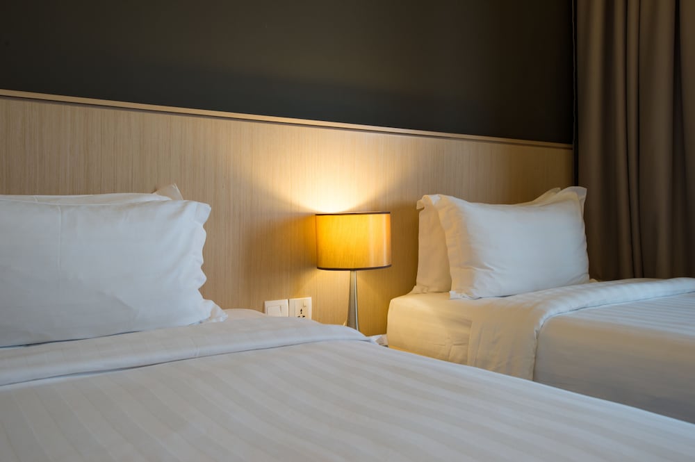 Terrible bed, not soundproof room noise could be heard whenever someone’s outside the hallway. Bed was soft and sinked when sleeping causing back pain. Spacious room with only 2 single beds and had many pieces of furniture that wasn’t useful. TV was small and far from the bed with horrible sound quality. Bathroom had little toiletries and was incredibly noisy from the pipes. Would not recommend this hotel for a comfortable long stay. Surroundings are too noisy to enjoy a good nights rest.