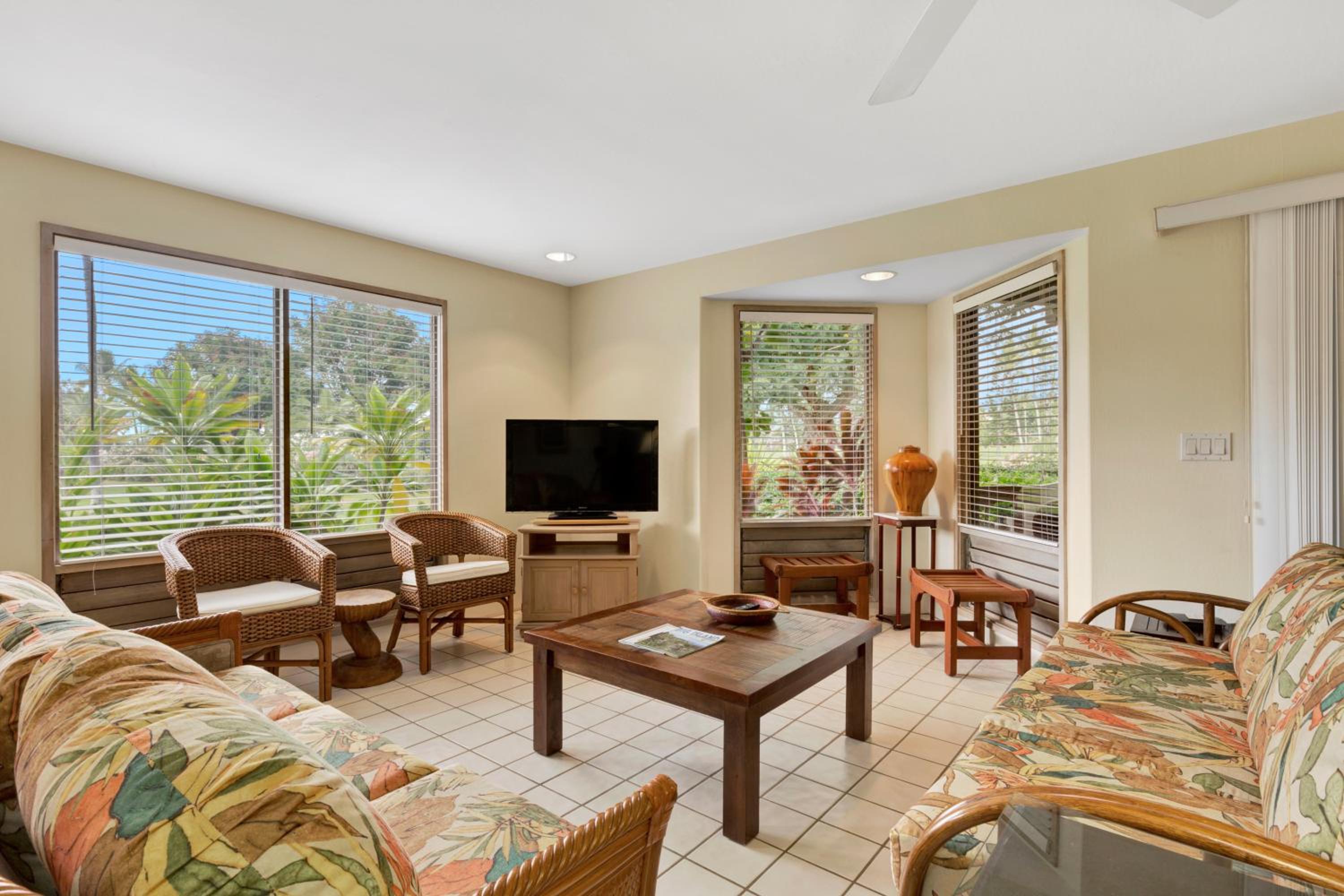The unit was well decorated and comfortable. We spent the majority of our time on the lanai enjoying both the good weather and the rain storms! The pools were great, never too busy. And the staff were all FANTASTIC, their friendliness and helpfulness is what made our stay!